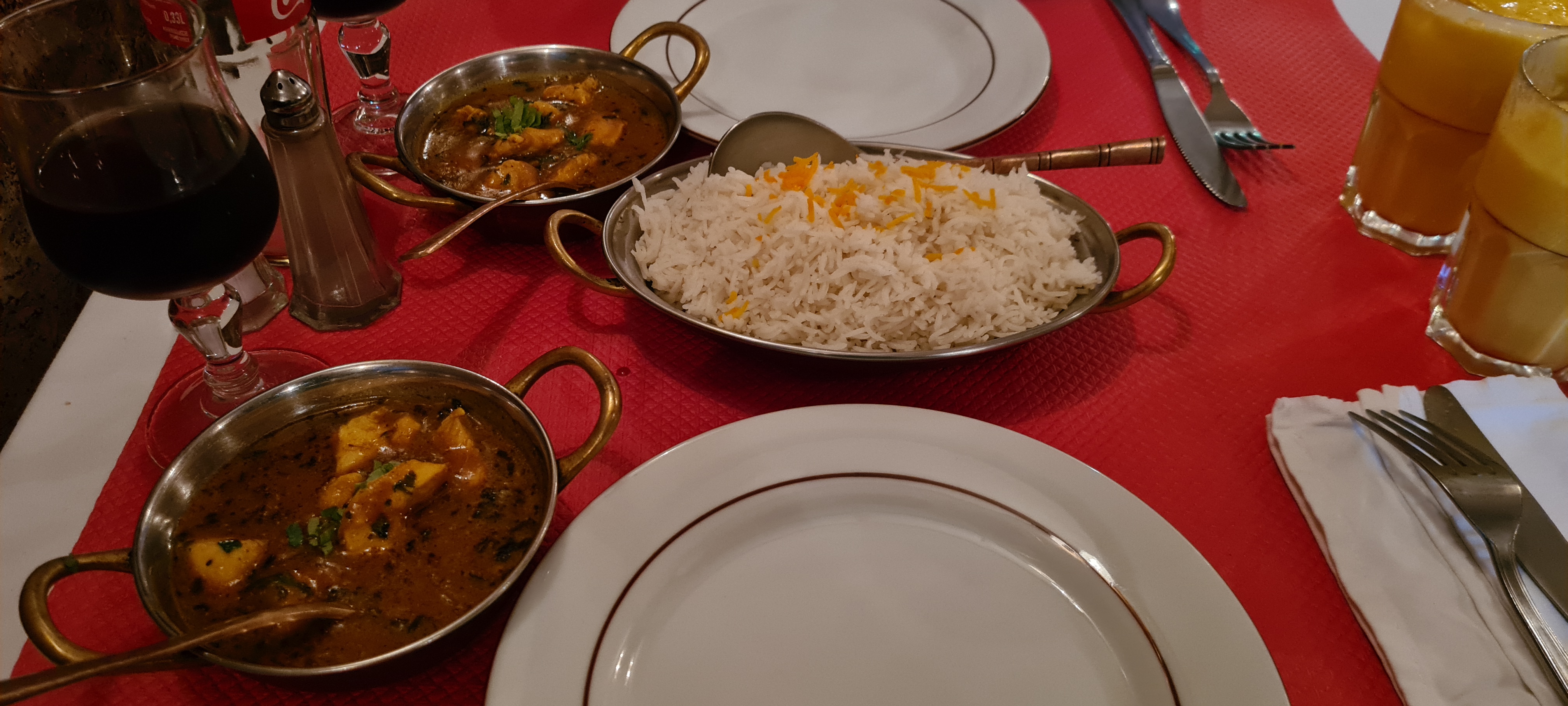 Nous avions cherché un restaurant indien à proximité de notre hôtel et les notes attribuées à celui ci nous ont convaincus... nous ne sommes pas déçus nous sommes revenus même une deuxième fois n'ayant pas trouvé mieux ! Rapport qualité prix excellent, le personnel est très gentil aimable et attentionné, tous les plats sont copieux et excellents, plein de saveurs. A recommander ! :-)