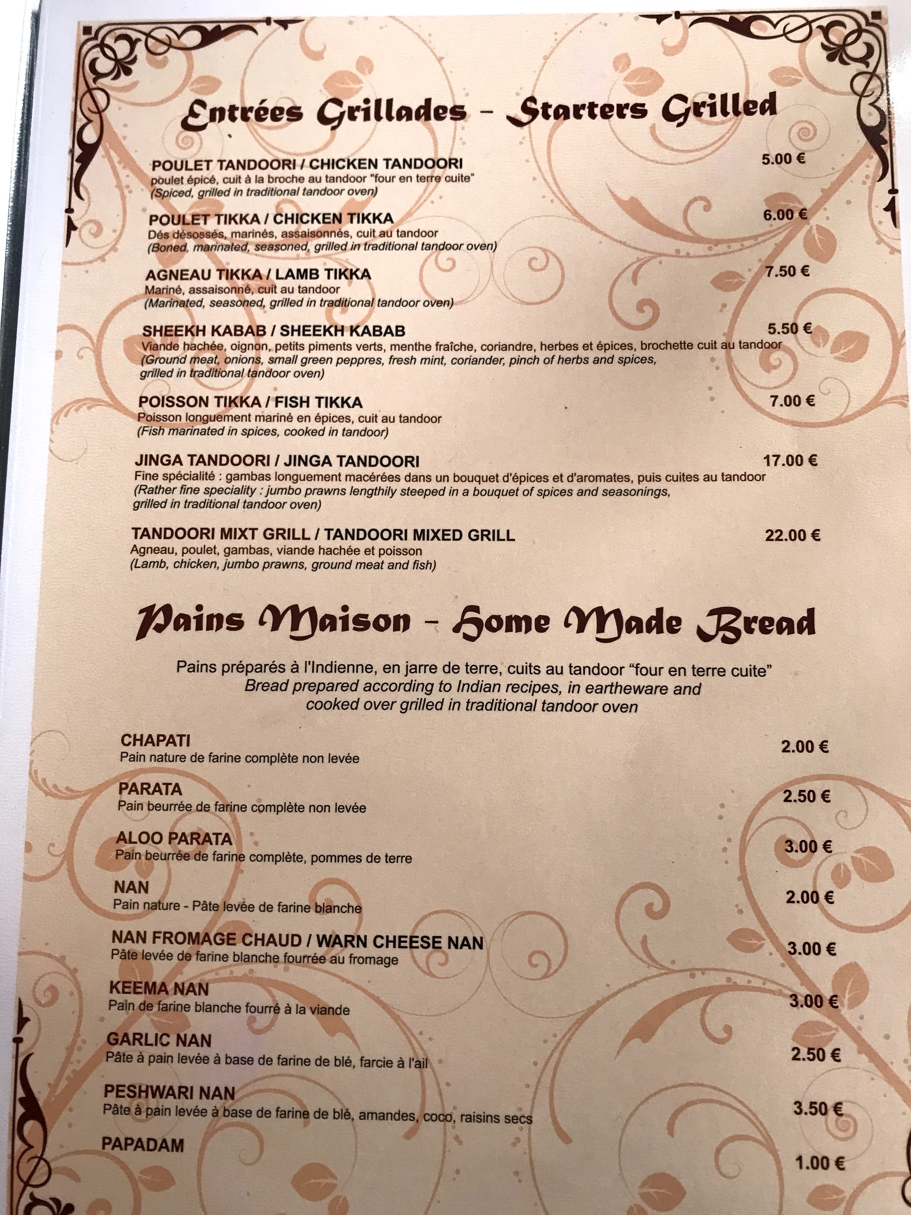 Nous sommes arrivés tôt pour le dîner et avons été surpris par la cuisine indienne authentique. Le propriétaire indien a vécu à Paris pendant 20* ans et continue de servir de bons plats. Nous avons aimé la façon dont ils utilisaient du blé entier dans leur pain et les saveurs du curry étaient de 10/10.