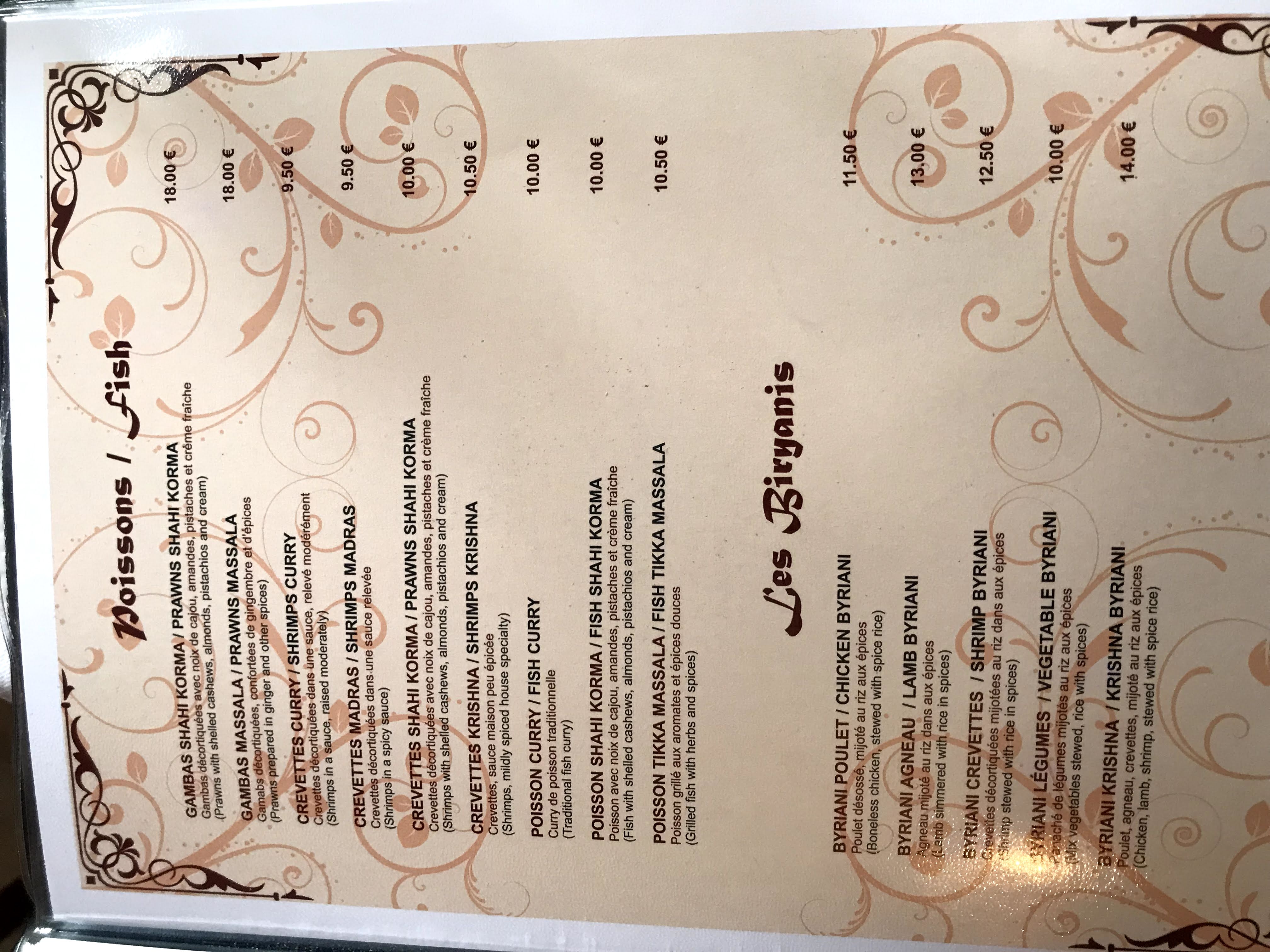 Bonne cuisine indienne : excellents plats tandoori, mais les gambas devraient être plus tendres... Accueil très sympa, glaces en dessert très bien. Mais ne prenez pas de riz au lait : un peu de lait, du riz, du vent ! C'est un dessert mitonné aux embruns de Goa...