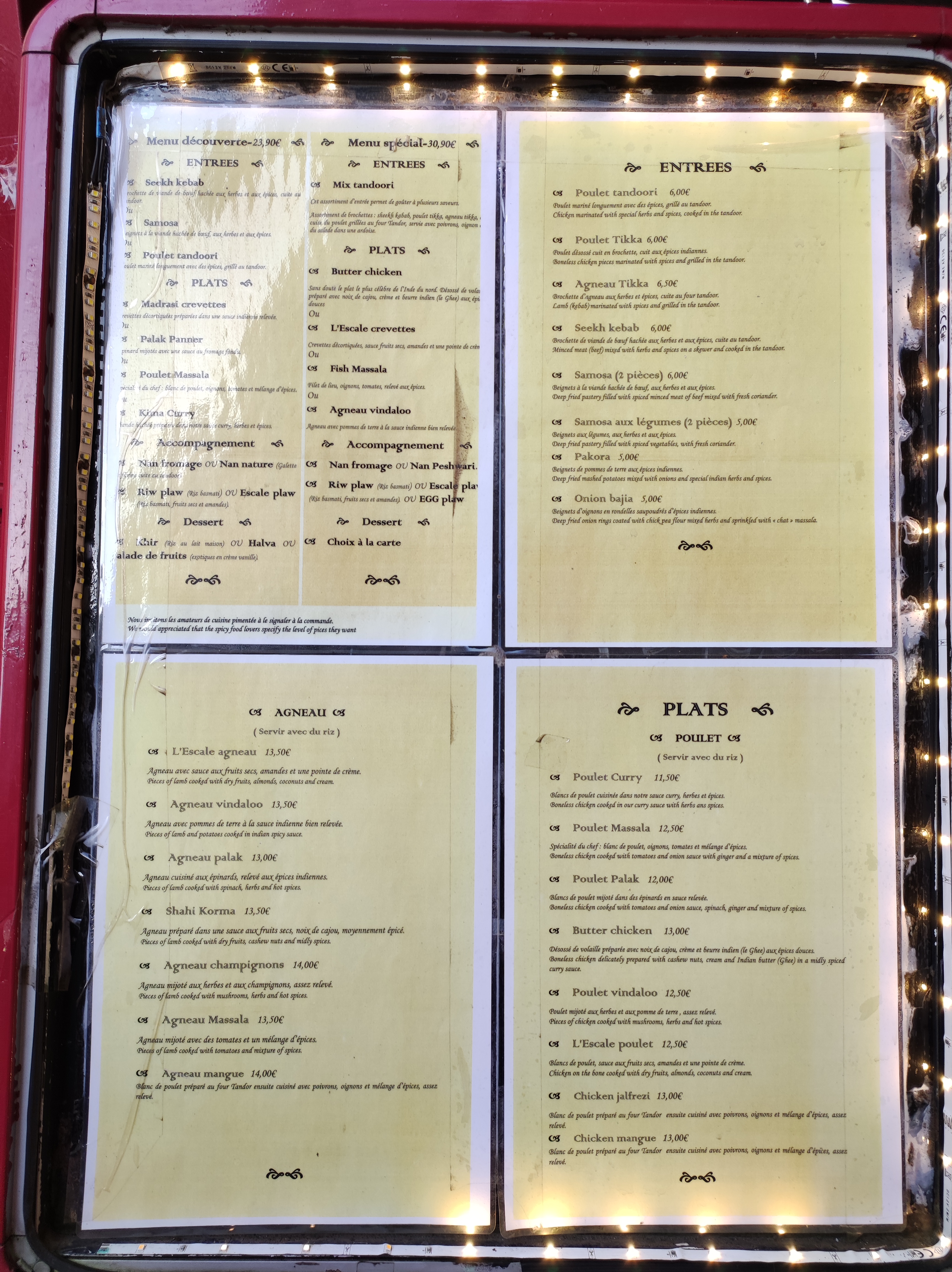 Très belle découverte, cela fait 2 fois que j’y vais et toujours aussi conquise. Le serveur est très agréable et la cuisine est très bonne avec un Lassi fabuleux. Coup de cœur !