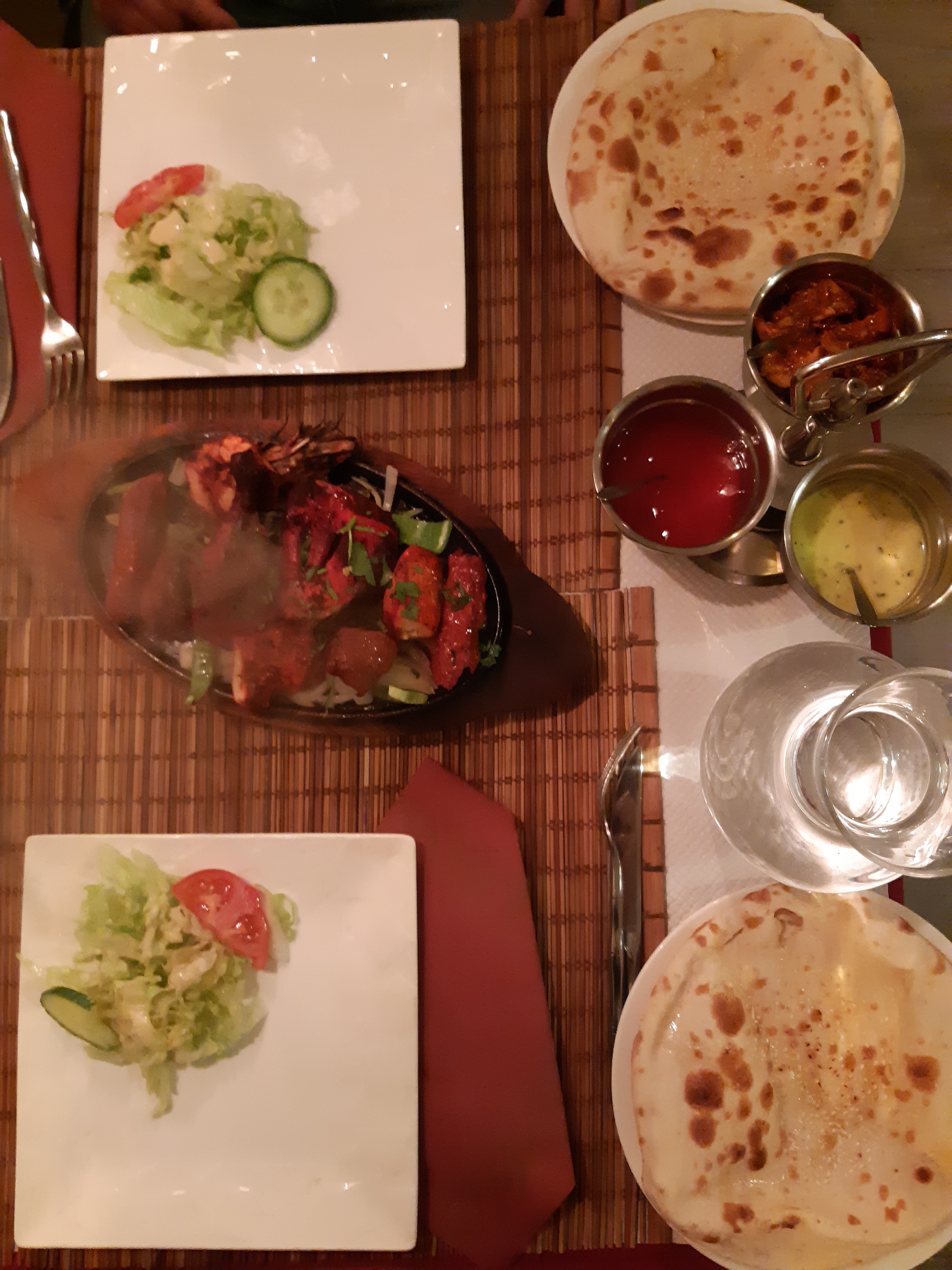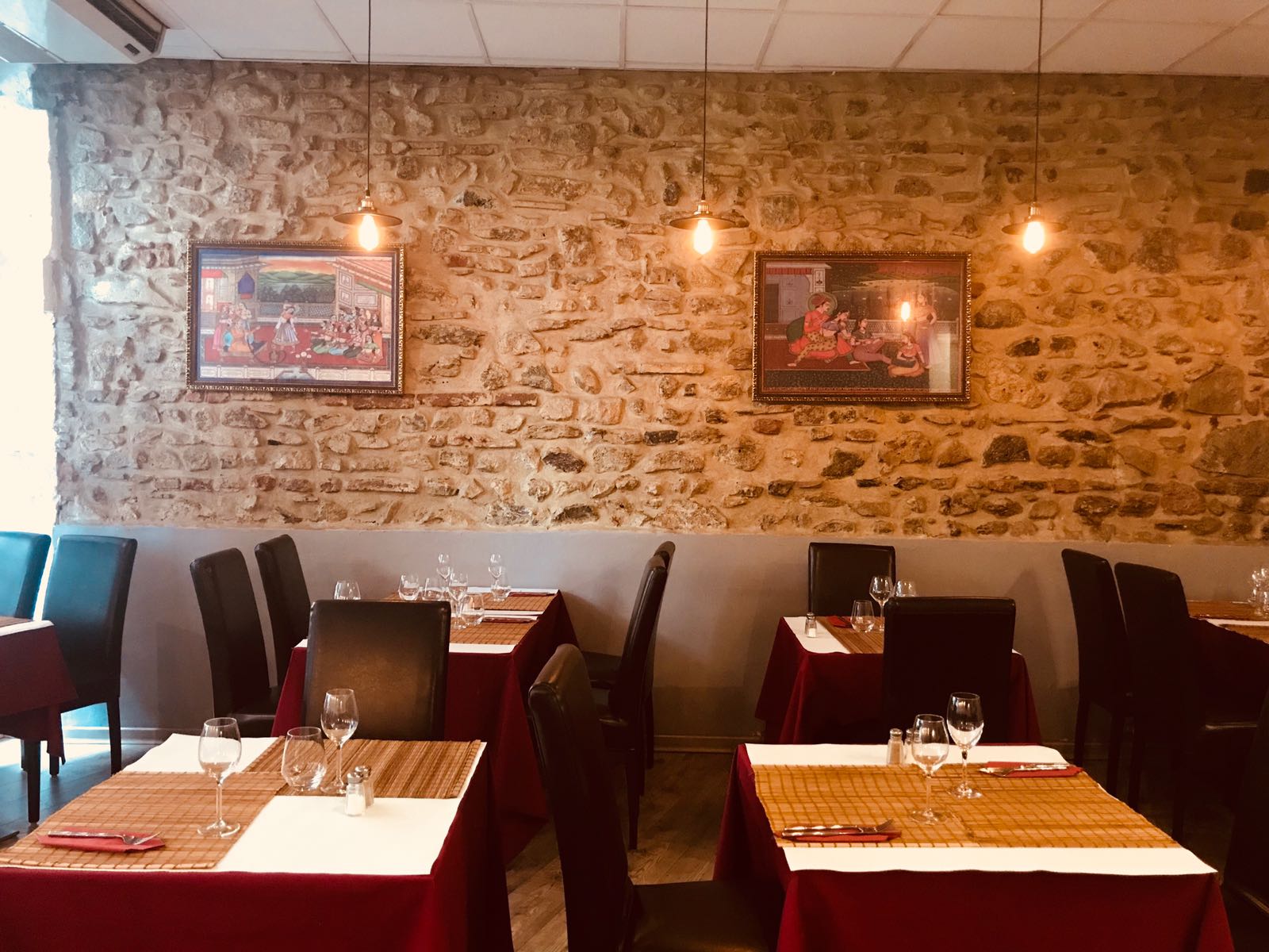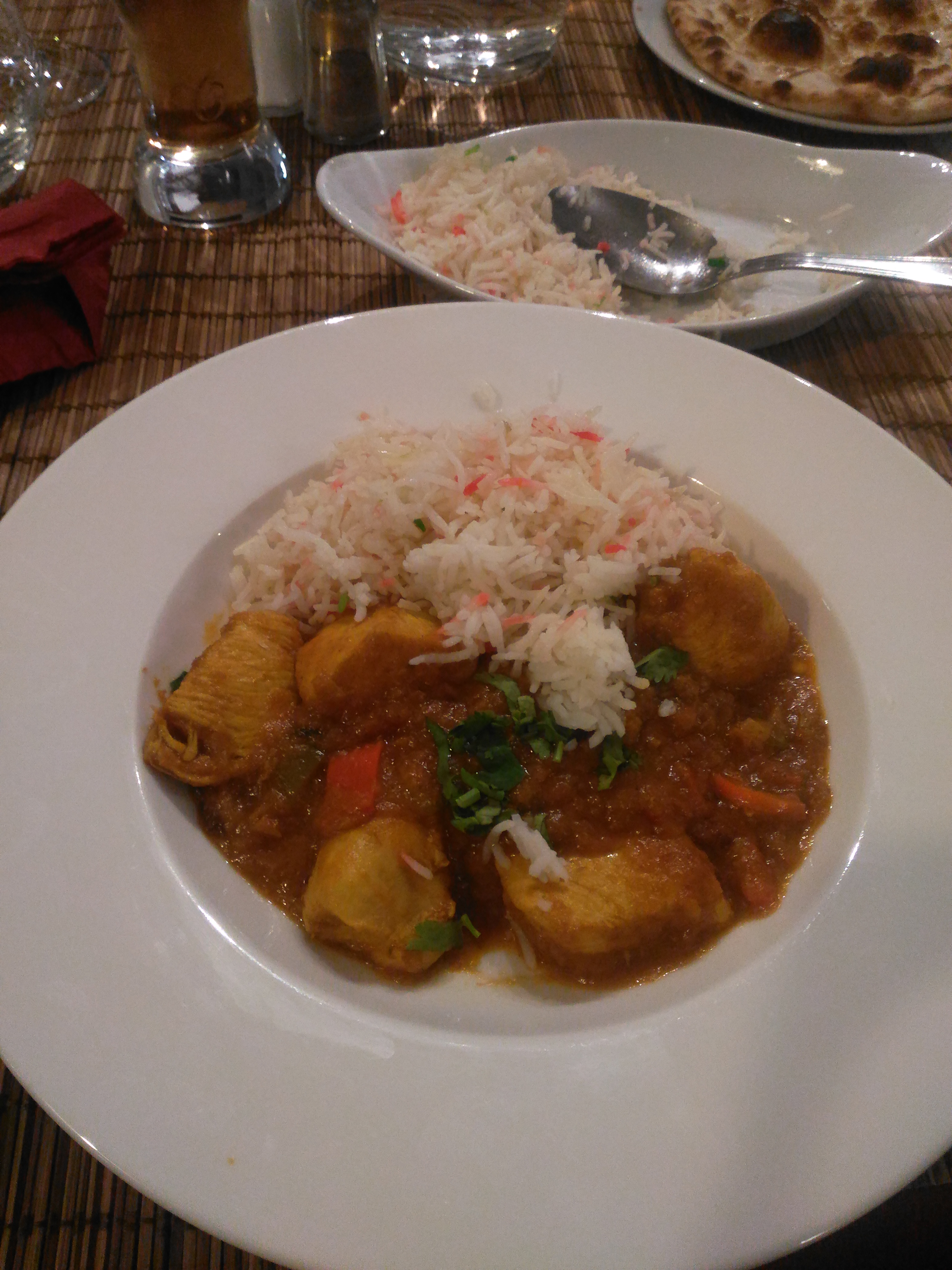 Cadre agréable, serveur souriant. Mais déçue de la cuisine. Peu de quantité dans l'assiette et la qualité n'y est pas non plus. En entrée beignets d'oignons corrects mais après plat fade, un comble ! On ne sent aucune épice ou presque on ne voyage pas beaucoup ! Agneau en sauce annoncé avec fruits secs et noix de cajou mais en fait juste une sauce grasse sans saveur. Cheese nan secs et peu garnis. En passant devant la cuisine j'ai vu les cuisiniers assis sur les plans de travail (hygiène...) occupés sur leurs smartphones hilares alors que le restaurant était quasi plein.... Je me demande bien s'il y a quelque chose de fait maison. Point positif prix corrects.