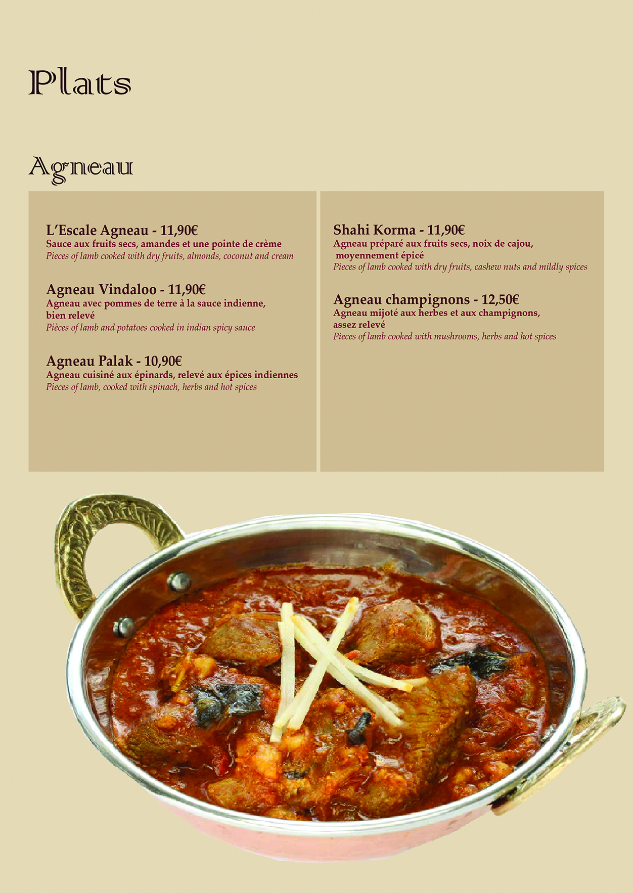 Bonne cuisine indienne. A découvrir