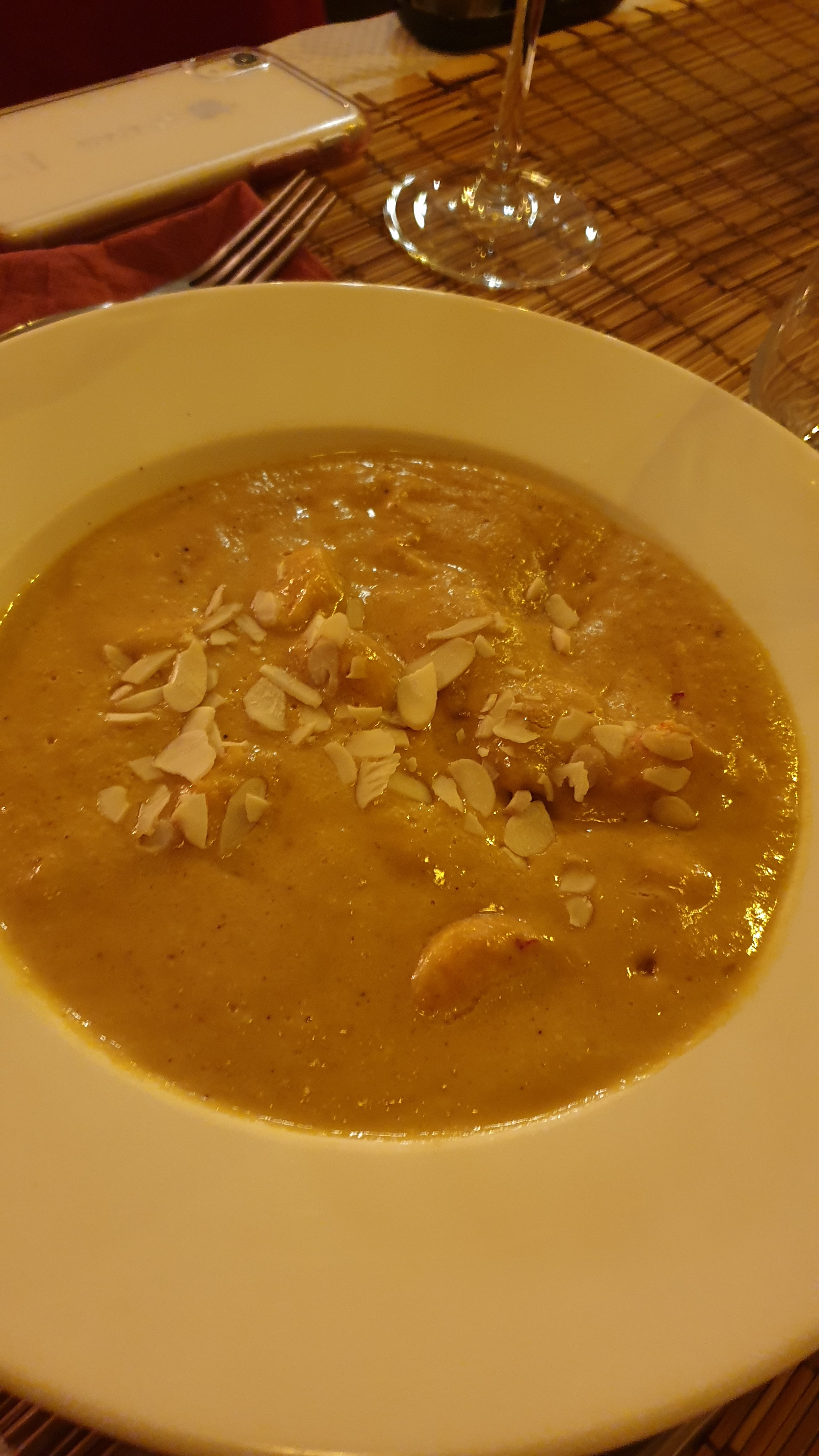 Clairement le meilleur chicken butternut que j'ai mangé !! Rien à voir avec la soupe à la crème qu'on nous sert d'habitude ! Et le riz spécial l'escale excellent ! Mon ami avait pris le poulet palak (aux épinards) avec le riz parfumé, et même constat ! Ça vaut le coup de rouler depuis Lyon pour y manger ! De plus le serveur était très souriant Je vous recommande cette adresse pour un restaurant indien qui sert de la vraie cuisine !!