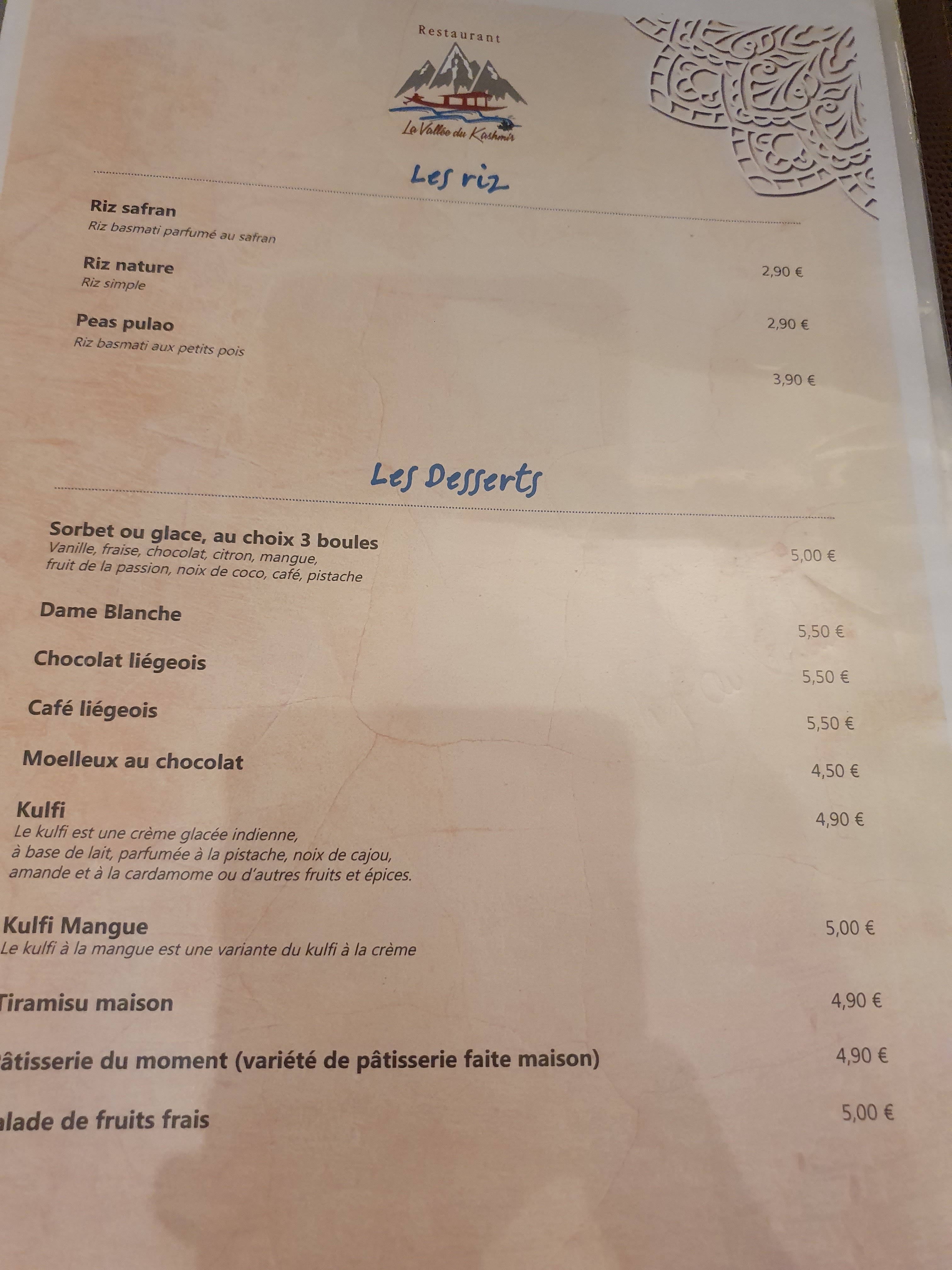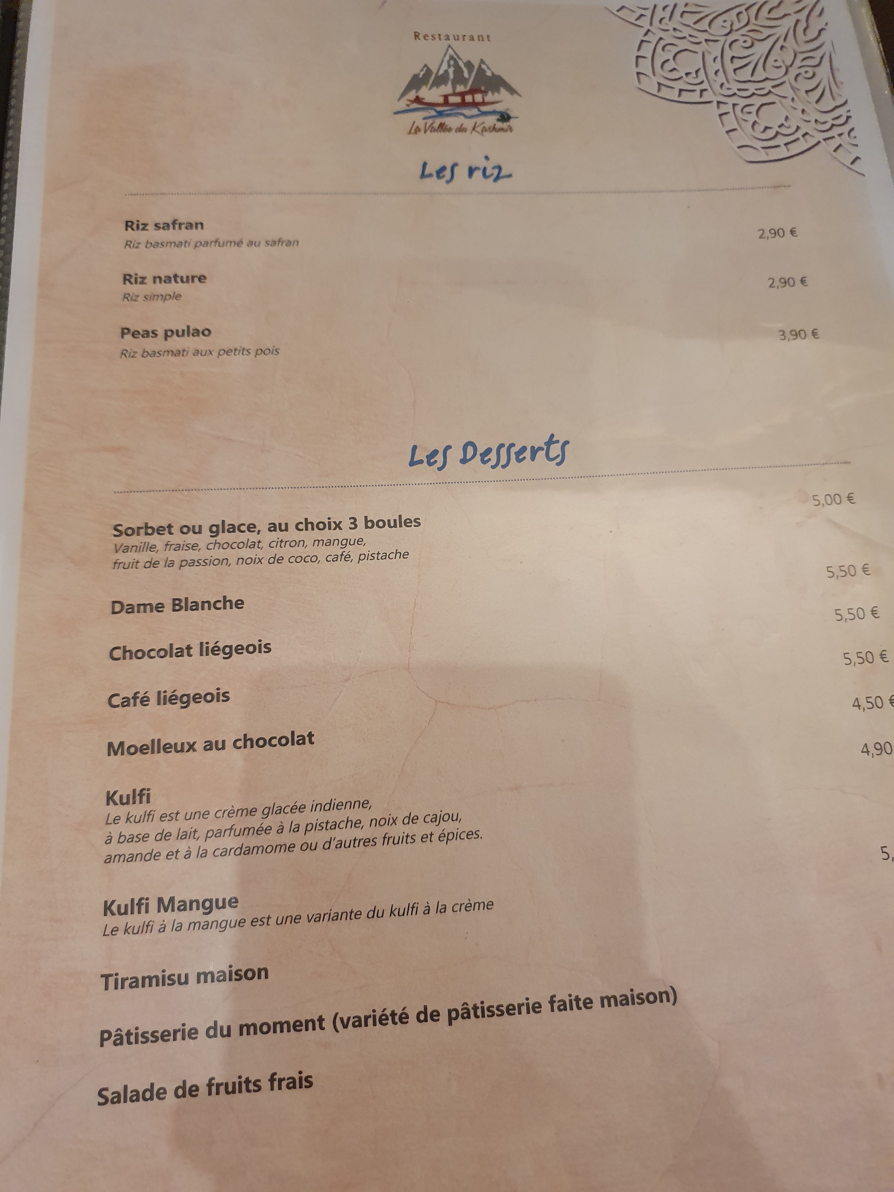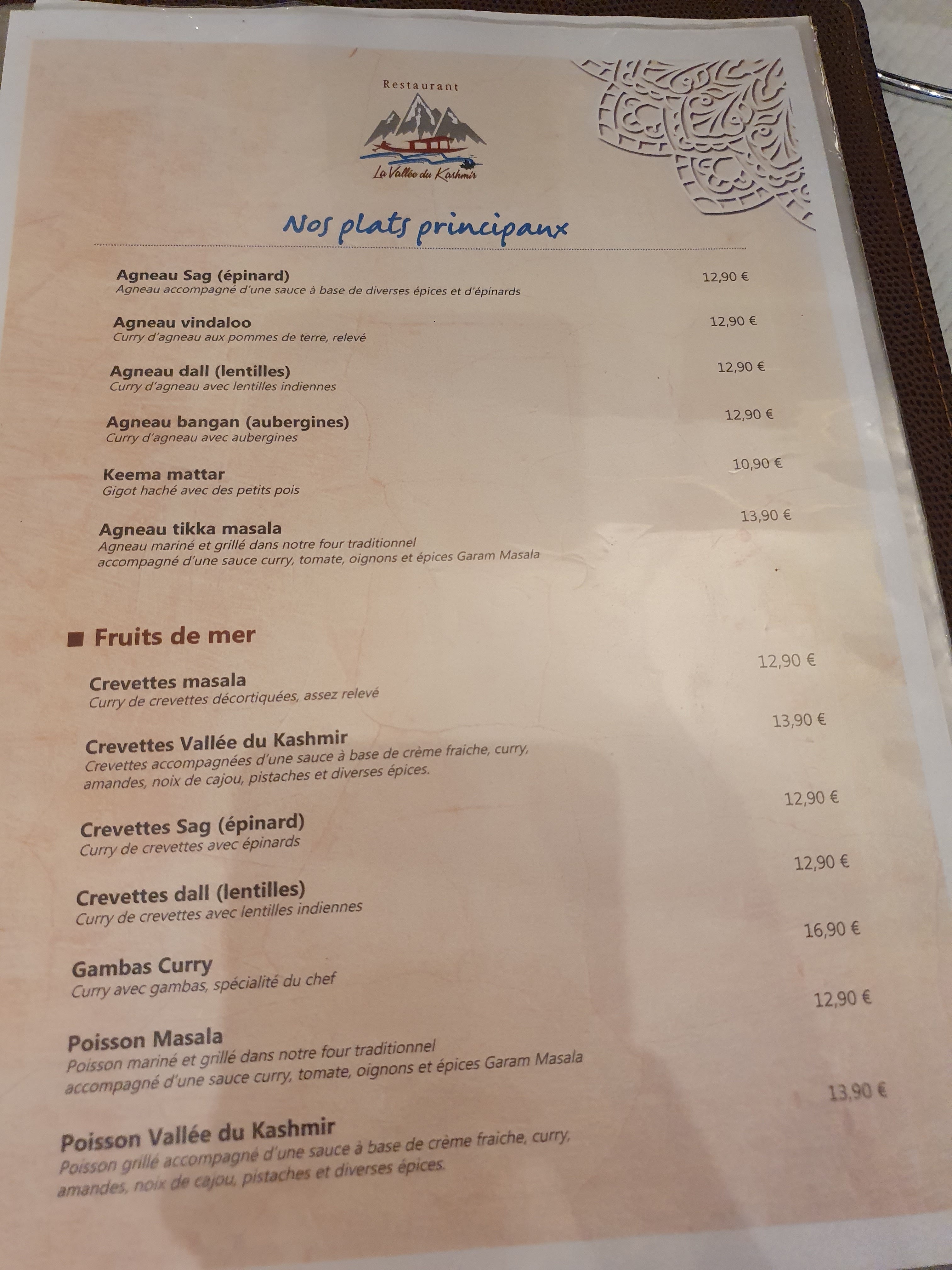 Je ne suis jamais allée manger dans ce restaurant, mais aujourd'hui j'ai commandé par le biais de l'application Uber eats plusieurs plats, et je me régale. Il est rare que je laisse un commentaire sur Google, mais je suis tellement ravie que mon prochain restaurant que j'irai découvrir sera La Vallée du kashmir 🥰😋😋😋