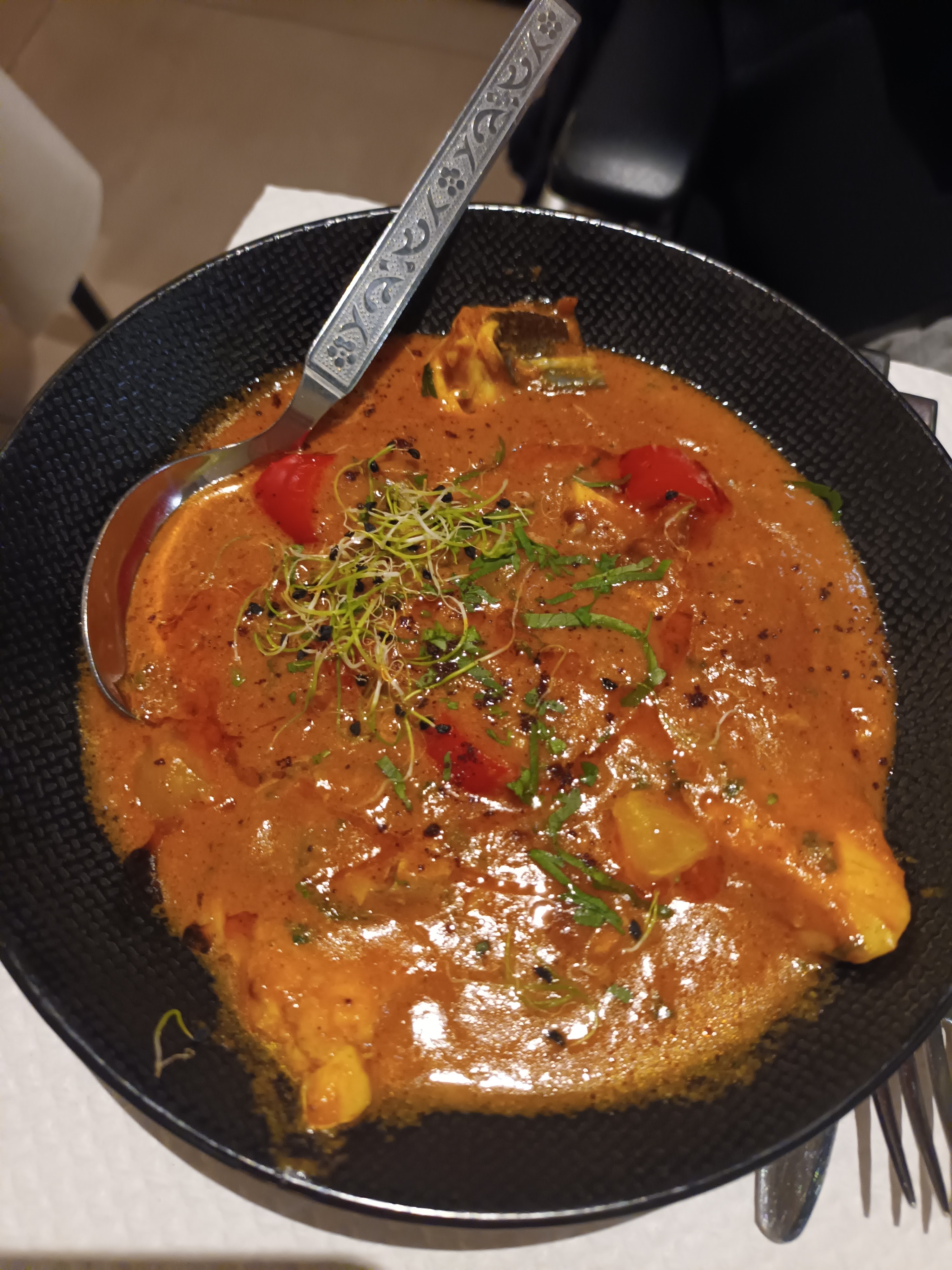 Qualité des plats et quantité au rdv. Cadre neuf agréable, accueil sympathique. J'ai apprécié qu'on nous demande le niveau d'épicé que nous souhaitions: j'ai pu avoir un plat pas du tout épicé.