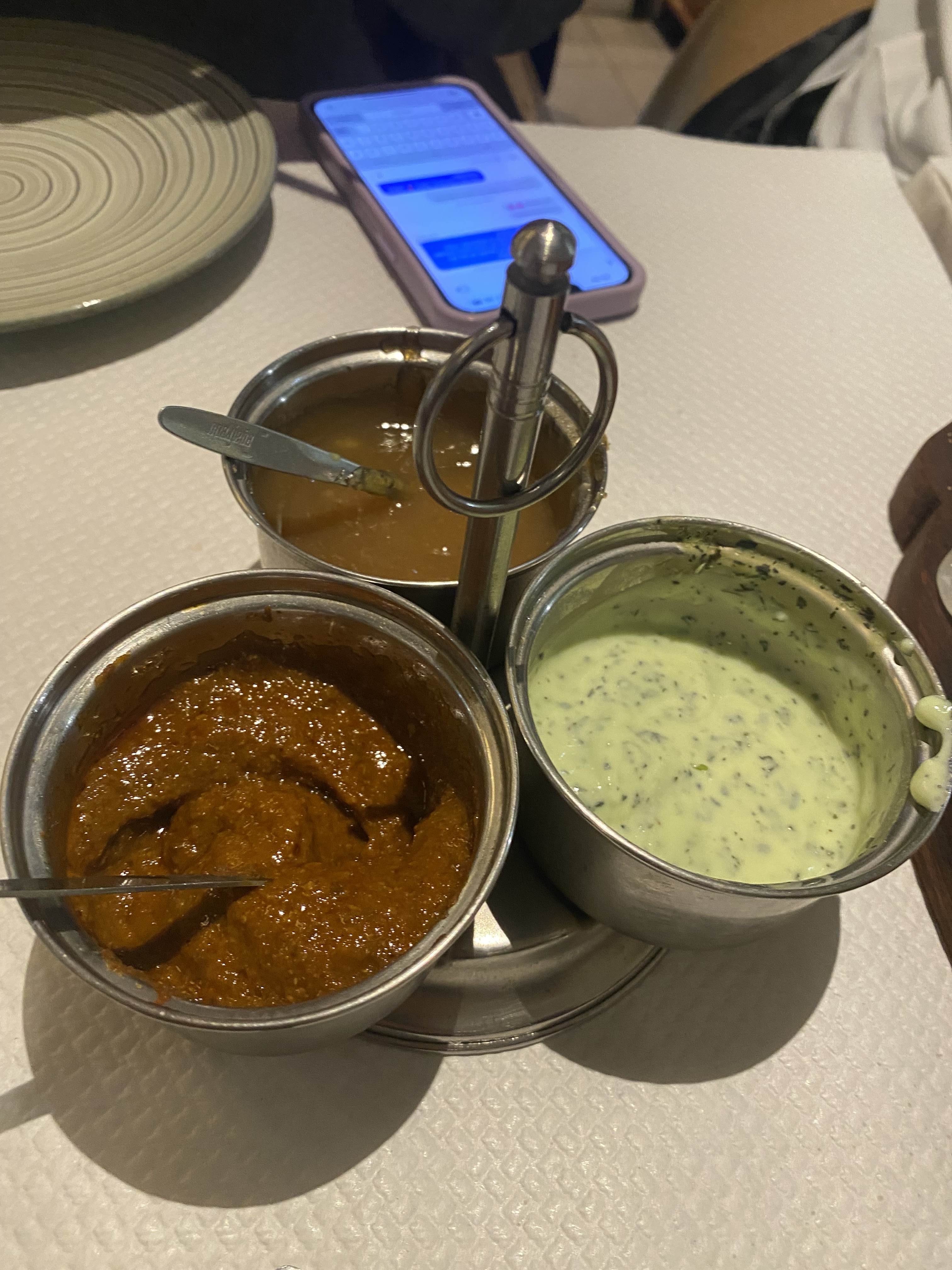 C'était bon en termes de goût mais nous avons été très déçus des quantités servies. Les entrées à partager (pour deux) consistent en 4 morceaux de viande et/ou poisson par personne pour 23€ (A ce prix là un naan pourrait être compris). Vu le prix de l'entrée à partager, nous nous attendions à autre chose et pensions qu'un plat et un accompagnement pour deux nous suffirait. Nous avons eu 4/5 morceaux de poulet à nous partager. Par ailleurs nous avons été oubliés et avons attendu plus de 30mn entre l'entrée et le plat. Pour cette raison nous n'avons pas eu le temps de prendre un dessert. En résumé, c'est bon mais ce n'est pas assez copieux, dommage.