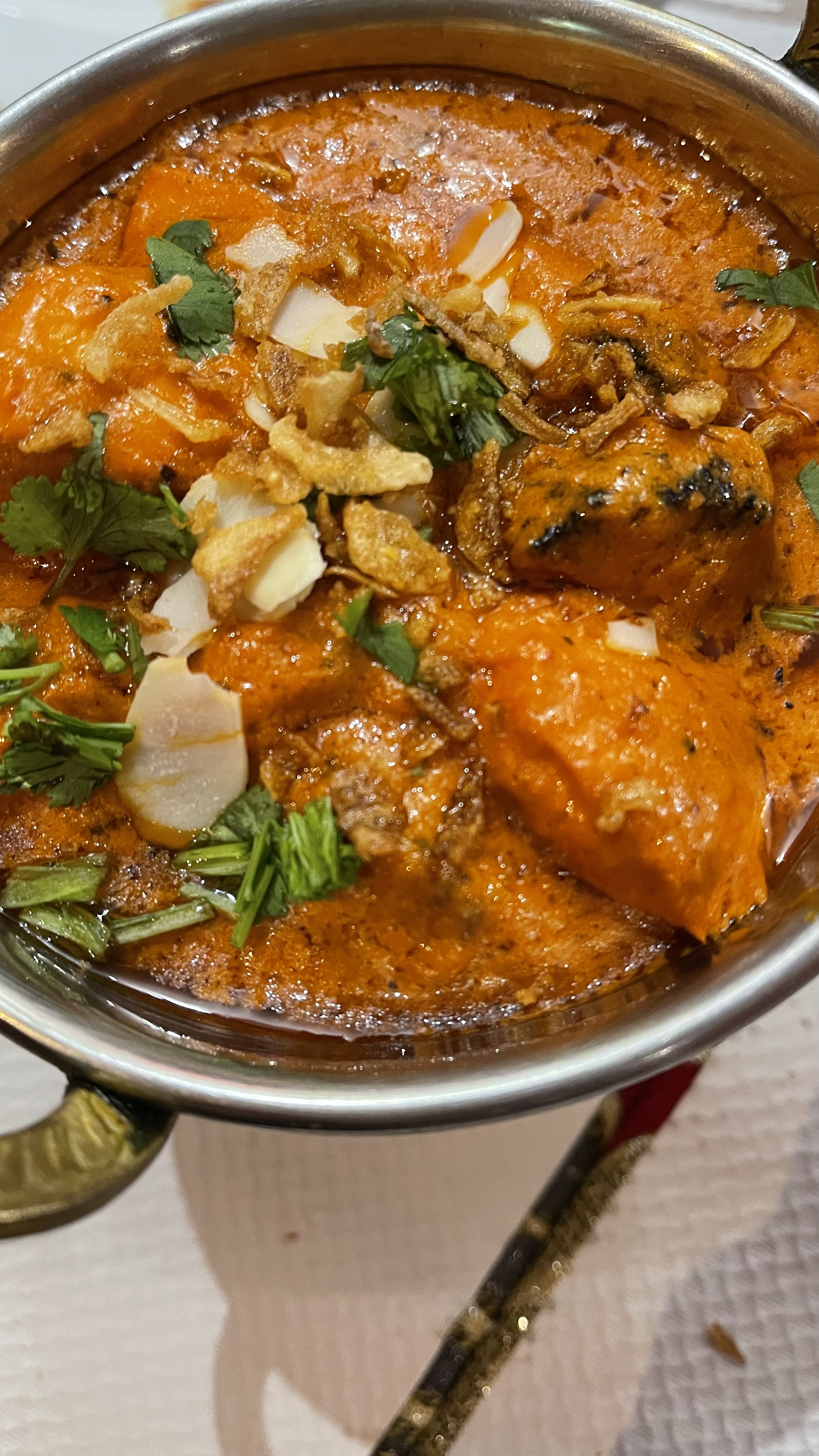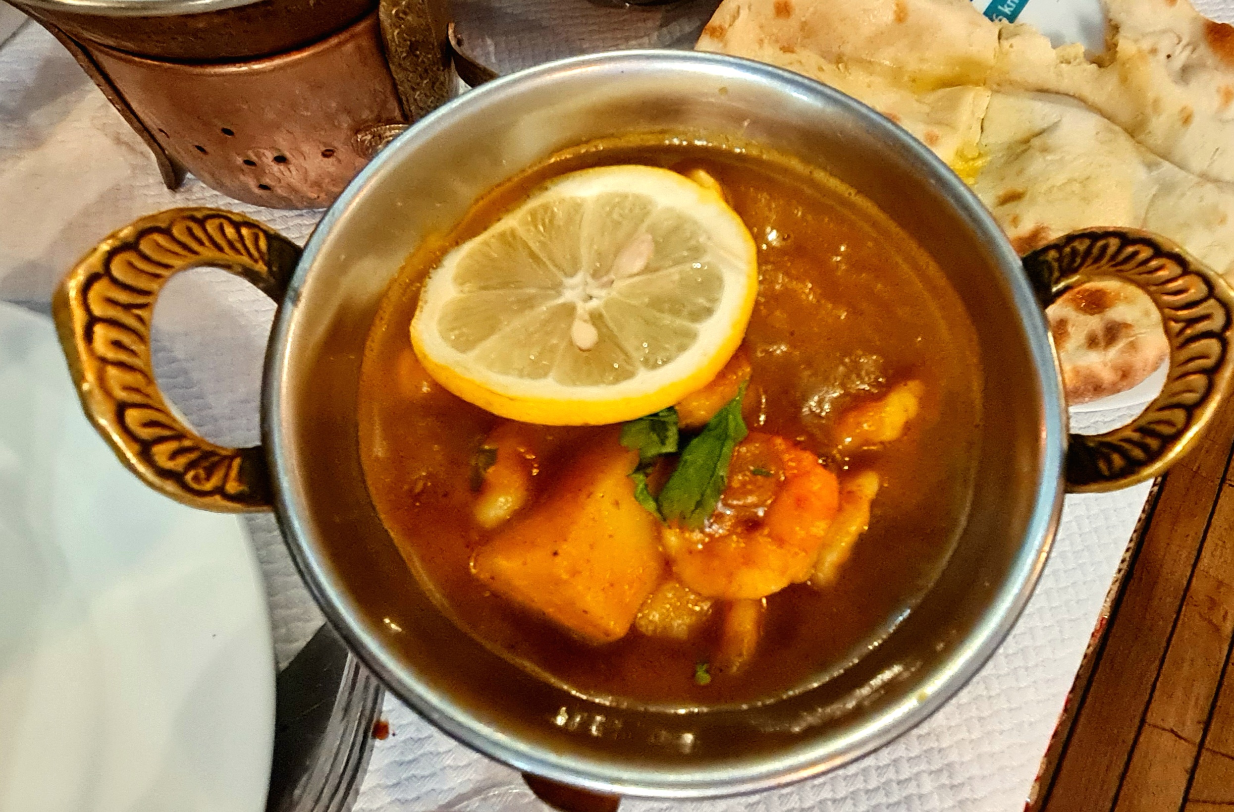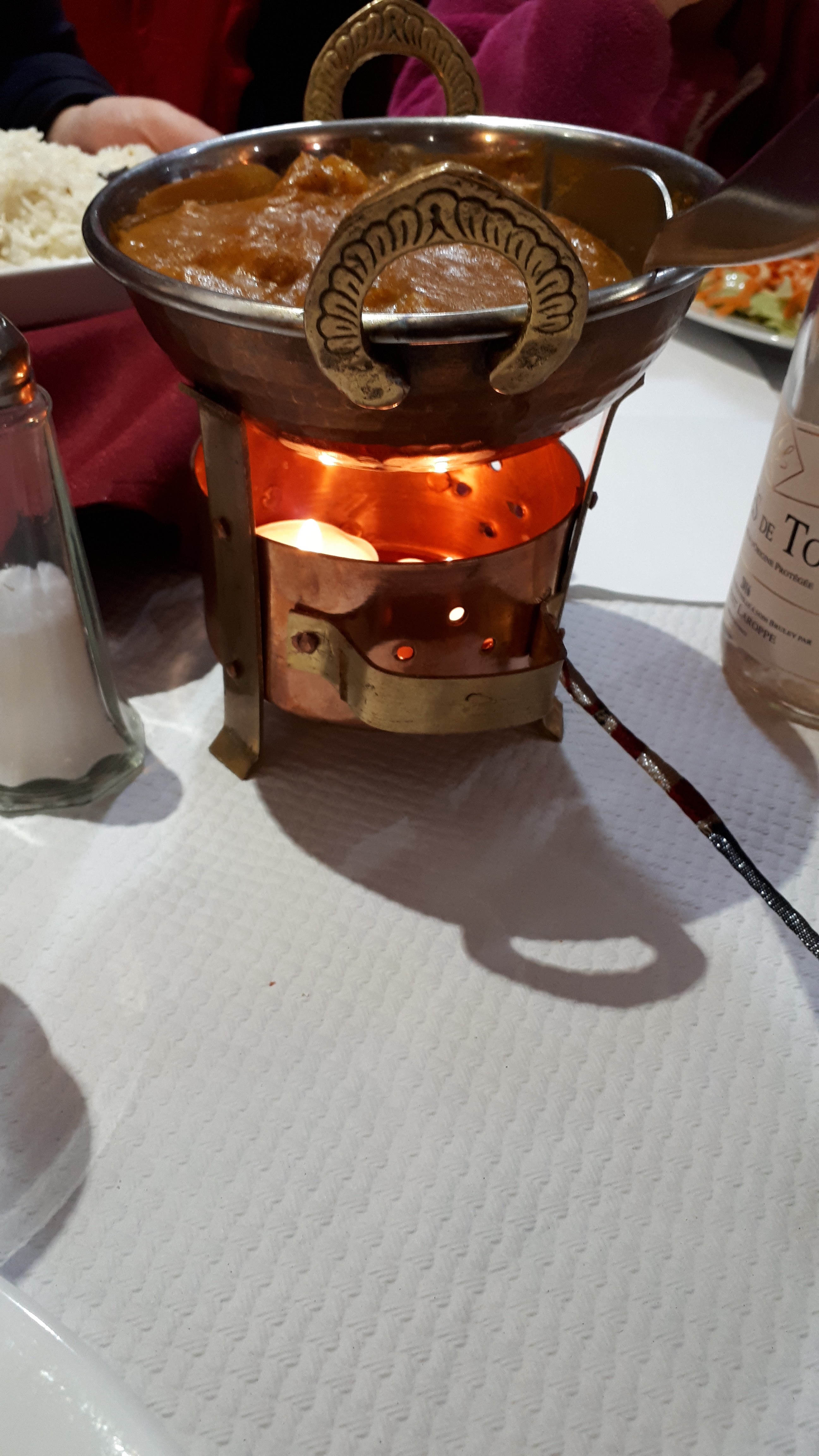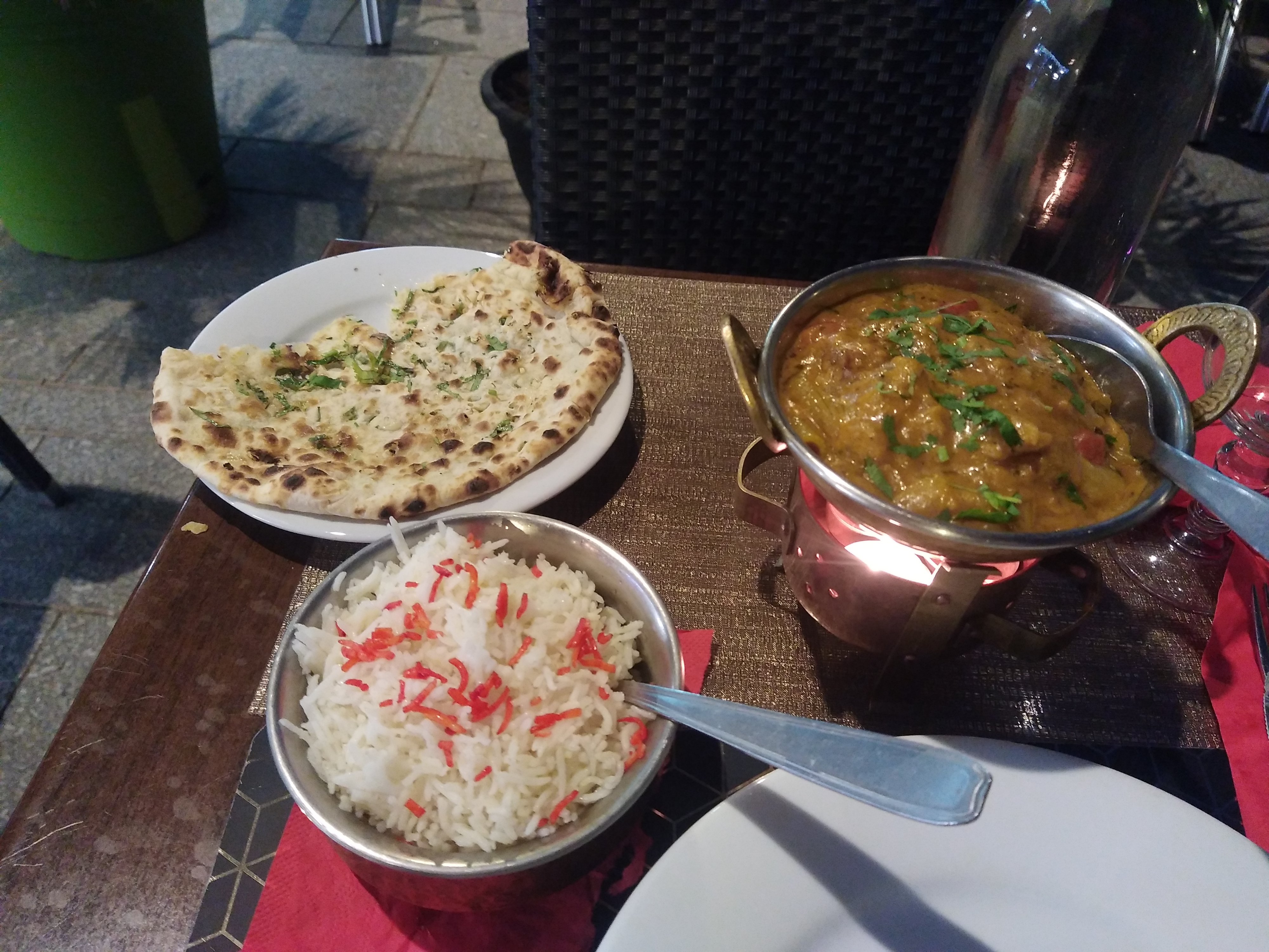 Ce restaurant est honteux. Nous y avons mangé l’annee dernière et nous n’avons rien mangé. Le vin blanc était imbuvable, la viande était on ne peut plus grasse, il n’y avait que du nerf. Nous n’avons senti absolument aucun épice dans nos plats soit disant épicés, et en dessert la glace avait clairement un goût de périmé. En plus nous avions refusé de prendre des naans et ils nous ont quand même été servis ! D’un côté heureusement qu’on les as eu car c’est la seule chose qu’on a mangé. A fuir malheureusement.