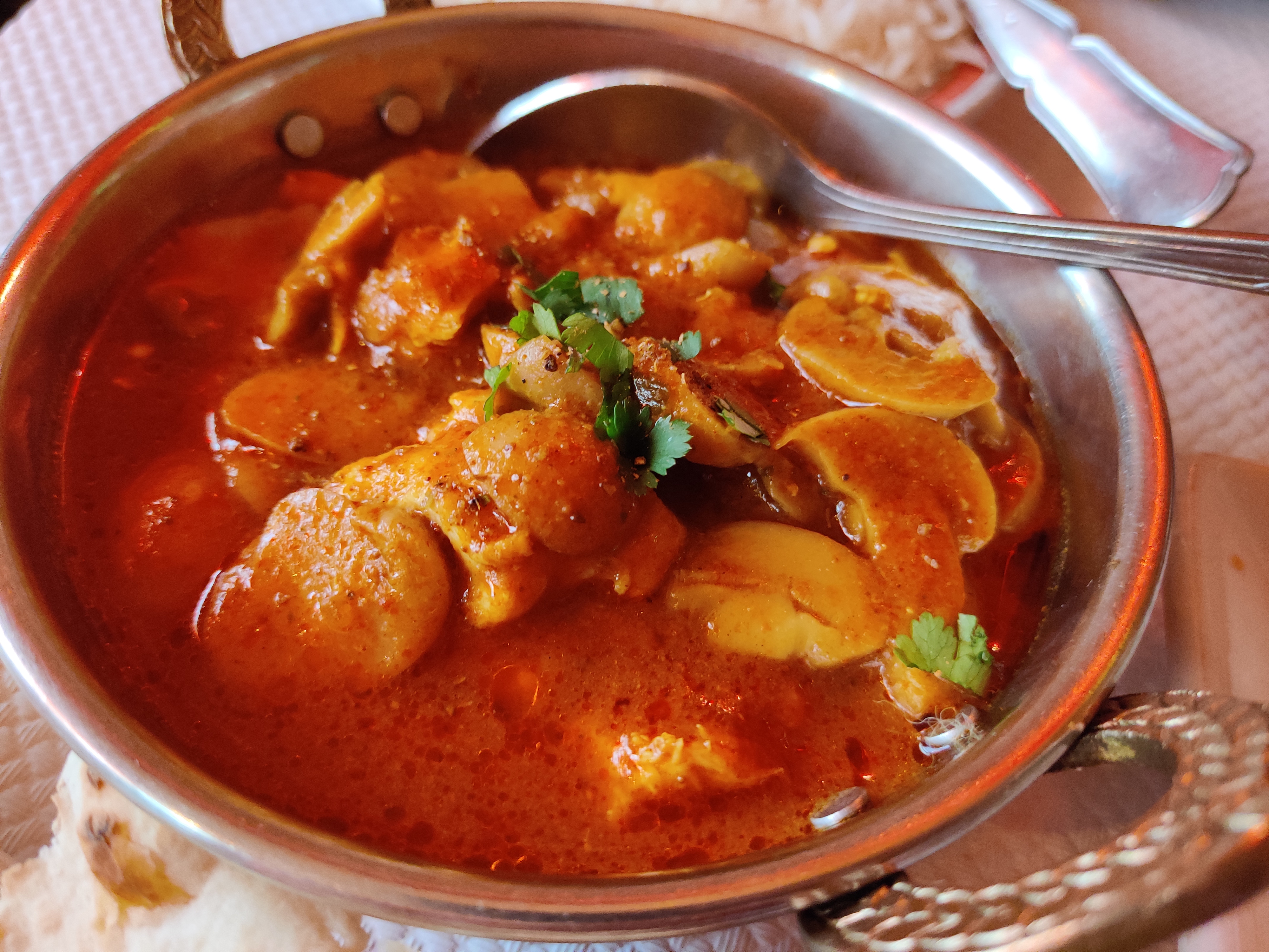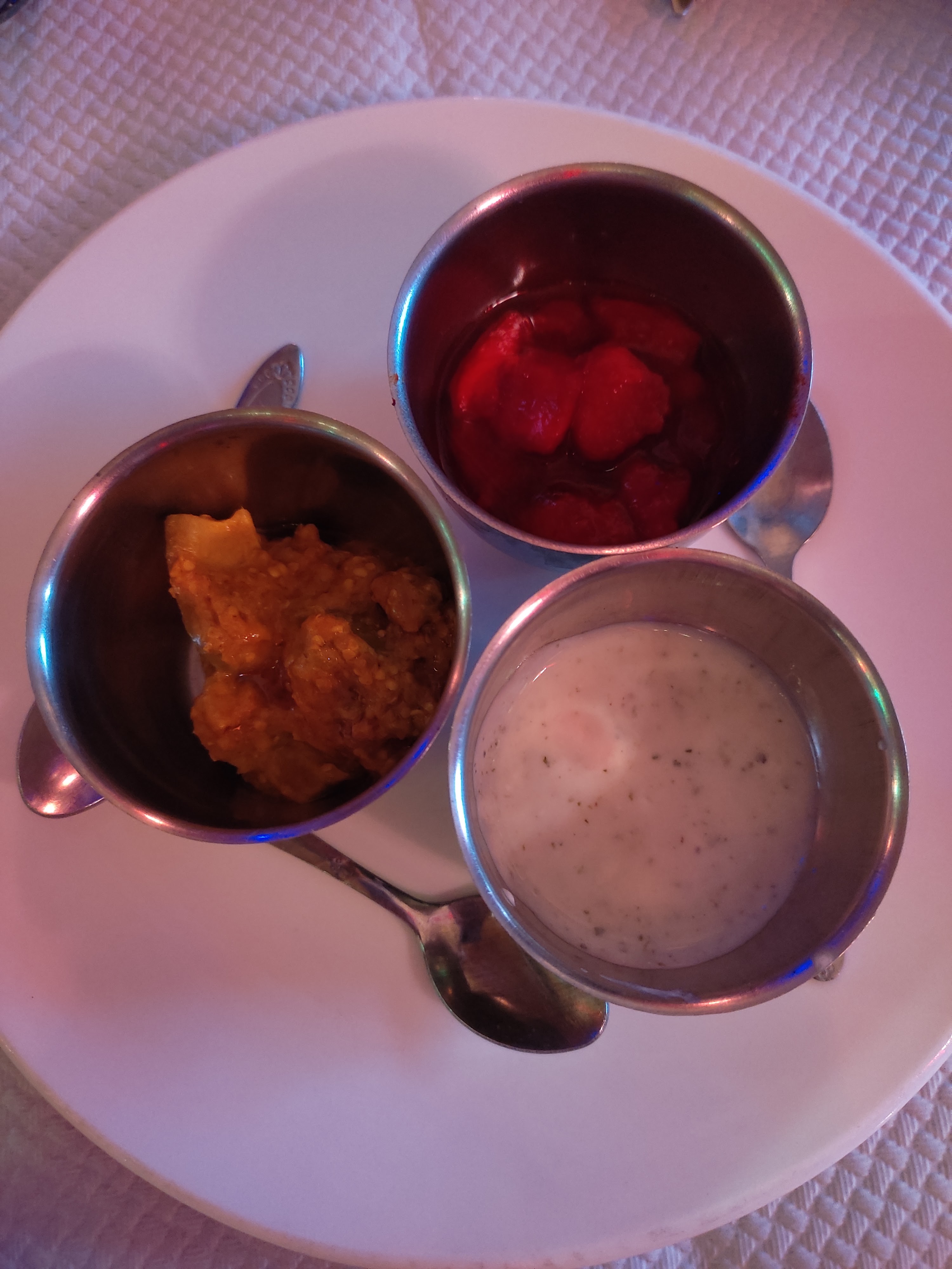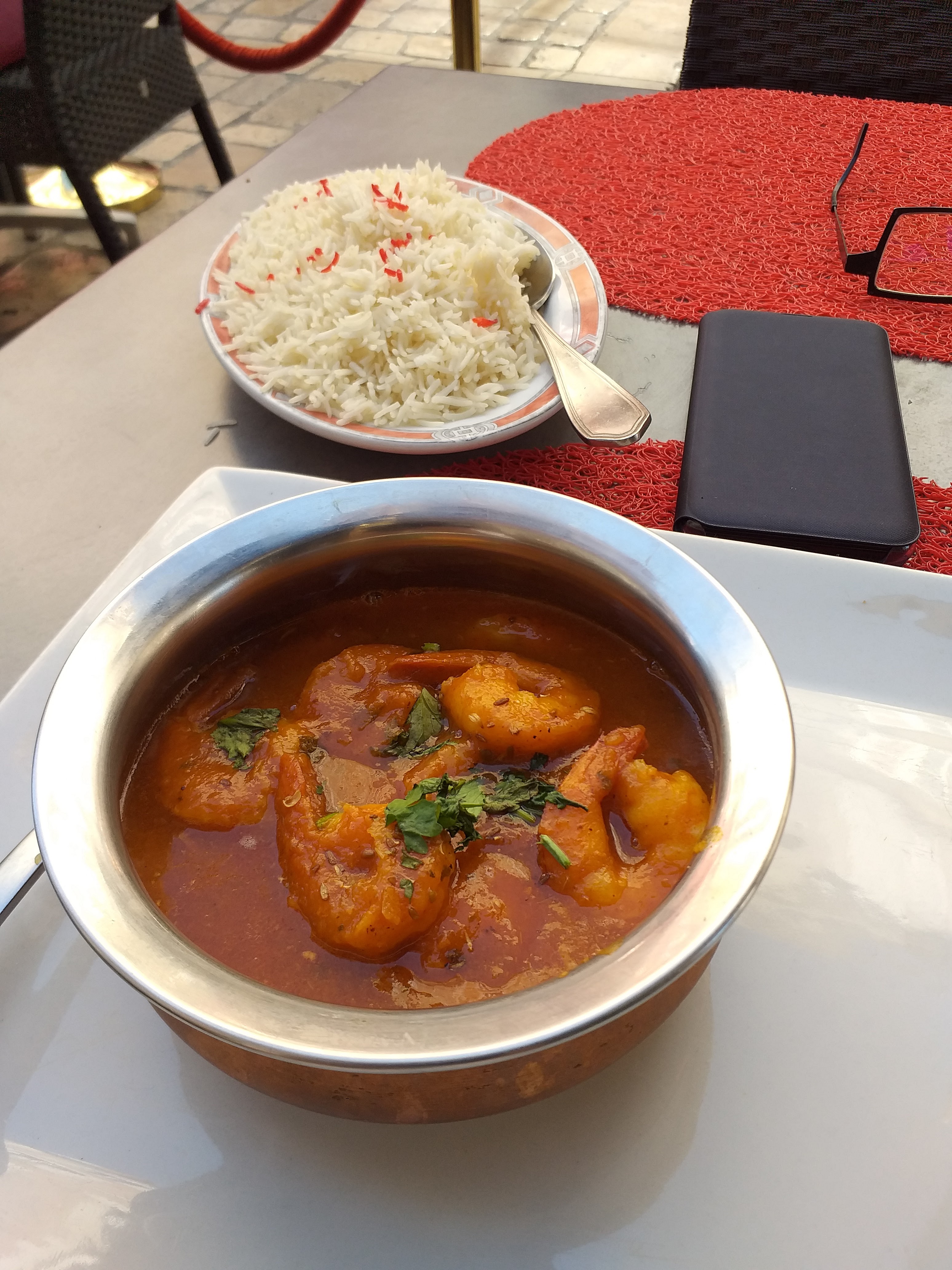 Salle chaleureuse, et bon accueil. Le service un peu trop rapide pour nous, le plat est servi alors que nous n avons pas terminé l entrée. Le byriani aux légumes et le dahl végétarien sont corrects, sans plus et manquent de saveur. Bonne soirée néanmoins mais déçus de la cuisine qualifiée d excellente par certains clients.