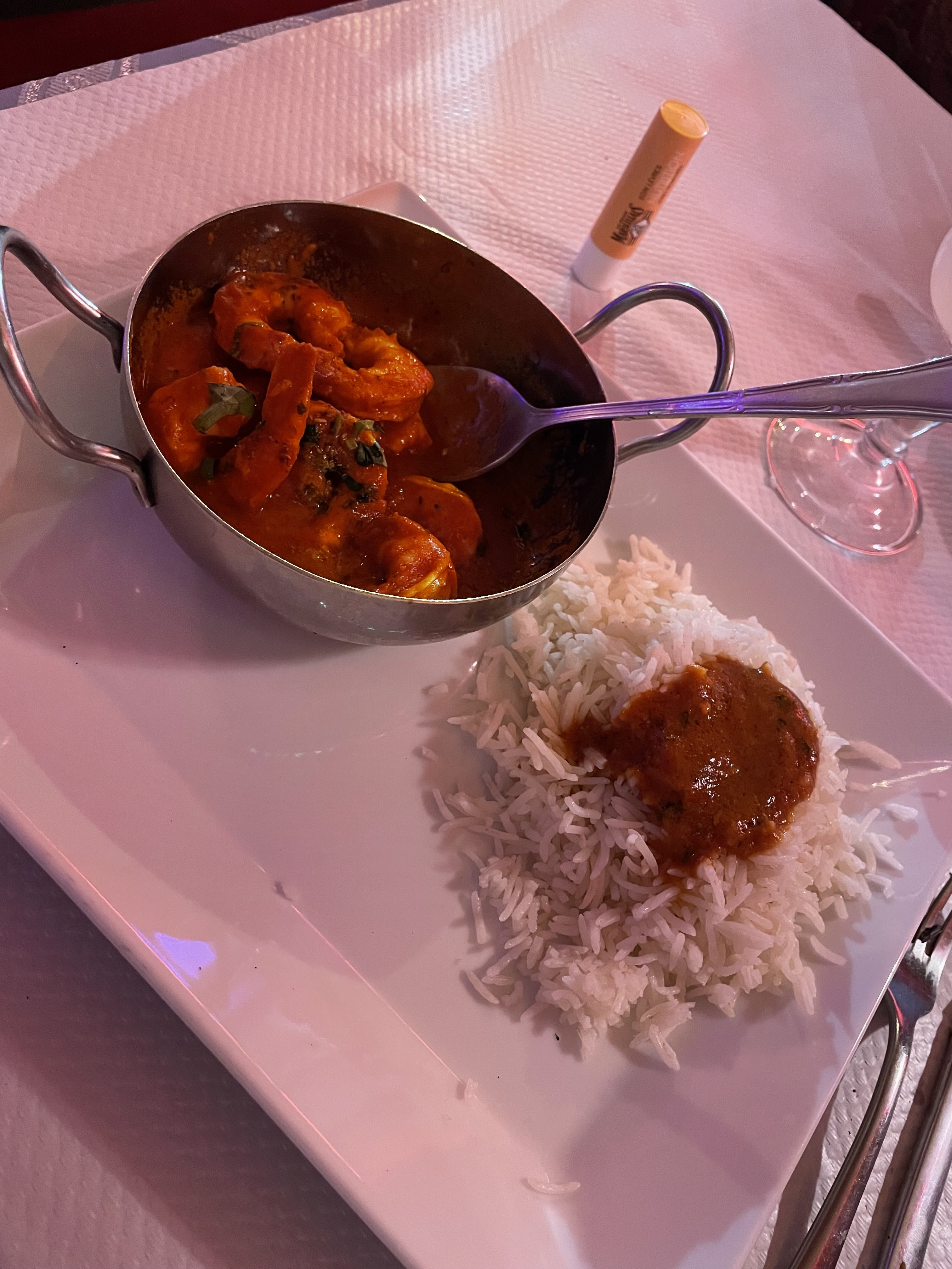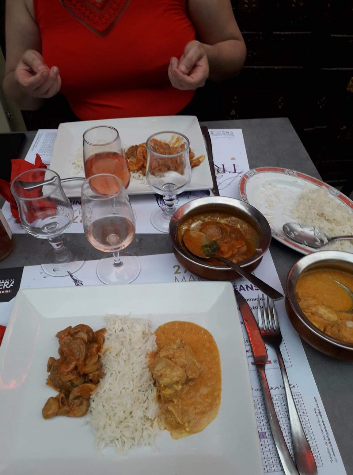 Un des nombreux indiens de la rue de Bourgogne à Orléans. Un de ceux à éviter aussi. J'ai pris le menu à 18 euros avec une base normalement de gambas. En fait des crevettes bouquets. Les premières étaient simplement carbonisées sur une plancha. Le plat principal une douzaine de crevettes dans une sauce tomate épicée et du riz sec. Le nan fromage à volonté est limité . Il existe certainement des formules meilleures si j'écoute les voisins de la table voisine. Dommage cette disparité dans les menus. Personnels très gentils par ailleurs