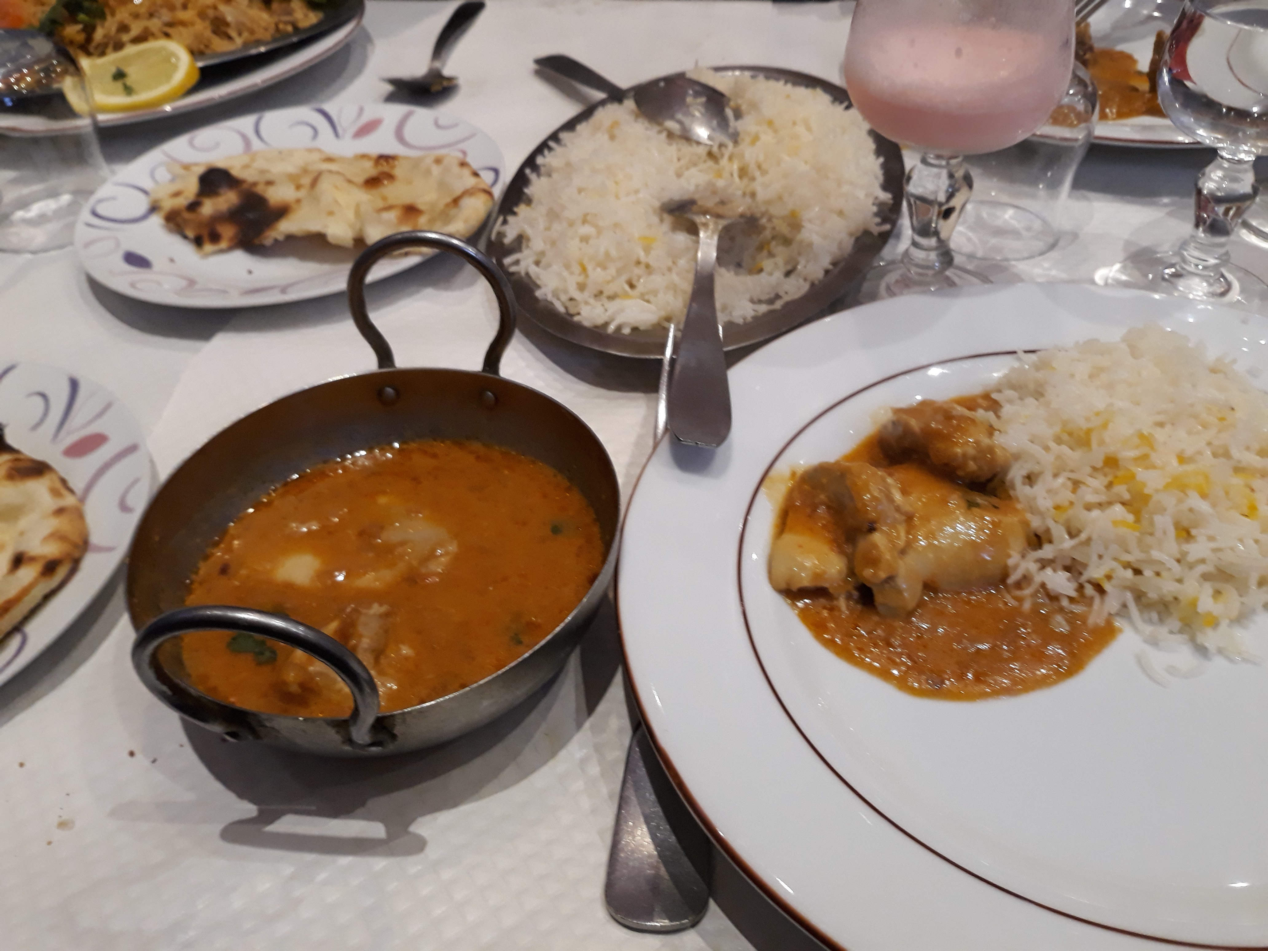 Commandé sur JustEat. J'ai commandé un poulet biryani, des crevettes korma et une cheese naan. Très très déçue puisque le poulet était cramé (tous les morceaux de poulet avaient du noir), la sauce des crevettes granuleuse (je n'ai pas compris pourquoi) et la cheese naan pas très généreuse en fromage. Le riz était pas mal, mais cela reste du riz... J'ai été très déçue ; je ne recommanderai pas. EDIT (réponse au commentaire) : Navré monsieur, mais sur JustEat il le marque comme cela. C'est bien votre restaurant. Cordialement.