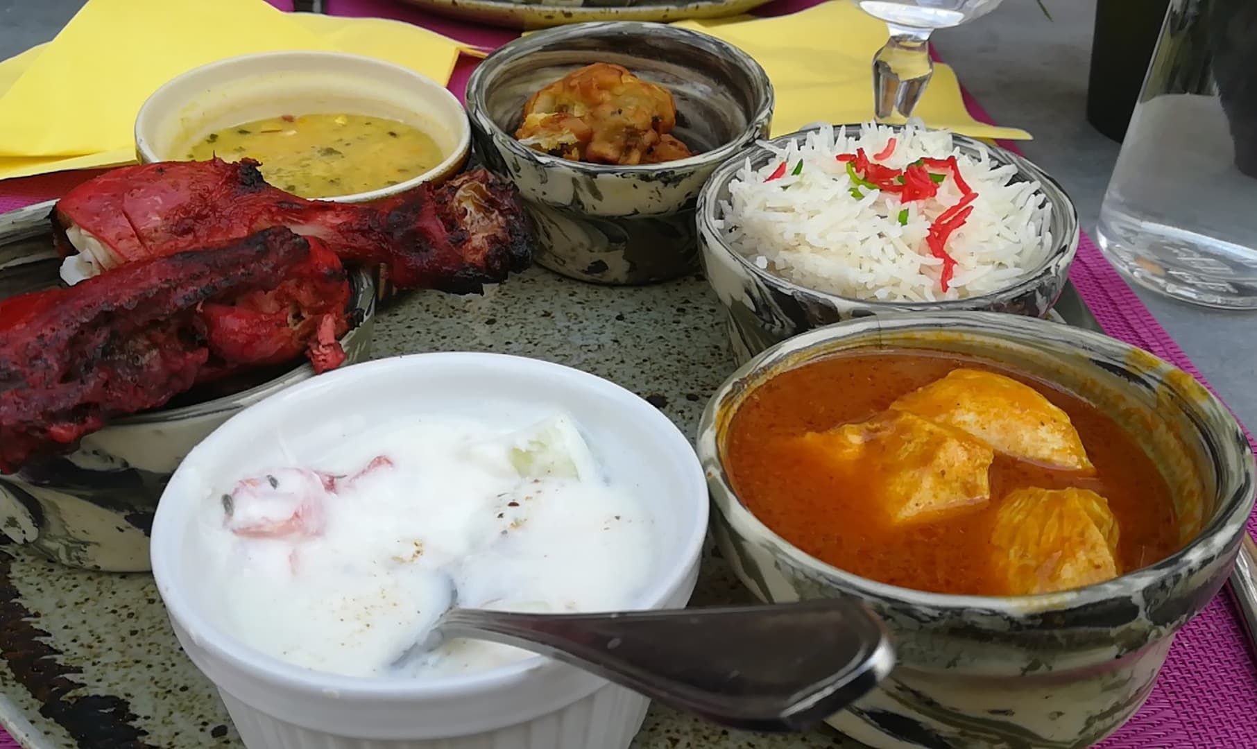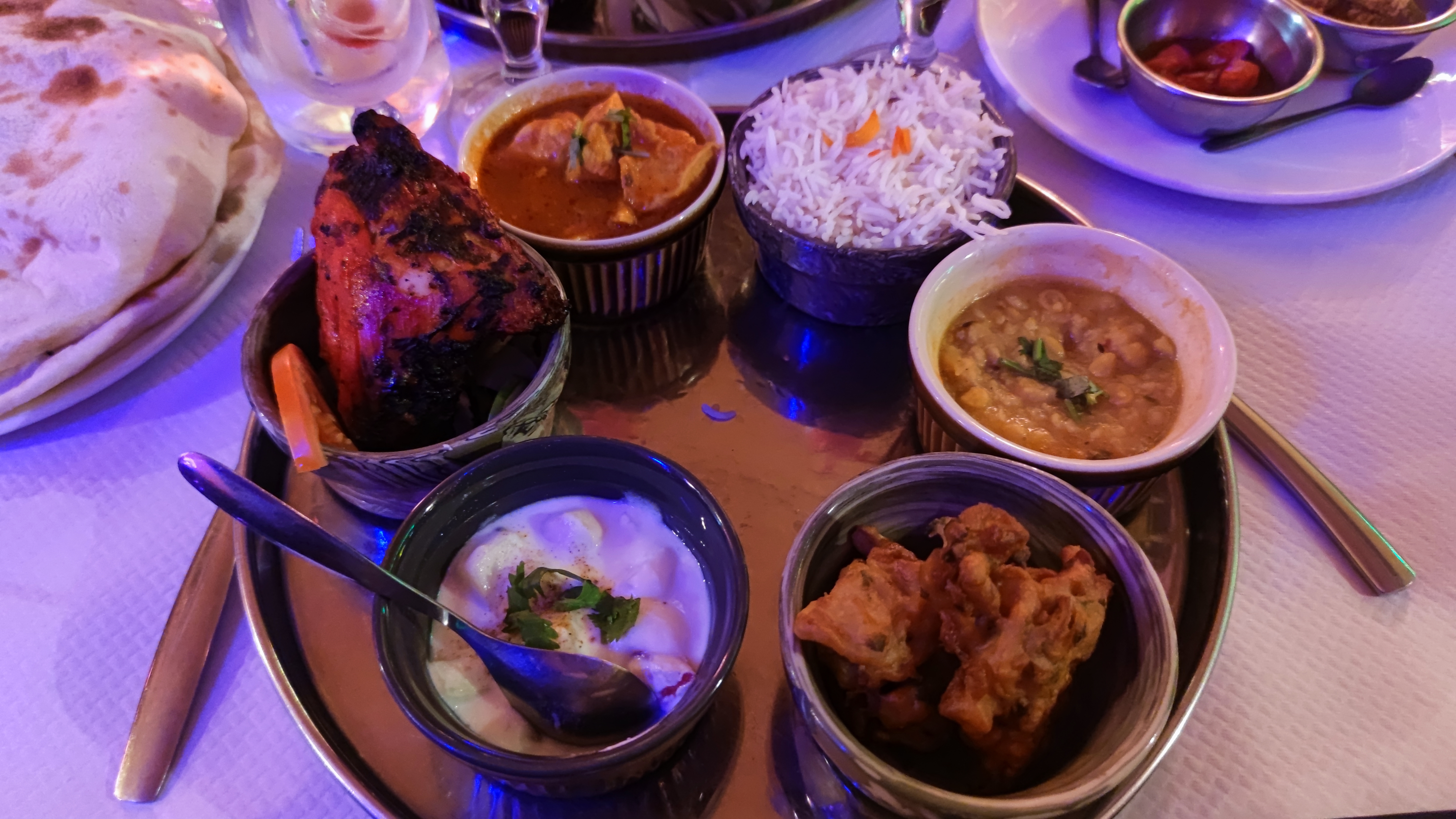 Première expérience de cuisine indienne, le butter chicken était excellent. Le service était très aimable et de bon conseil. Le prochaine fois nous prendrons un menu pour avoir les naans à volonté !