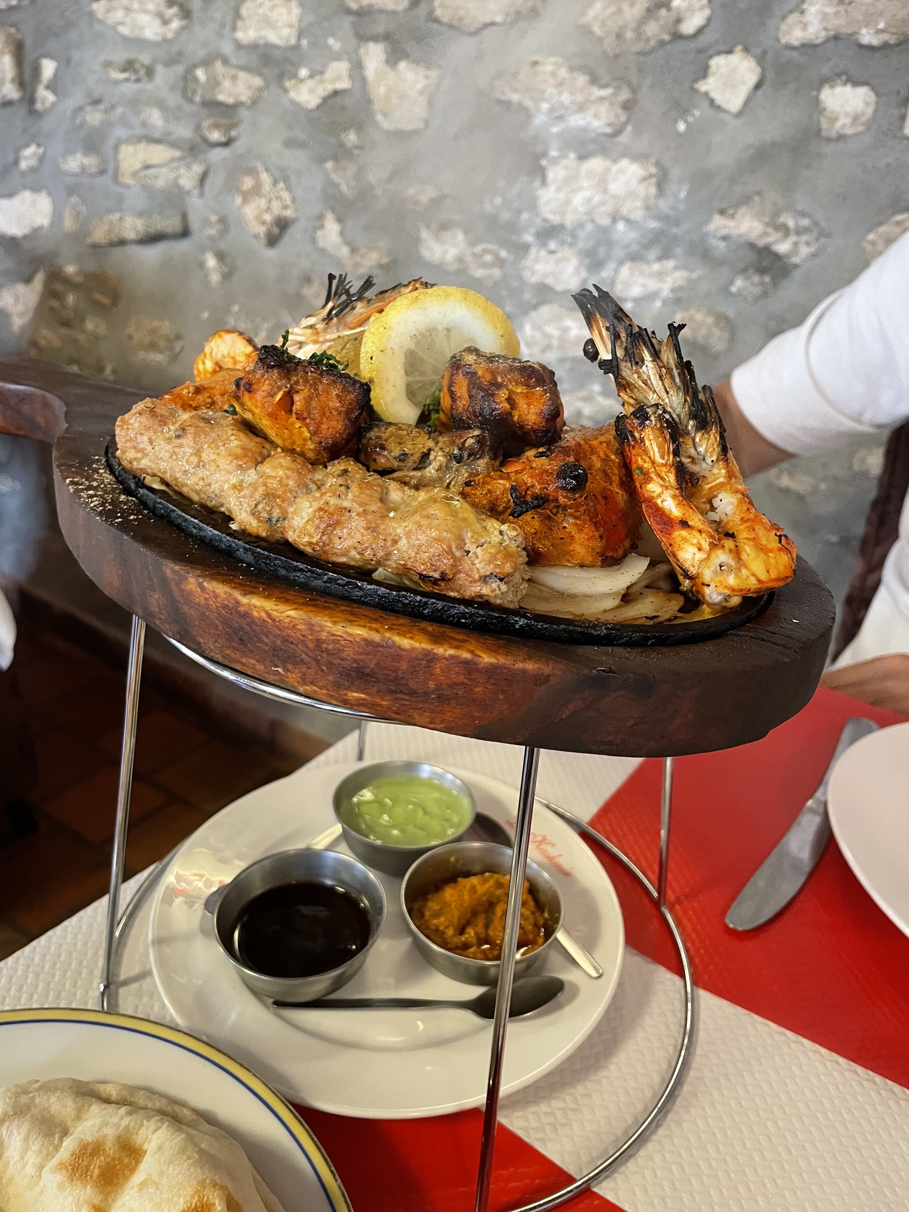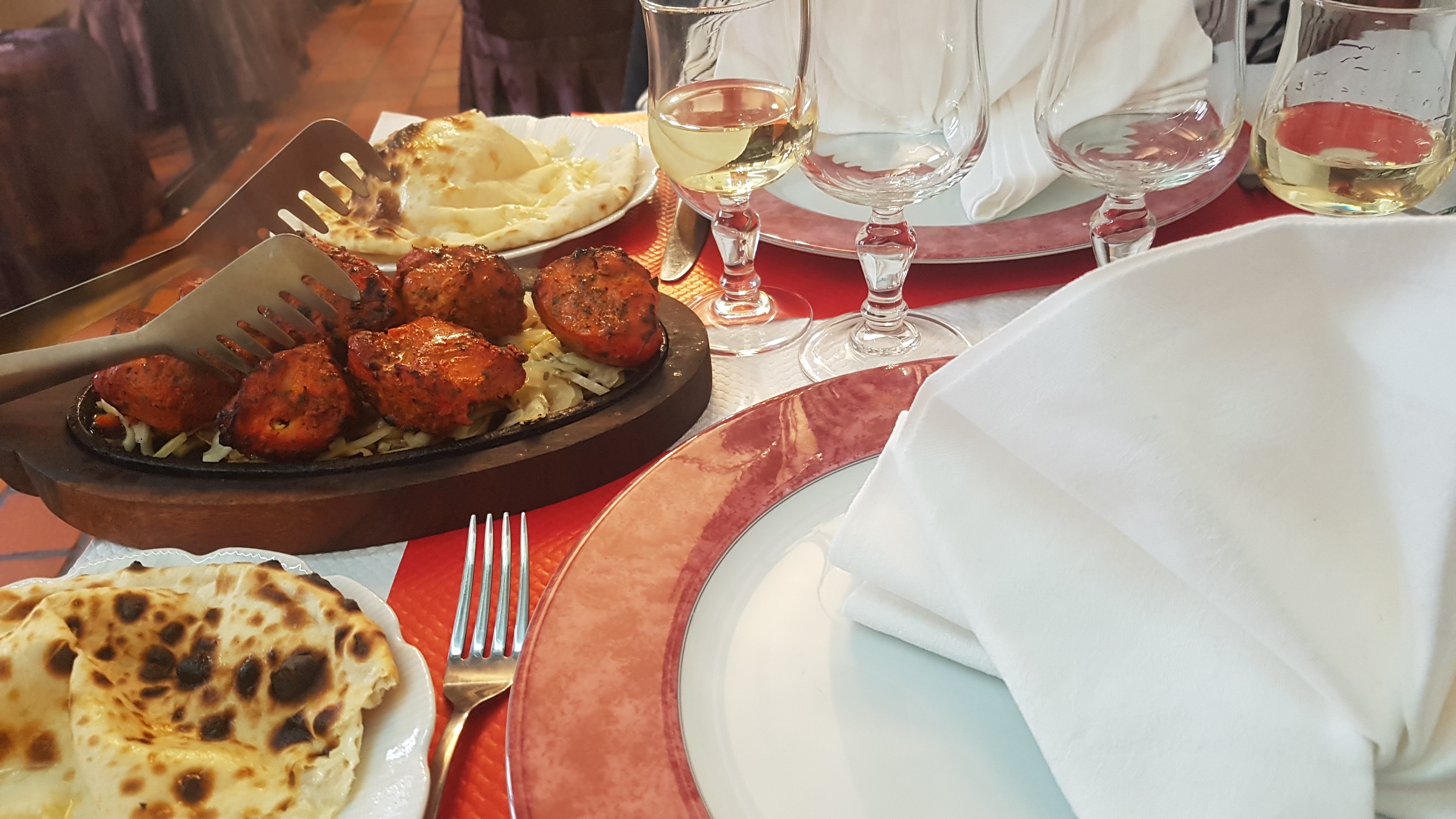 Acceuil ,table,et plat,tout est réussi... Service à l anglaise avec main dans le dos.. Vin indien...Excellent avec les plats légèrement relevés Nous avons passé un très bon moment de découverte...