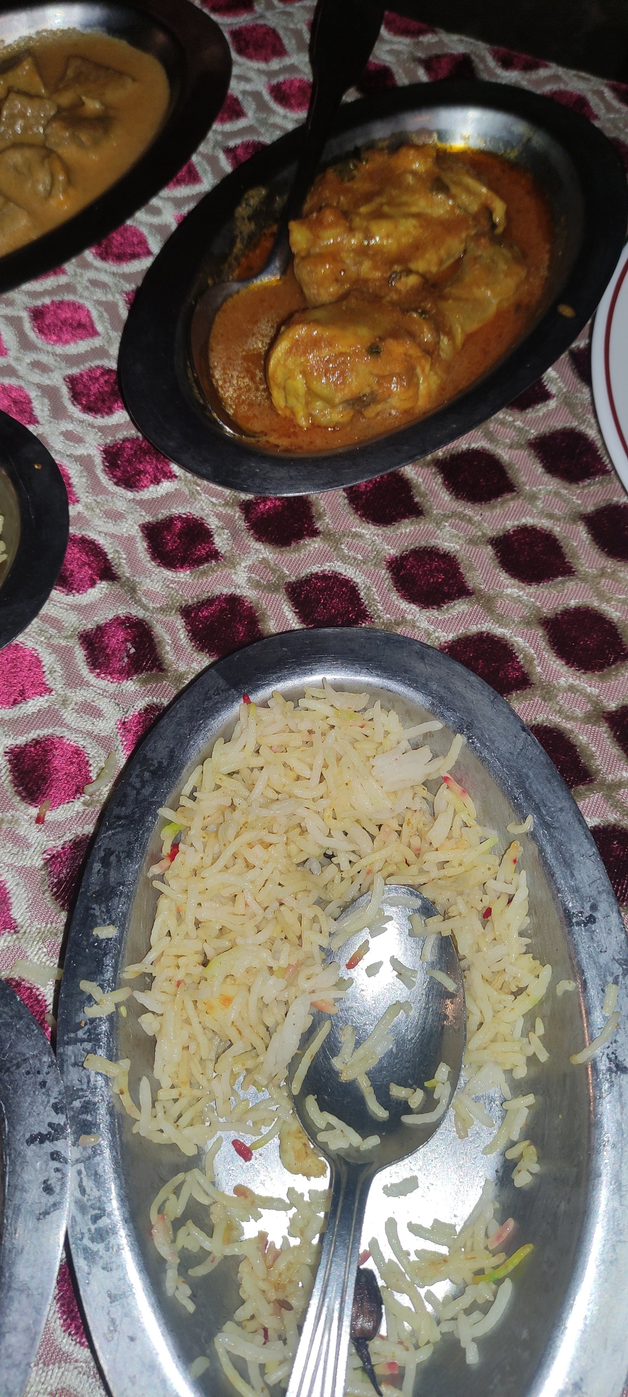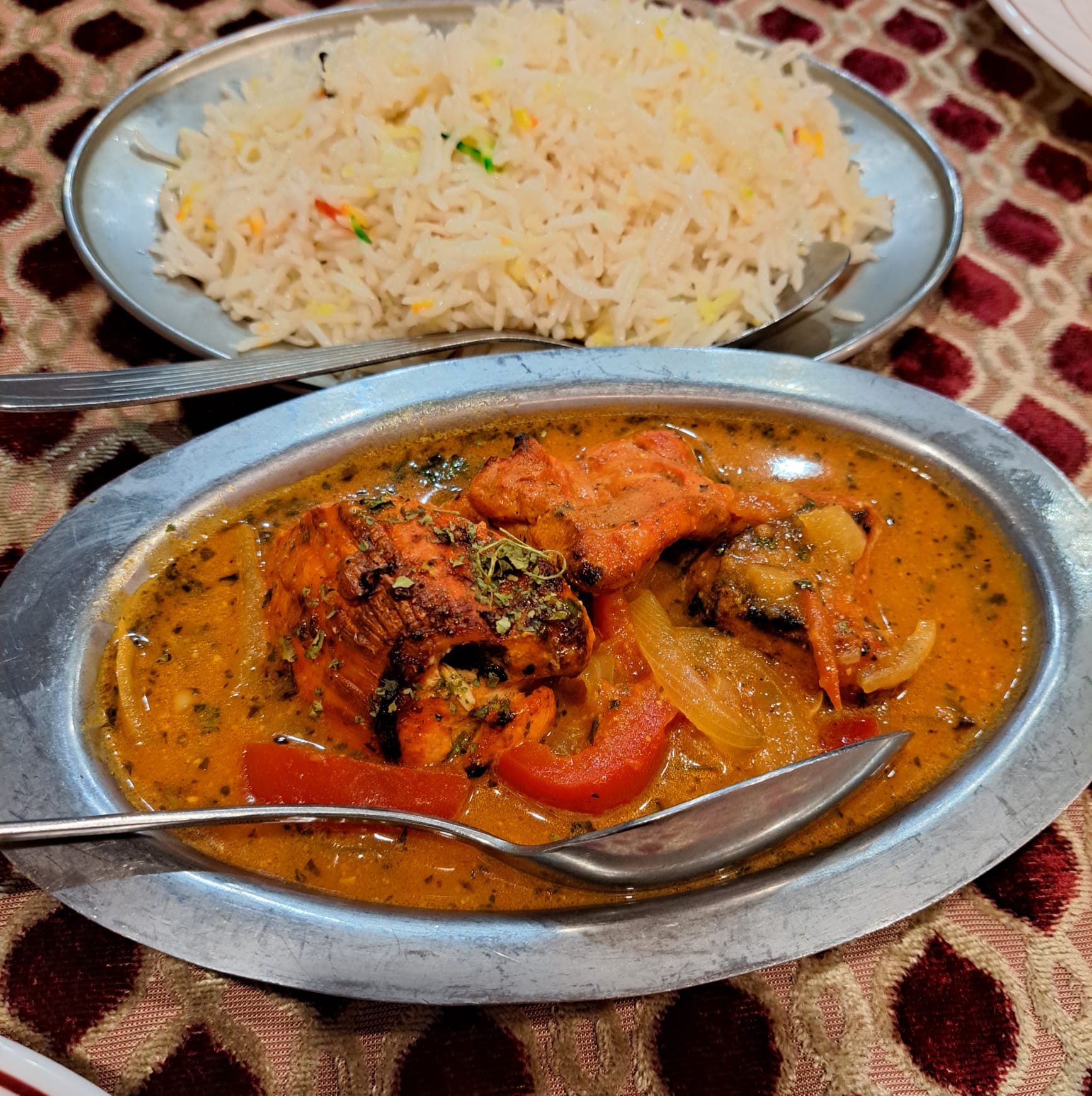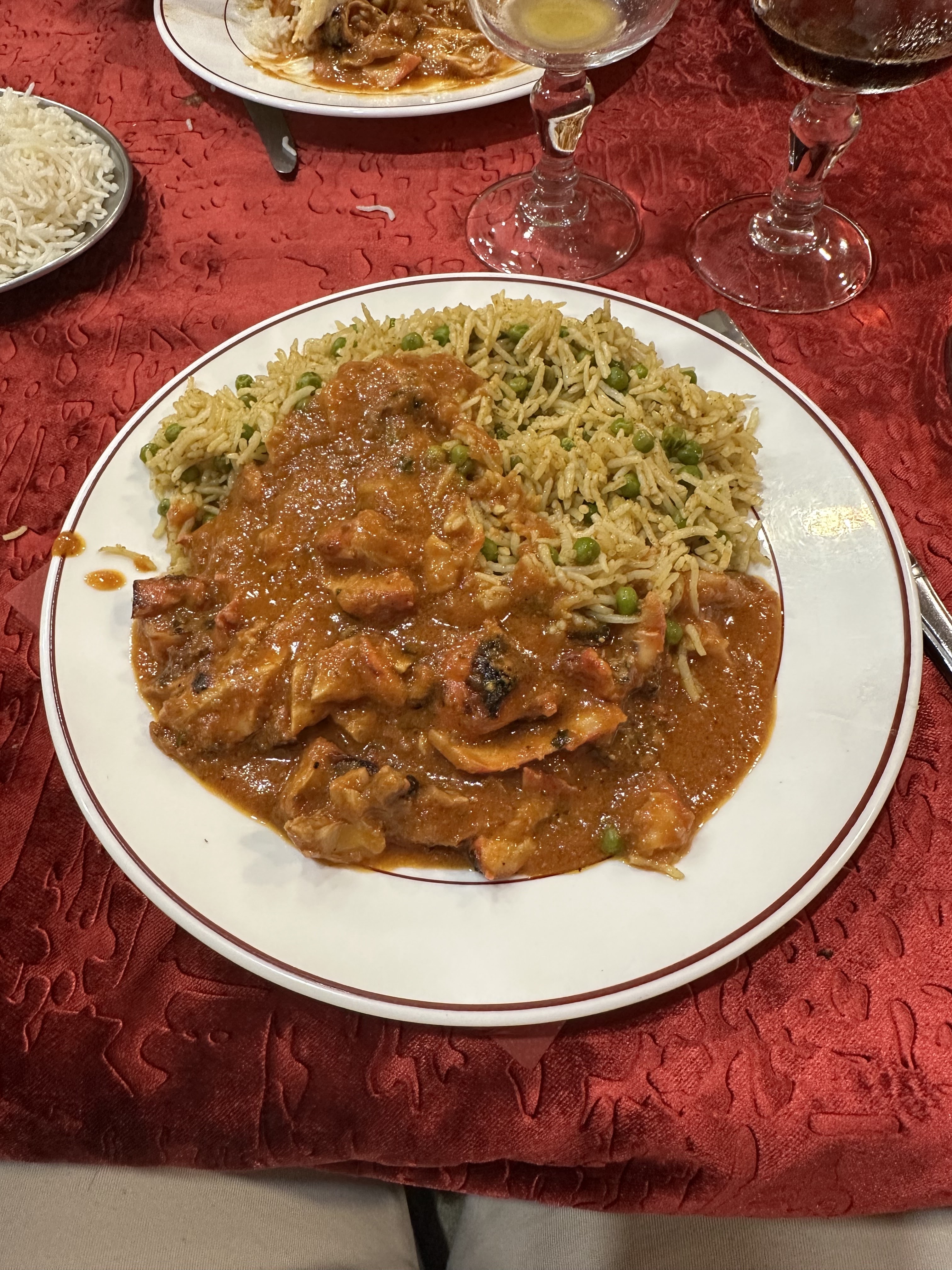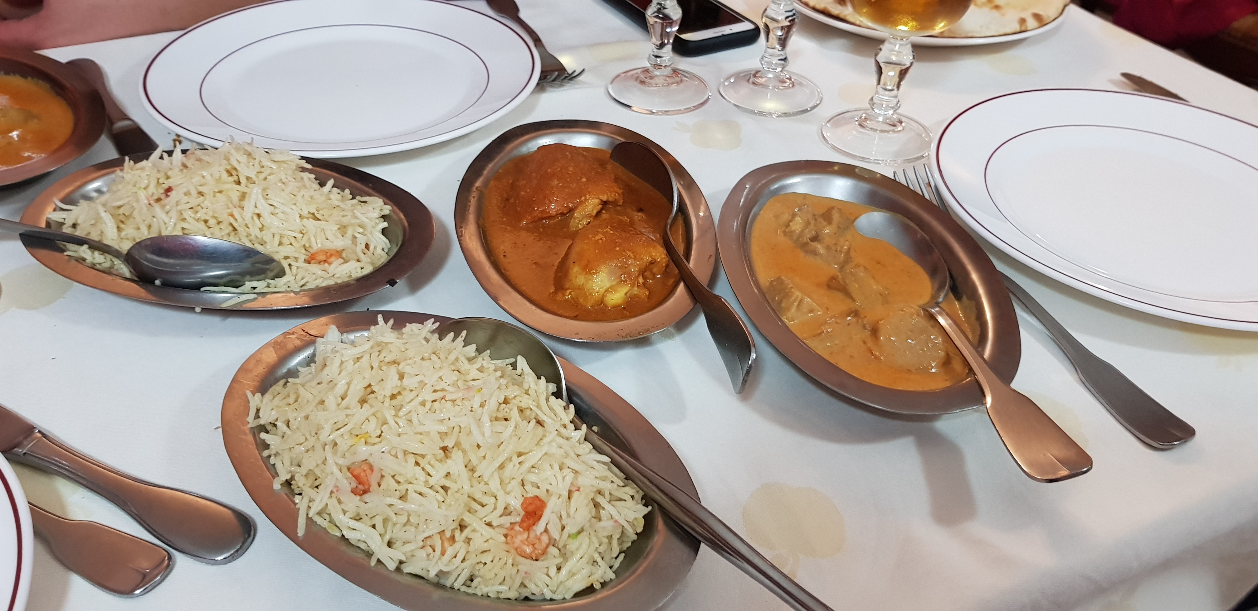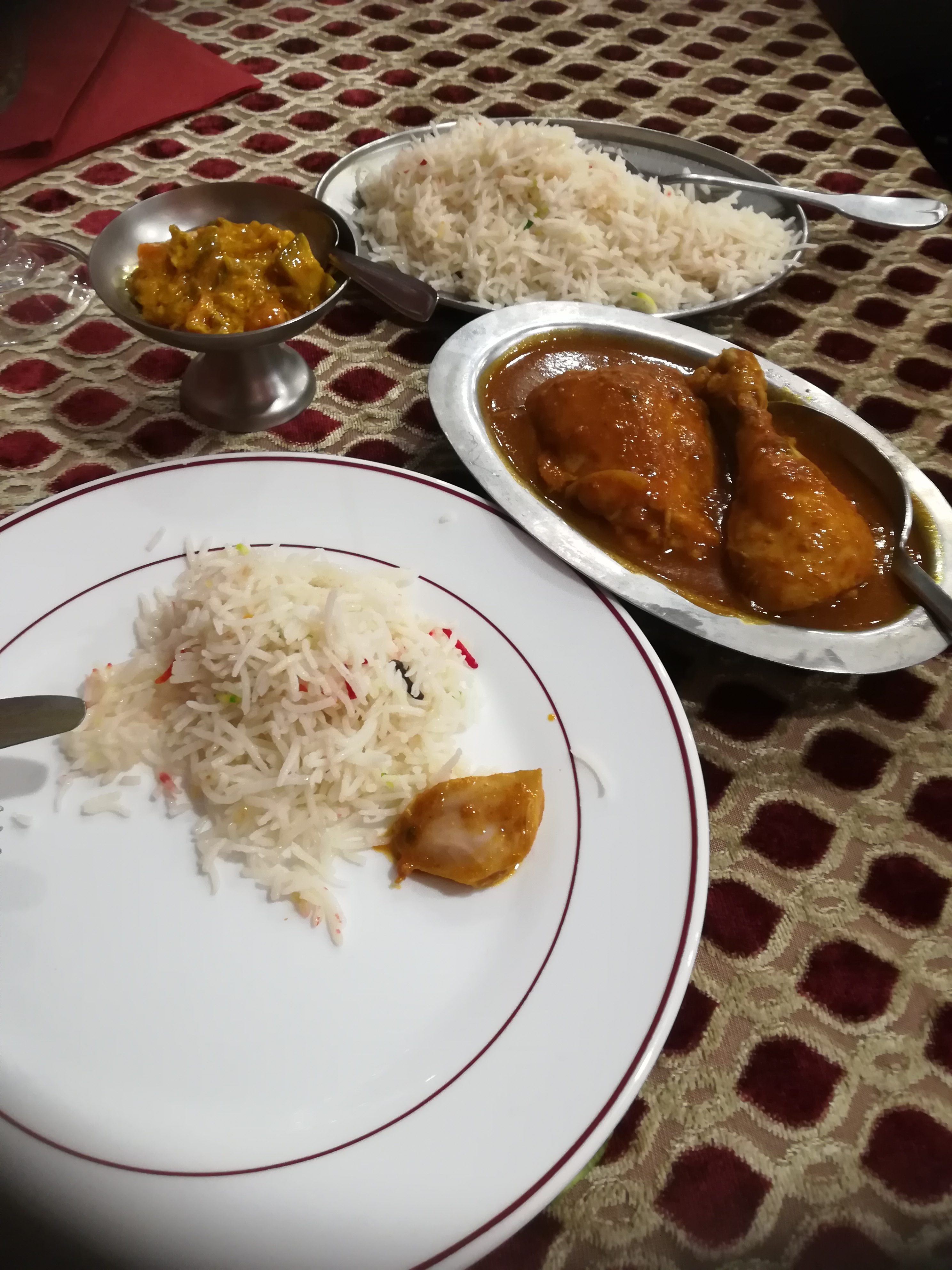 Première fois dans ce restaurant que nous avons choisi sur un coup de tête. L'entrée était bonne sans être exceptionnelle mais bien relevée par la sauce épicée. Le plat principal, un agneau bengan, était lui excellent. L'agneau était cuit parfaitement et les aubergines étaient fondantes. Je conseille fortement ce plat. Le serveur était très présent et venait souvent nous voir pour vérifier que tout allait bien. Personnellement, je n'aime pas trop que l'on soit trop sur nous lorsque l'on mange mais bon, là ça passait au final car le serveur était gentil et bienveillant. On a bien rigolé avec lui.