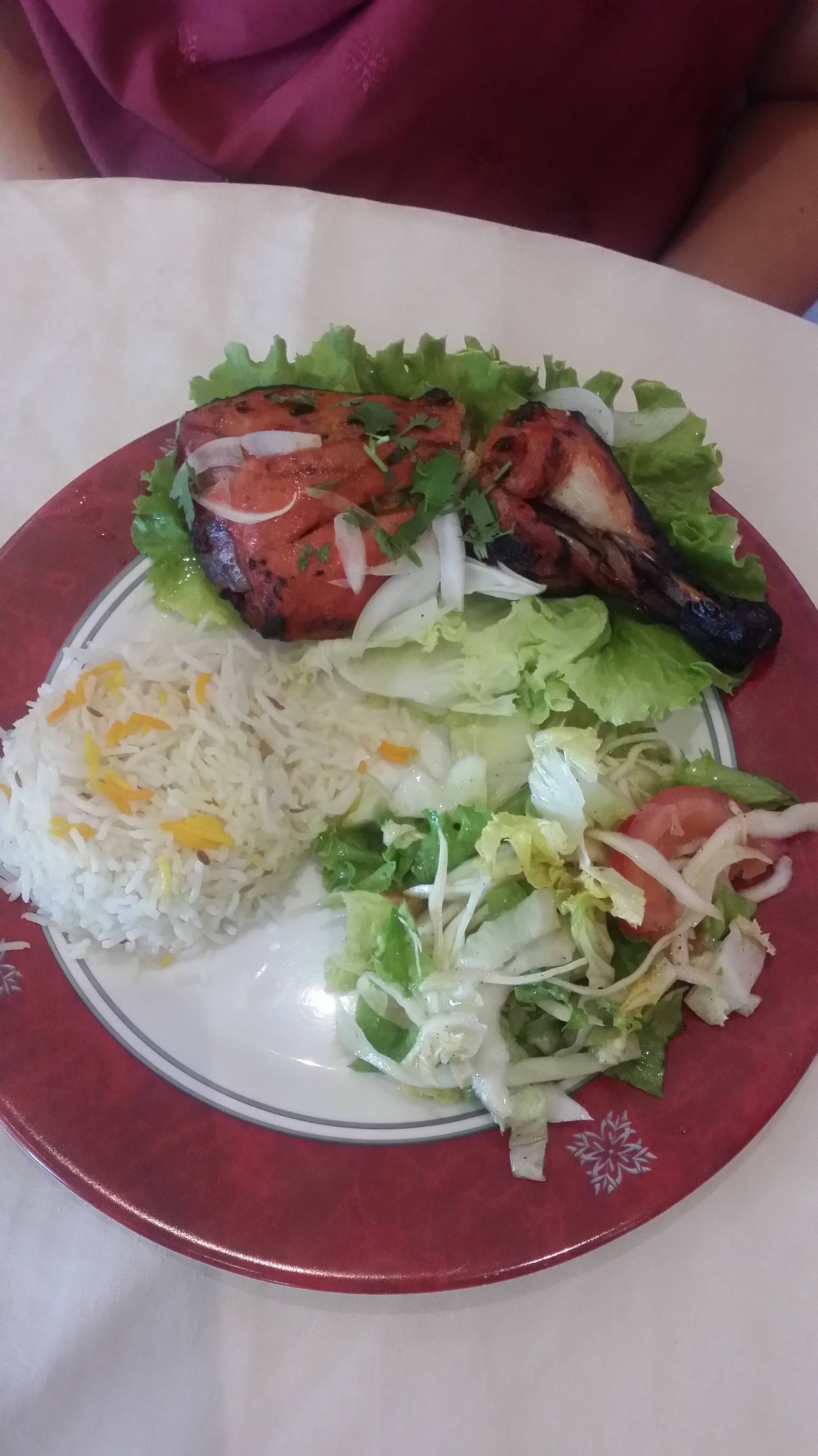 Très bon menu et nourriture savoureuse et bon service. J'adore le poulet Saag et le vin rouge indien était délicieux