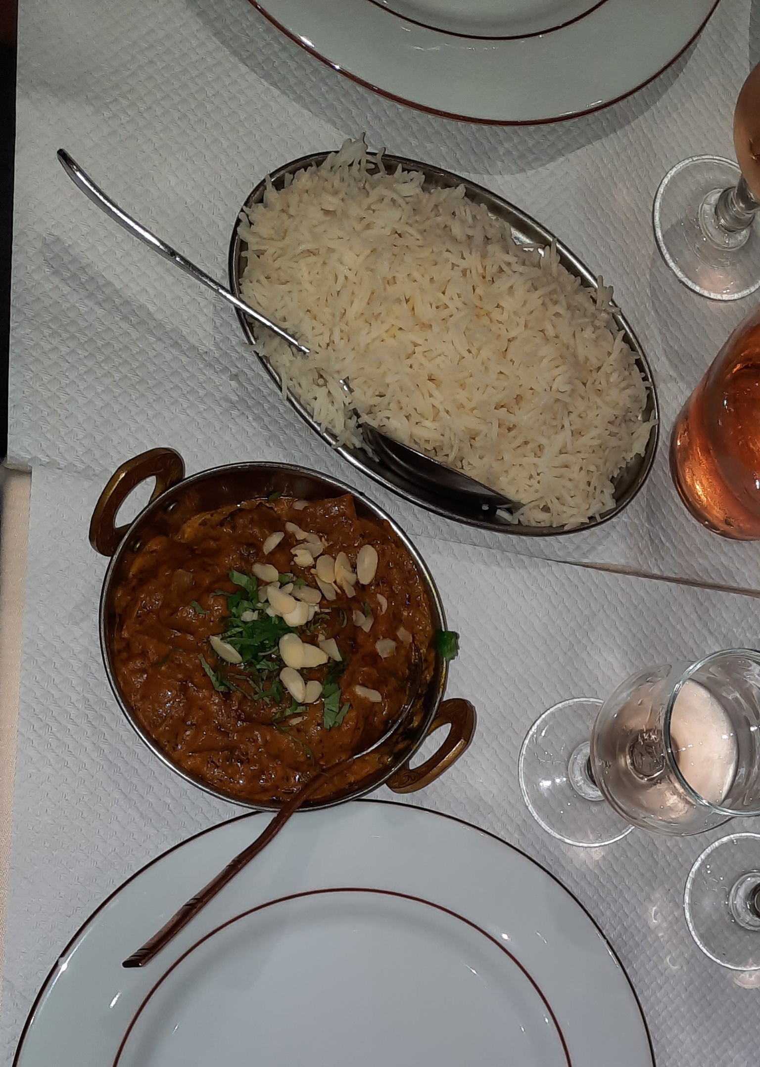 Nous avons re-découvert ce petit restaurant après quelques années. Nous n'avons pas été déçus. Nous sommes arrivés sans réservation, pas de soucis, une petite table nous attendait.... L'agneau vindaloo et le poulet tikka massala étaient bon, le naan au fromage servi bien chaud également ! La patronne indienne était sympathique et le service rapide. Nous avons passé un bon moment. Une ambiance un peu plus tamisée et un guéridon, et tout aurait été parfait. Nous reviendrons sûrement 🙂