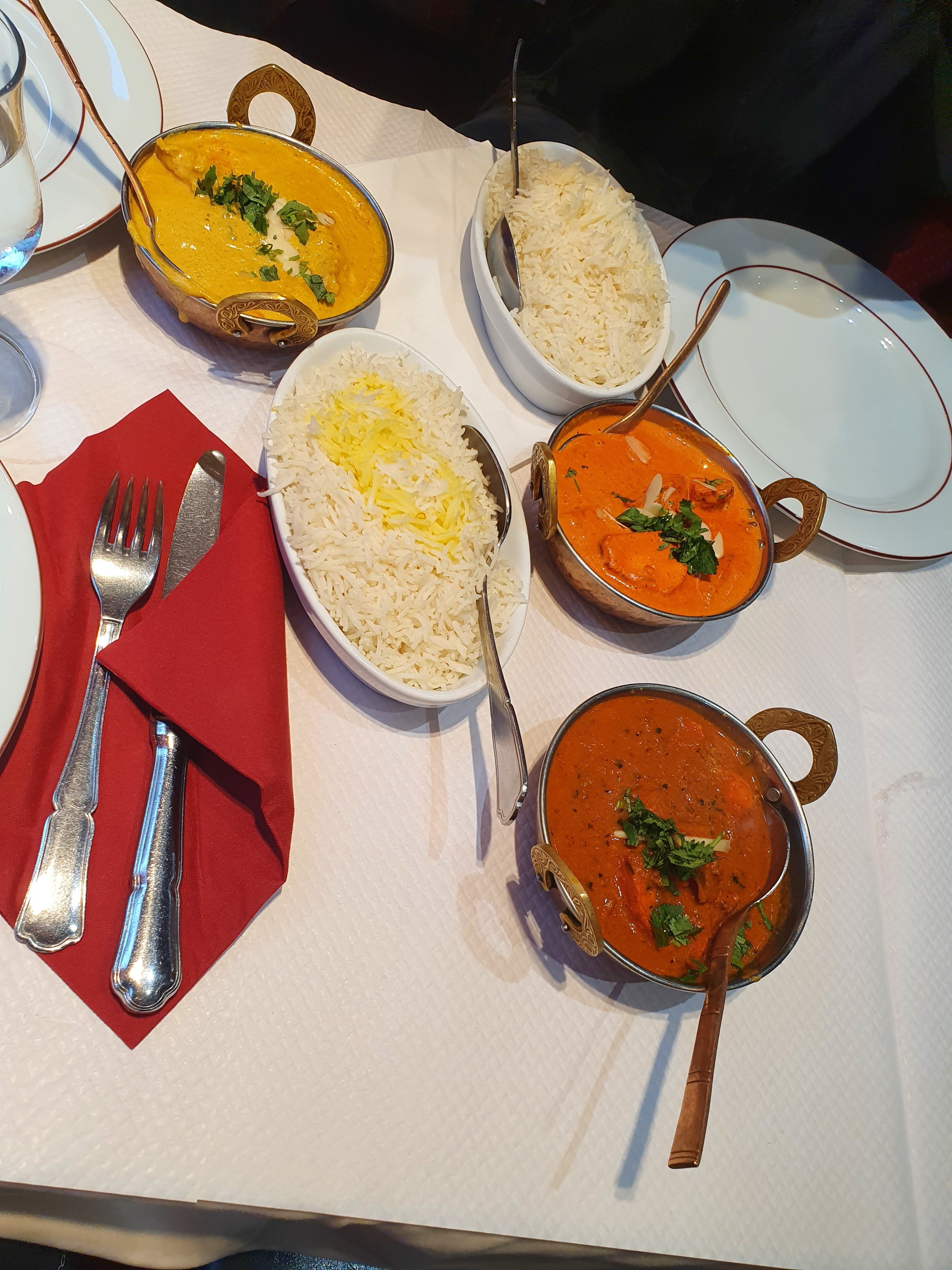 Dîner en amoureux le 8/04 au soir. Nous nous sommes régalés ! Curry d'agneau, de crevettes, dal de lentilles, champignons, riz au safran et nan. Nous avons bu de l'eau pétillante. Le personnel est très agréable. Le tout pour 53€ . Restaurant à essayer !