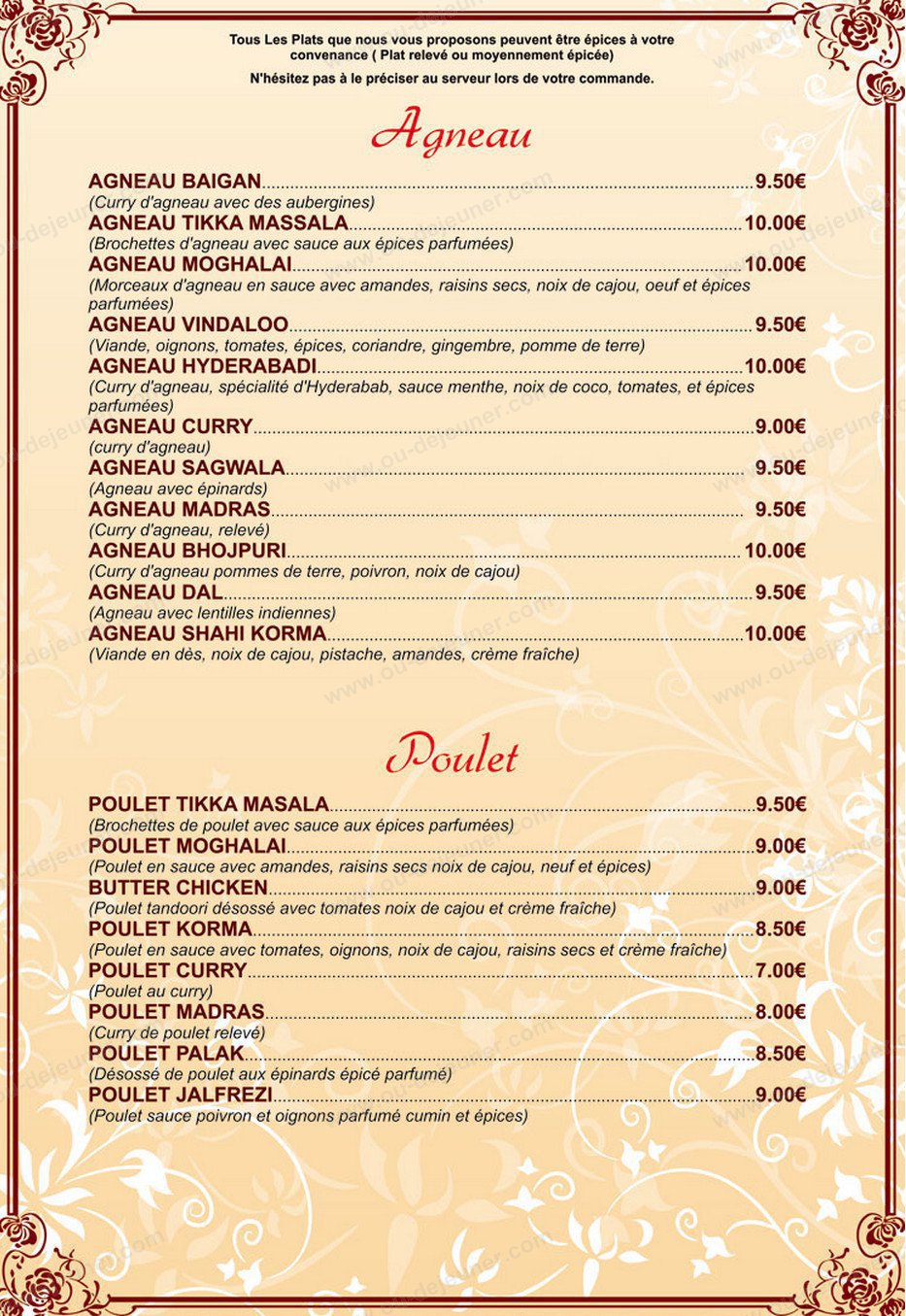 Vaste choix de plats. Équipe très sympathique et soucieuse de faire découvrir la cuisine indienne au mieux. N'hésitez pas à demander des conseils pour commander. Bon rapport qualité-prix