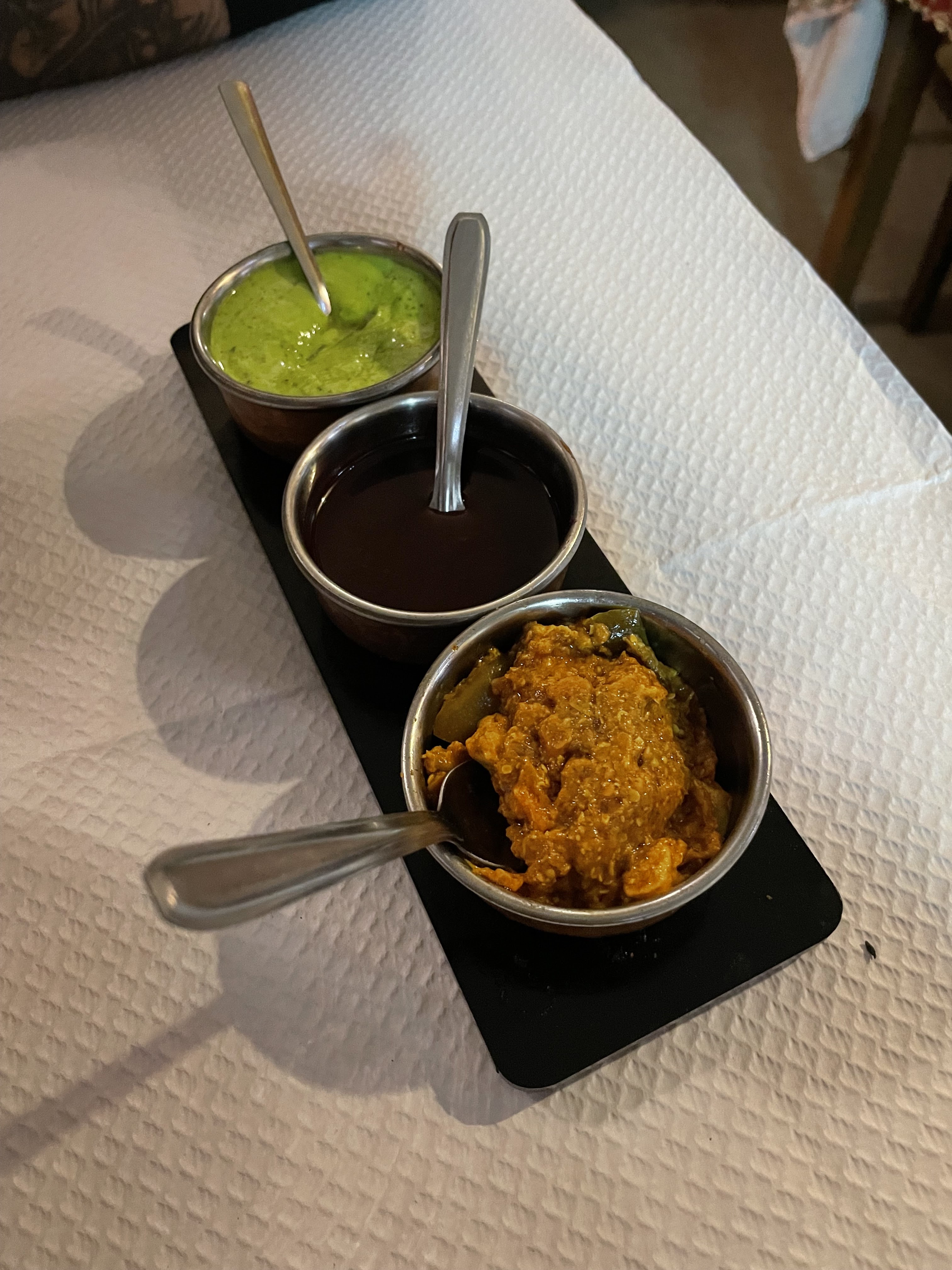 Petit restaurant accueillant, avec une serveuse à l'écoute et de bon conseil. De très bon plats. Les lassis sont très bon (4,5/5). Les 3 sauces sont moins à mon goût mais offre tout de même une experience gustative agréable. Un 4 🌟 /5 pour ce très bon restaurant indien : la 5ème 🌟 étant réservé à l'excellence d'une précédente expérience.
