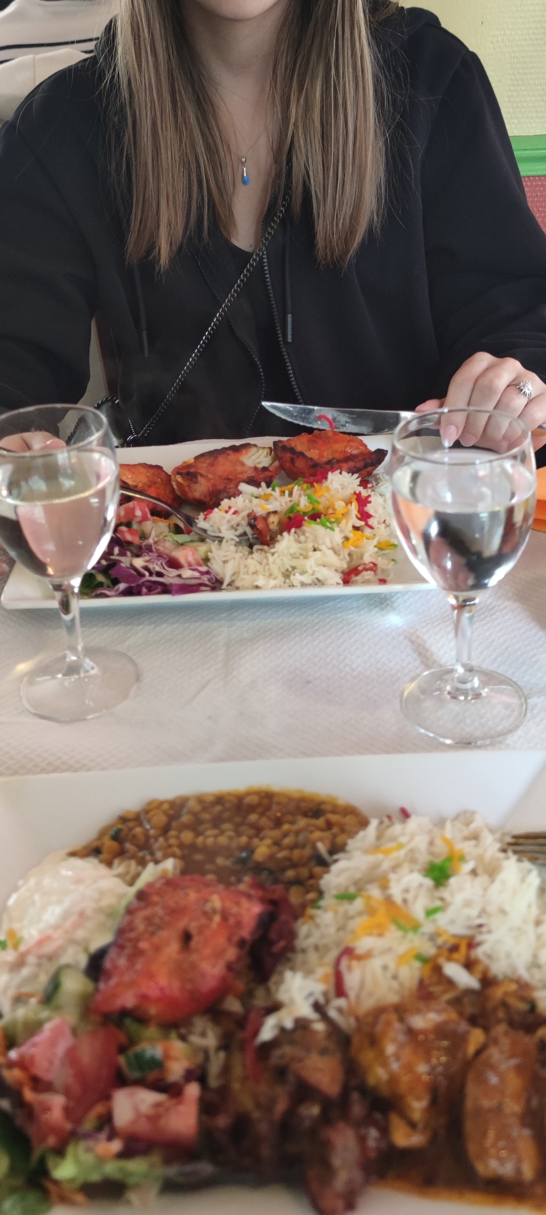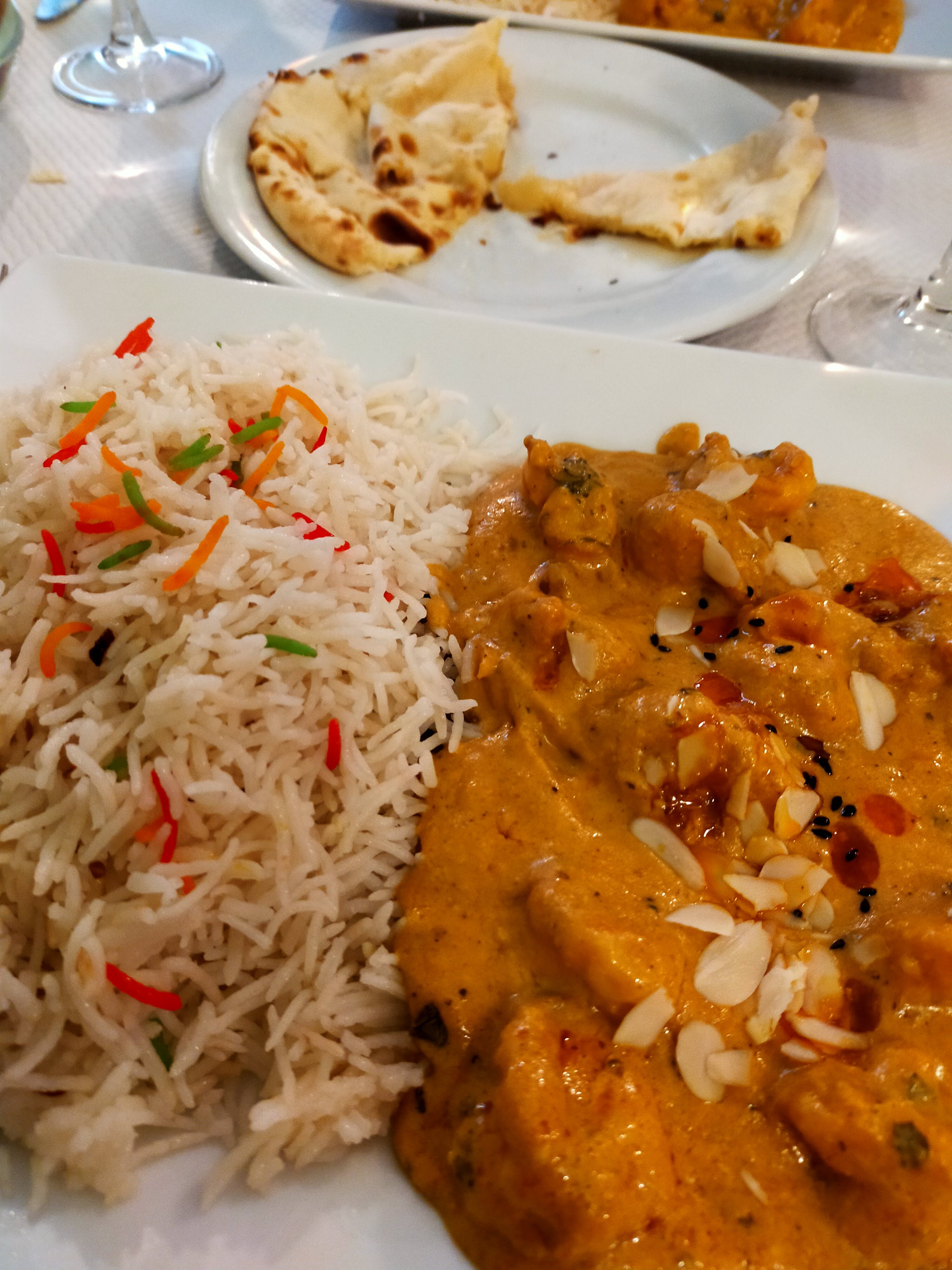 Très bon resto, bien mangé pour pas cher 2 naan au fromage 1 cabillaud au curry 1 agneau au korma (noix de cajou, crème, épices) Très bonnes portions ! 36€ le tout donc 18€ / personne Au top 👌🏻🔥🍛