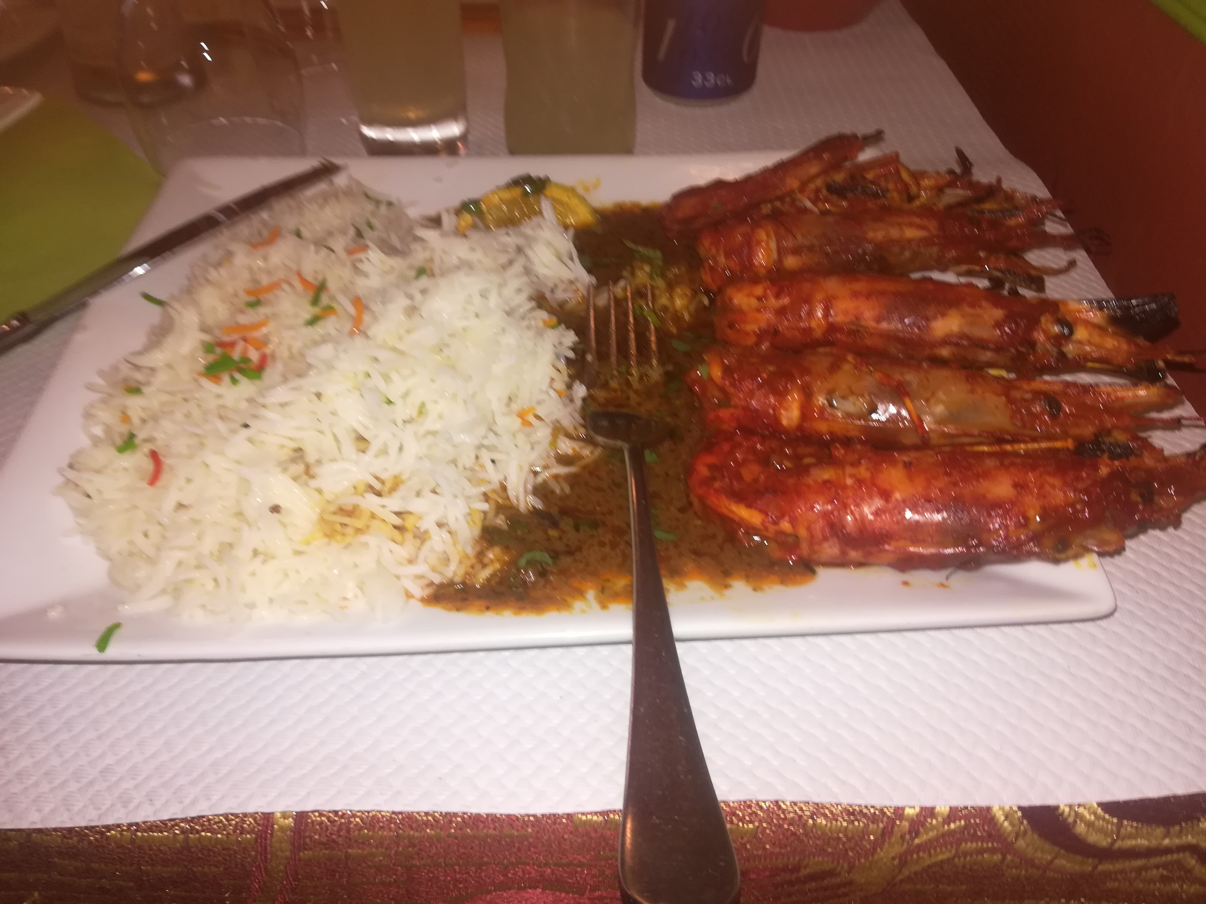 Un passage dans ce resto pour ma part je ne le suggère en aucun cas vraiment déçu gambas curry et cheese nan vraiment impossible de manger ces genres de plats .Je comprends pas les gens qui donne des 4 a 5 étoiles. A vrai dire je penses que vous n'avez jamais manger un dans un bon resto indien . Très déçu aucune étoile pour moi avis 0 pointer .