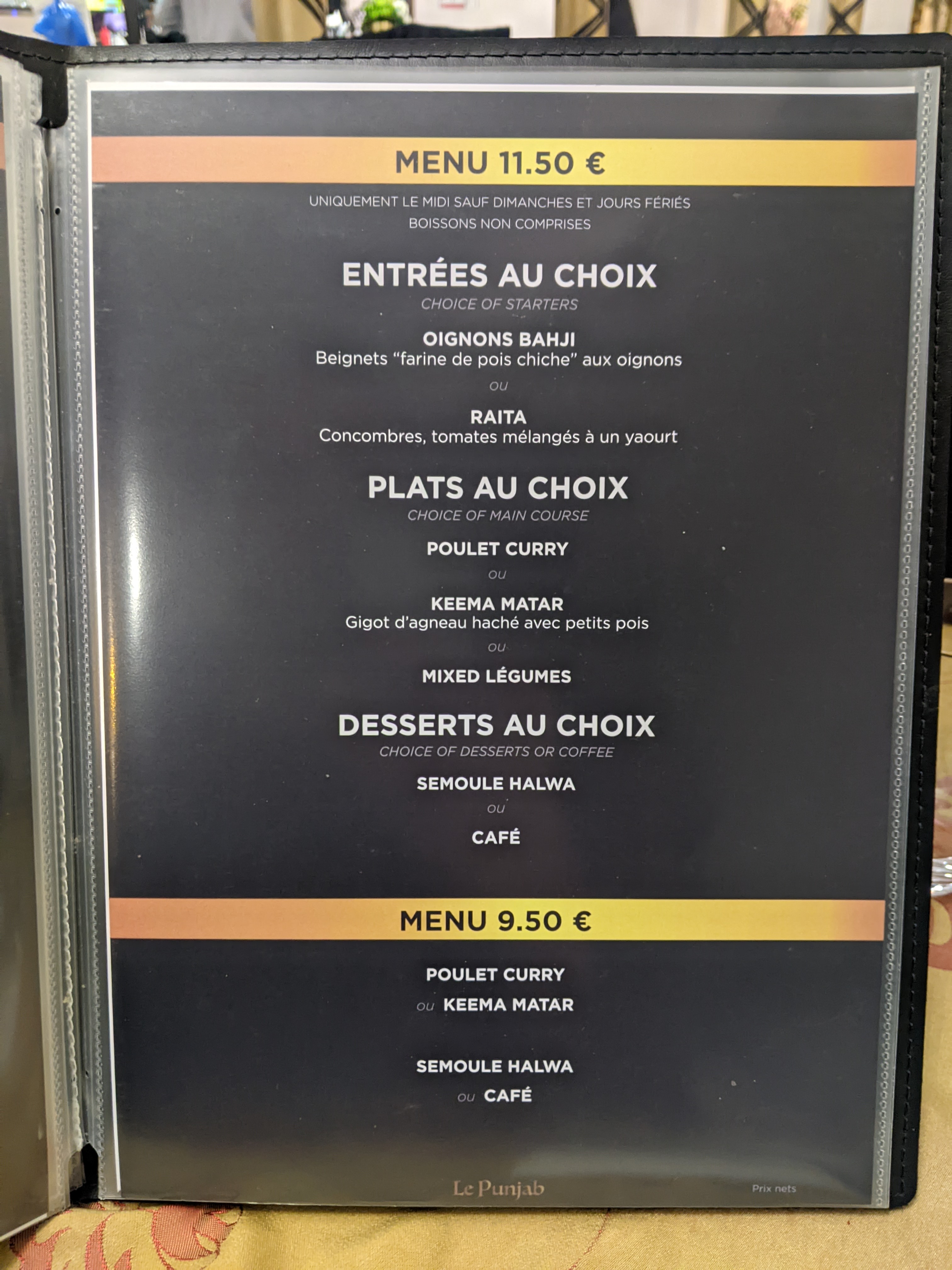 Magnifique découverte ! Nous nous sommes régalés! Les plats sont généreux , super rapport qualité prix (11,50 € le plat poulet kashmiri, pour 2 personnes en se faisant plaisir: nans, lassi, dessert, on en a eu pour 40€ . Je vous le recommande vivement! Encore Merci, j ai déjà hâte d'y retourner.