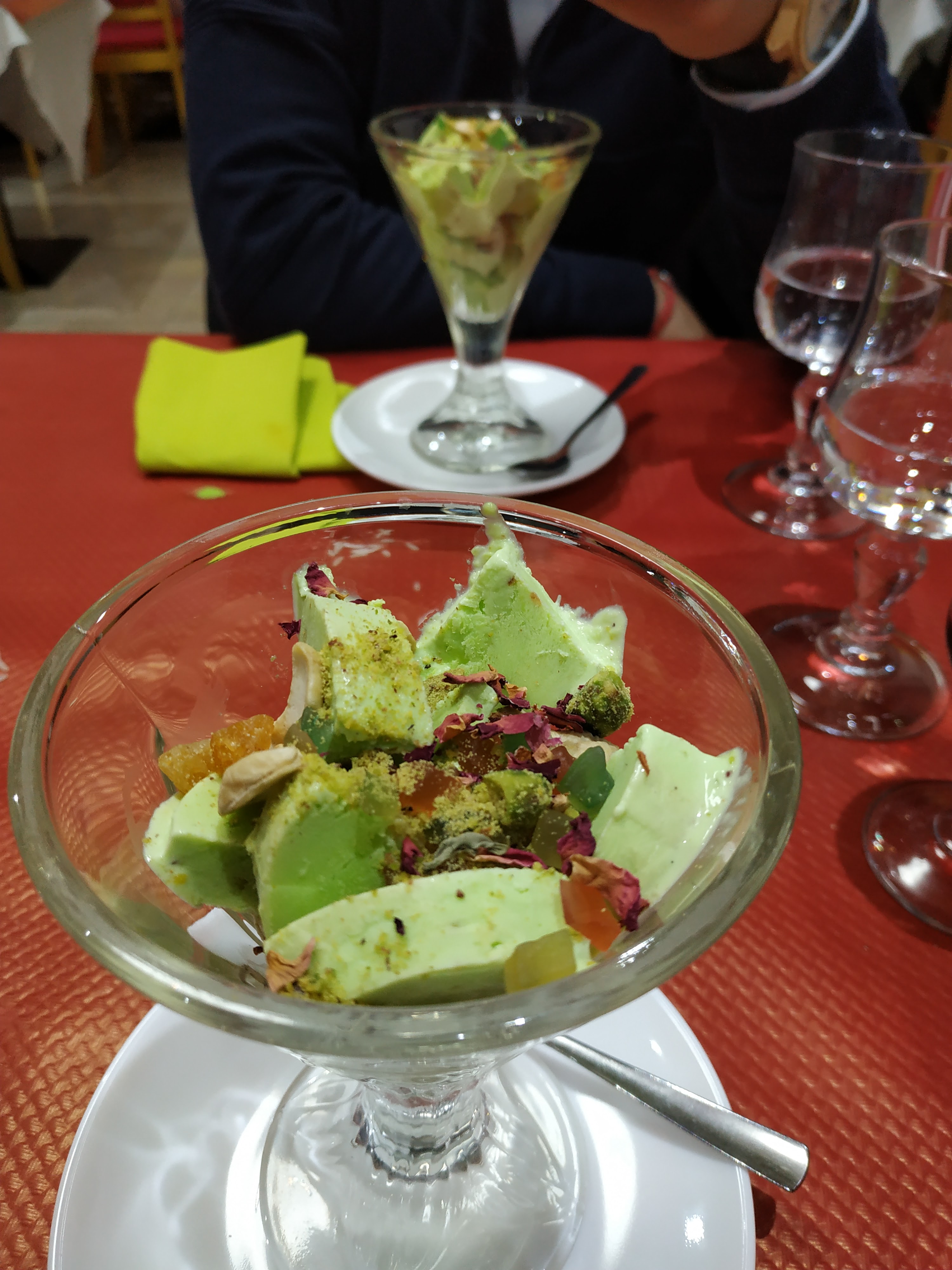 Bonjour nous sommes désolés pour vous, le sheek kebab est un peu épicée mais notre serveur le précise bien et si vous mangez quasiment pas épicé, il fallait choisir un plat sans épices Concernant le dessert on sert la même quantité à tout le monde et je suis quand même désolé pour cette expérience. Cordialement Le Punjab Grill