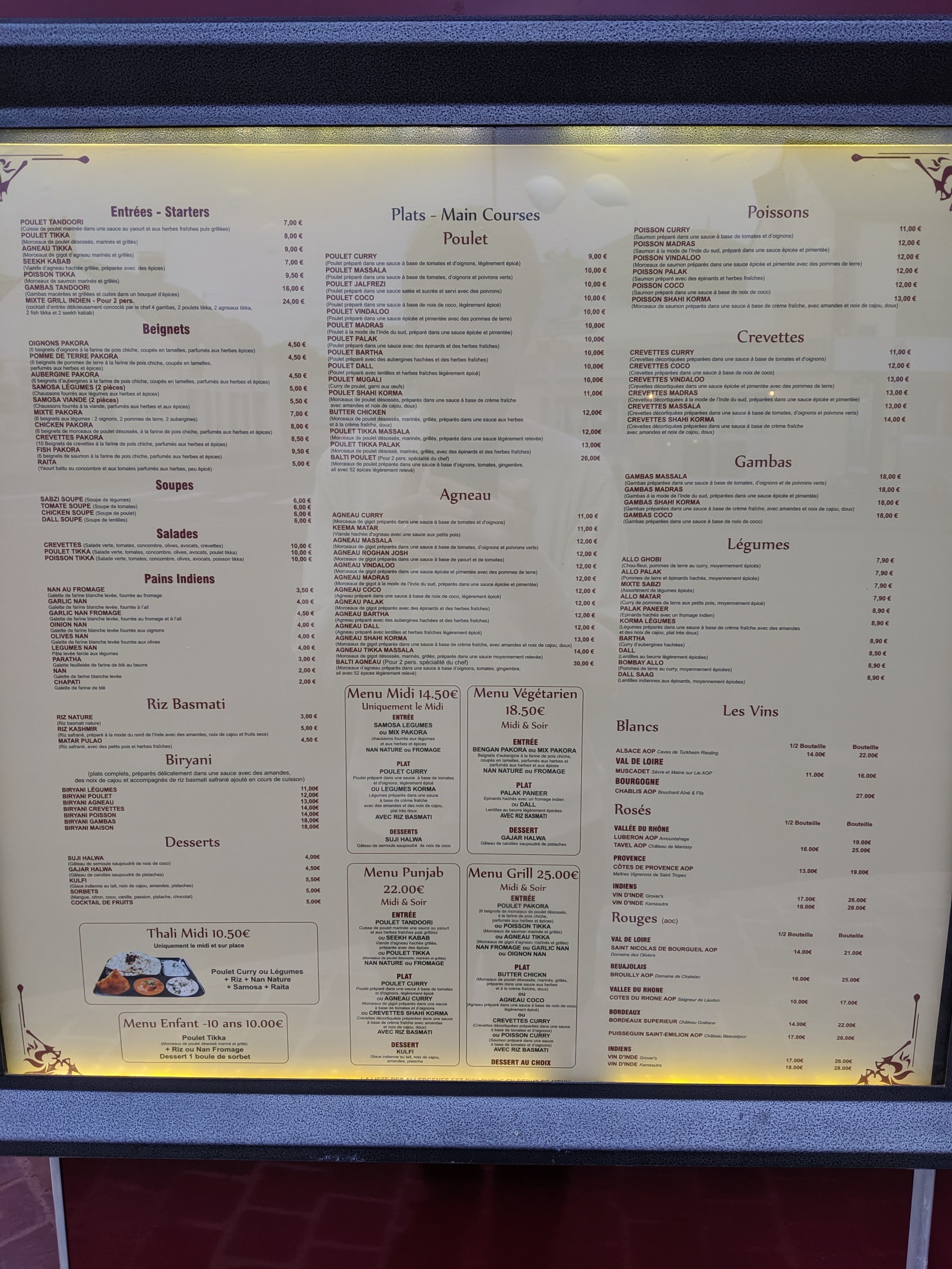 De passage à Châteaudun notre choix s'est porté sur le Punjab; très bonne surprise. Cadre agréable, lumineux et très propre, climatisation discrète et musique d'ambiance typique juste au bon niveau. Carte indienne classique sans surprise mais bien réalisée et goûteuse. Service efficace et bon rapport qualité/ prix. Nous recommandons