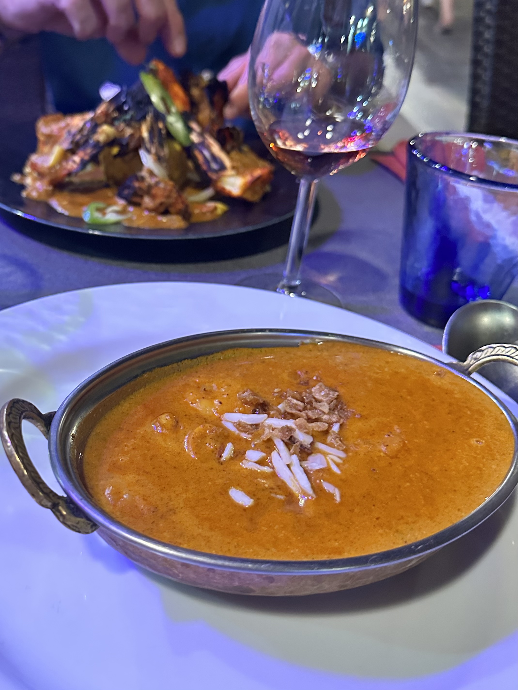 Des plats savoureux, naans très bonnes. Pas d'entrée proposée mais on s'en passe car les plats sont bien servis... et il y a de l'alcool !!! Serveur très sympathique et avenant, décoration sublime... Dépaysement garanti !