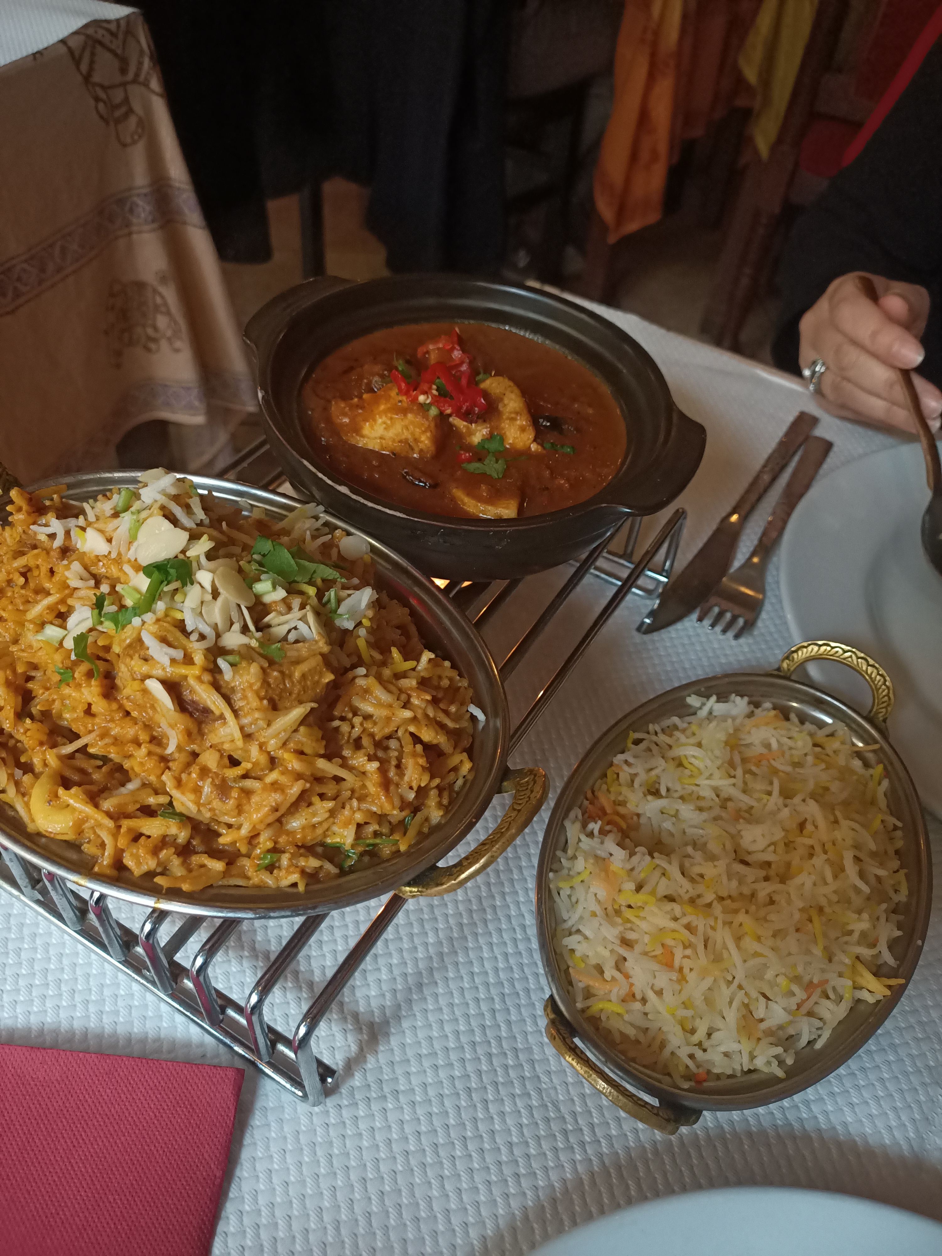 Ce trouvant dans le secteur et voyant les avis positif sur ce restaurant nous avons décidé de tester cette adresse. Le personnel très agréable et professionnel. Les plats nous avons pris les menus à 22 euros bons et copieux. En entrée j avais pris la soupe dahl de lentille très bonne. Les naans sont bons je préfère le naan cheese mais ce n est que personnel. Après en plat principal j'ai pris les aubergines avec le riz au safran. Rien à dire. Ma belle mère avait pris elle aussi ce plat mais à moins aimé. Les desserts sont était bons c'était sympas de découvrir de nouvelles choses. Je recommande si vous avez envi de passer un moment agréable avec de bons plats et un personnel au top.