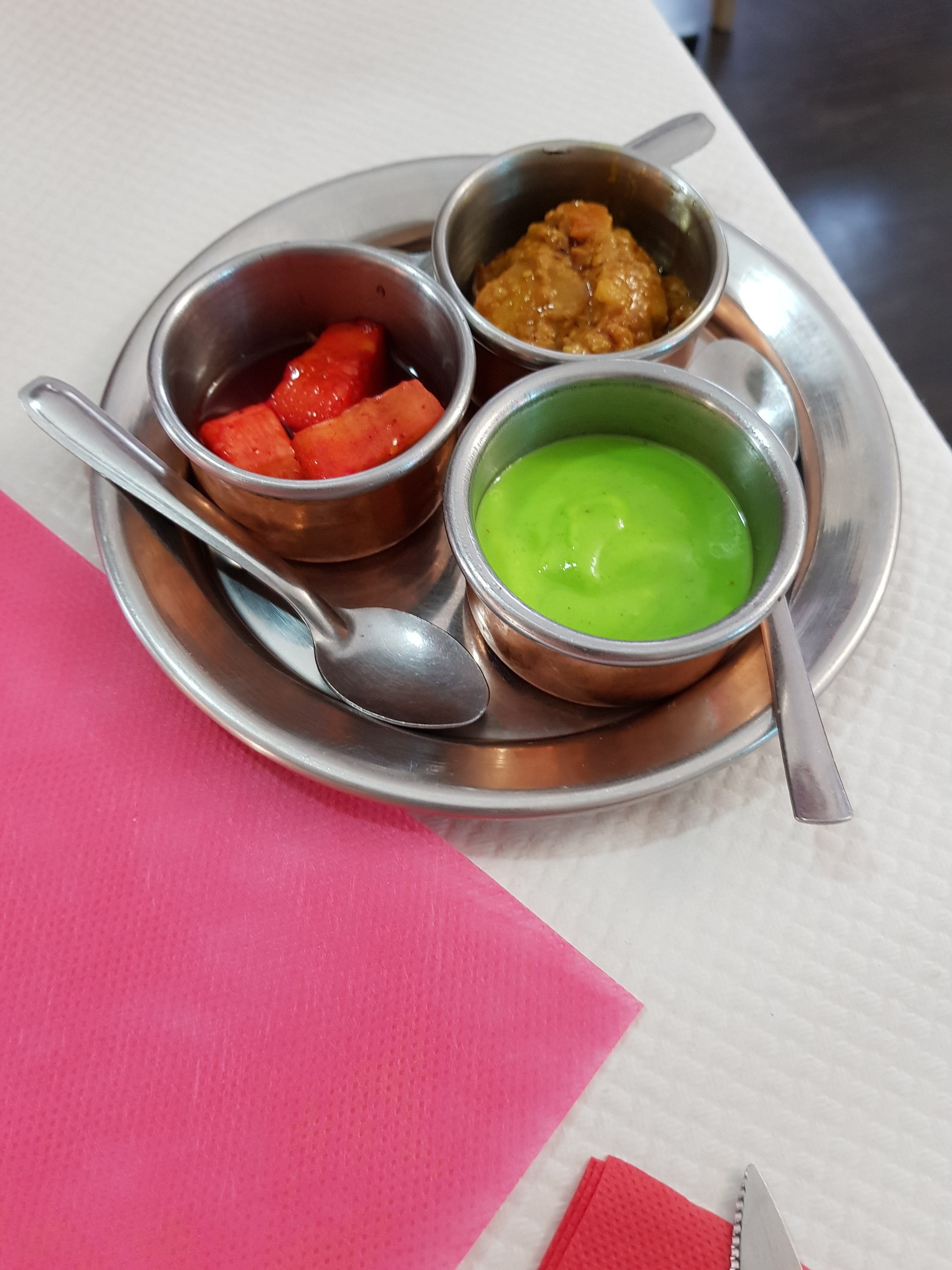 Une belle expérience gustative Indienne et pakistanaise ! 🙂 Une commande sur ubereats ( dommage que l’on ne puisse pas mettre un avis directement sur le site du restaurant) …. Menu végétariens : beignets d’aubergines très goûteux, épinards au fromage … une tuerie !!! … et un peu de fraîcheur avec une salade de fruits ….et le tout avec des épices indiennes … un vrai voyage gustatif 🙂 Merci