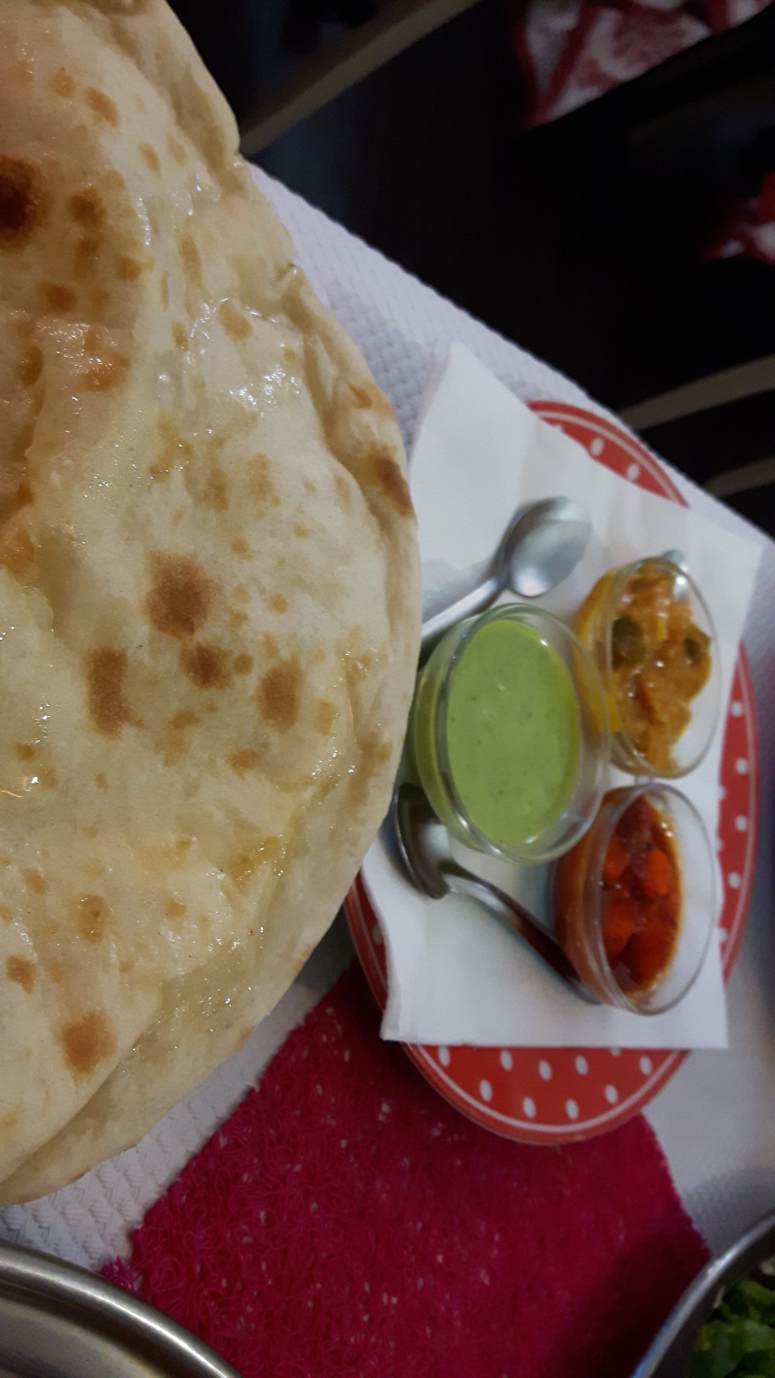 Nous voulions voyager avec les saveurs que nous connaissions de l’Inde. Quelle déception 😞 Nous nous sommes basés sur les avis positifs mais je ne sais pas où ils ont trouvés les 5 étoiles. Nous sommes typiquement pas du tout dans la gastronomie indienne mais dans des plats sans saveurs. Mais à part la crème et les oignons…. Ou sont les épices ? 1 étoile pour les naan !! Nous ne commanderons plus. Désolé 😣