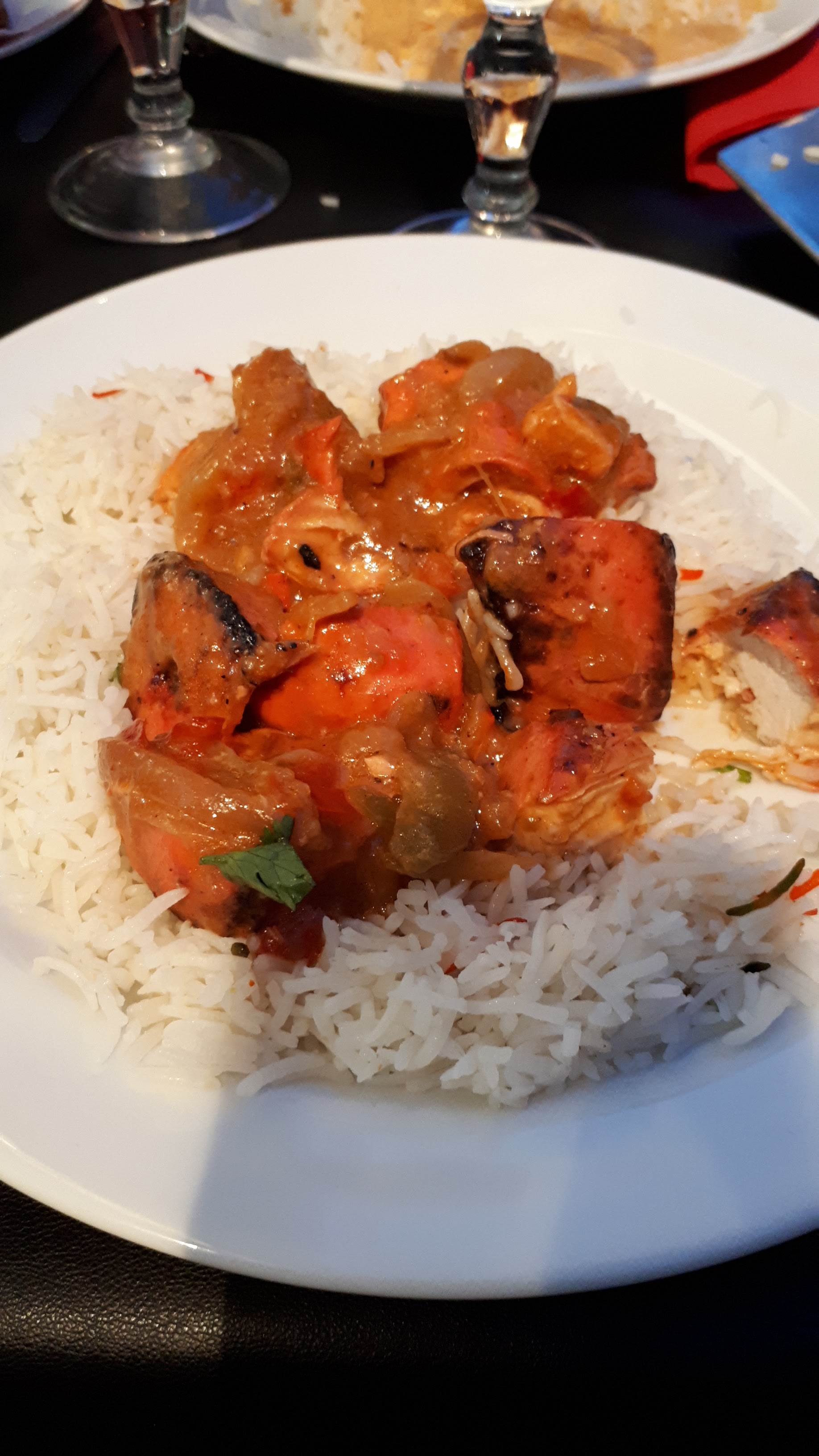 Je ne renouvellerait pas l’expérience. Le poulet tikka massala aurait dut s’appeler soupe tikka massala dans la mesure ou il ne contenait pas de poulet (j'insiste non pas ''pas suffisamment'' mais ZERO poulet) . Et alors que j'avais bien insisté sur le fait que les gambas du mixte grill devaient être emballé dans un compartiment séparé (en précisant bien qu’étant mortellement allergique aux crustacés je ne pouvais pas prendre le risque qu'il y ai du jus de gambas sur toute les grillades) elle on été emballé avec le reste et mon ami et moi avons du échanger de menu.