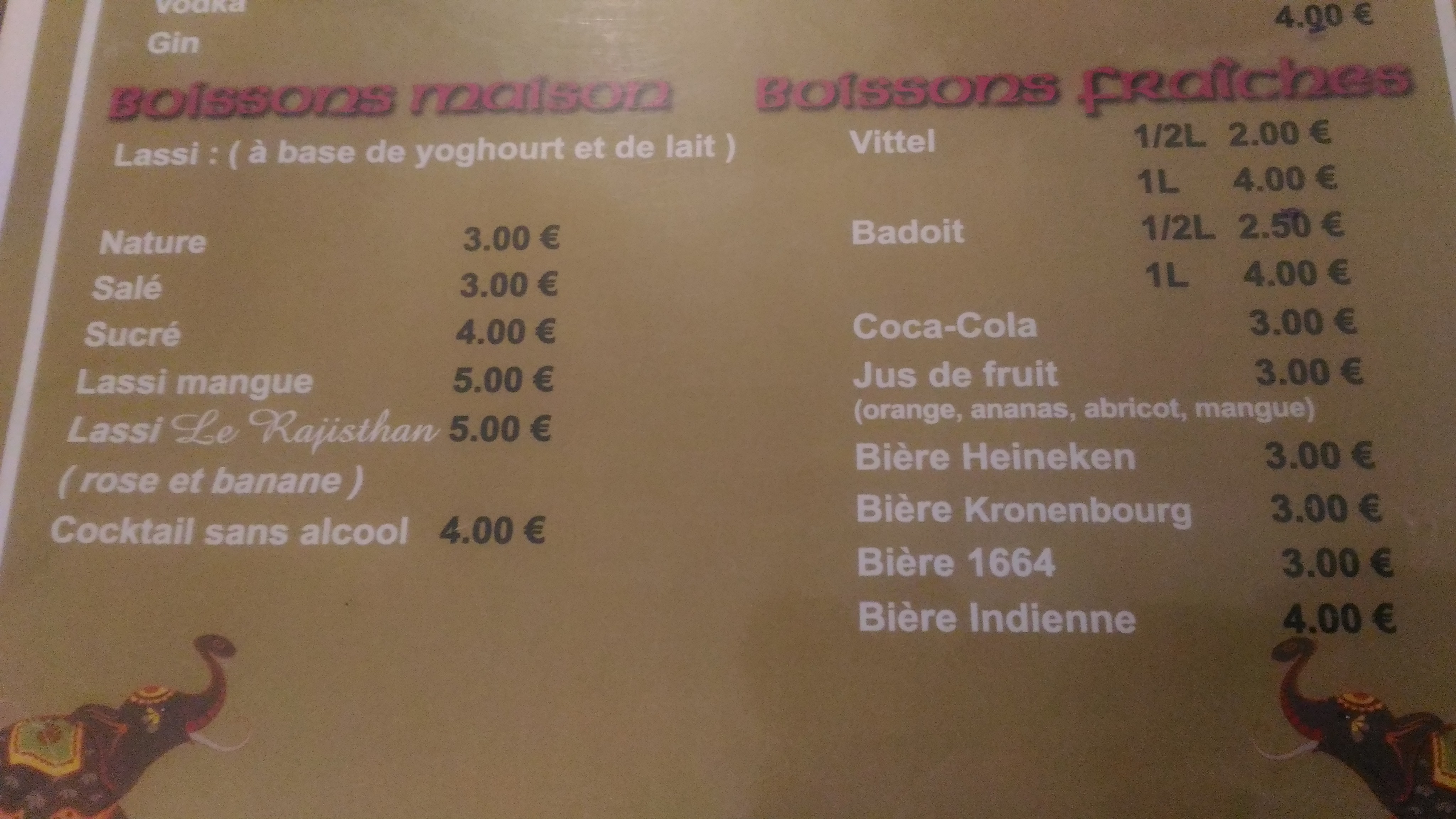 Le Rajisthan à Orléans, on y mange bien pour un tarif vraiment pas excessif. Pour exemple, le menu végétarien est à 12€ : entrée, plat et dessert, accompagné d'un cheese nan, qu'il est d'ailleurs possible de prendre en nature si on souhaite rester dans un menu totalement végétalien. À noter tout de même que le vin (rouge en tout cas) et le café ne sont pas vraiment leur fort. Par contre, les poids chiche avec le riz Basmati, sont vraiment très bons.