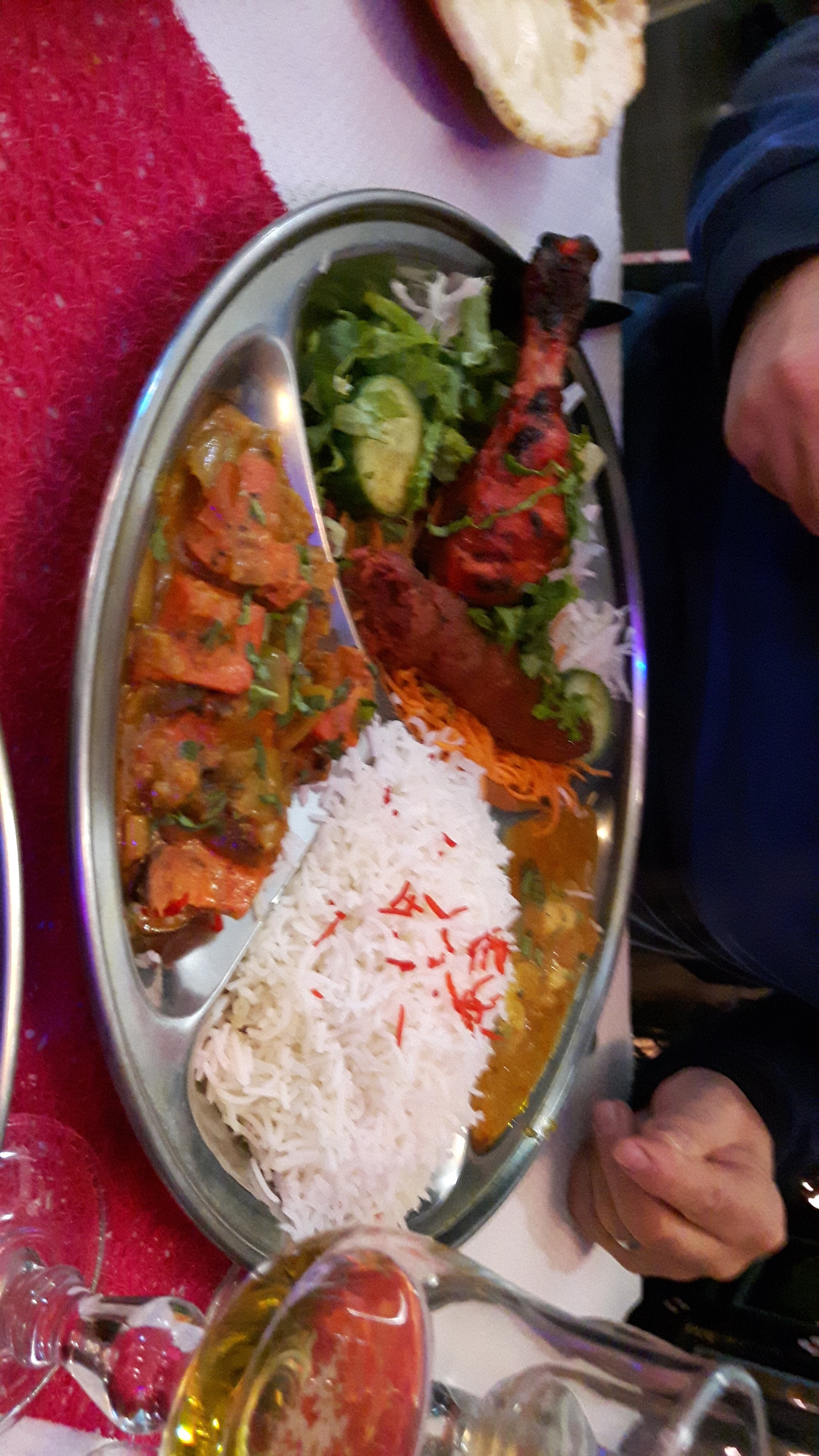 Un très bon restaurant. Je vous recommande absolument. Un menu de 13 euros vraiment très consistant. Je vous recommande leur poulet tandoori. Un vrai régale. Je reviendrai certainement pour ça. Il y du pain au beurre en entrée. C'est vraiment très bon aussi. Et ce que j'aime le plus c'est la boisson Lassi. Je l'adore vraiment beaucoup. Un excellent service. Je vous recommande.