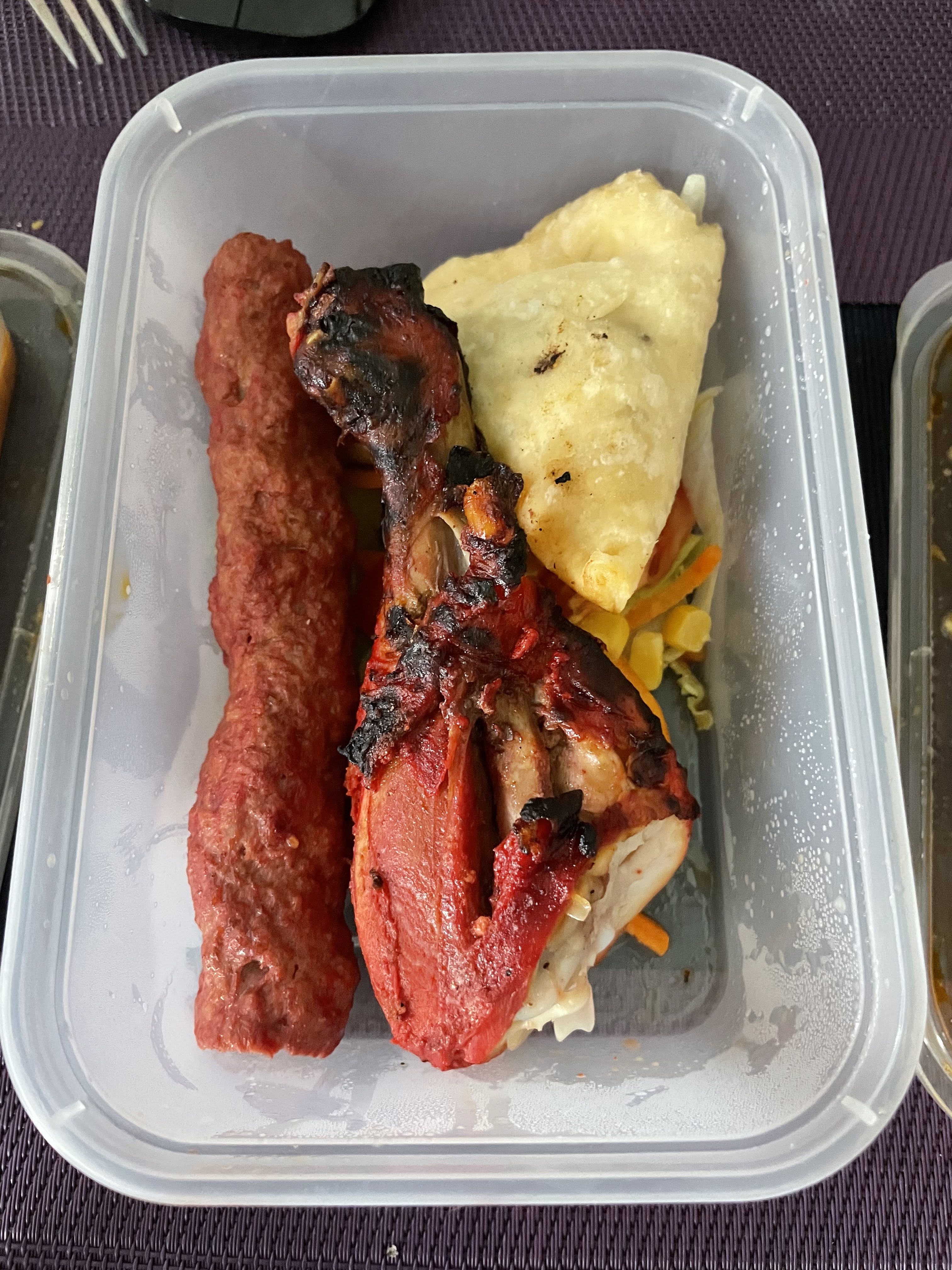 Commande en livraison. Prévue à 19:15 arrivée à 19:35…. Quelle grande surprise j’ai eu en ouvrant les boîtes ! Je me suis retrouvée avec toutes les entrées dans une même boîte mélangeant ainsi les saveurs. La soit disant aile de poulet tandori qui au final est une cuisse... Le sheekh kabab qui a un aspect et un goût miteux. Quatre morceaux de poulet curry baignant dans une sauce sans goût. J’avais précisé des allergies aux fruits à coques et fruits rouges qui n’a pas été pris en compte dans le dessert. Le seul point positif était le riz. Je déconseille fortement ce restaurant et ne commande plus là bas c’est certain !