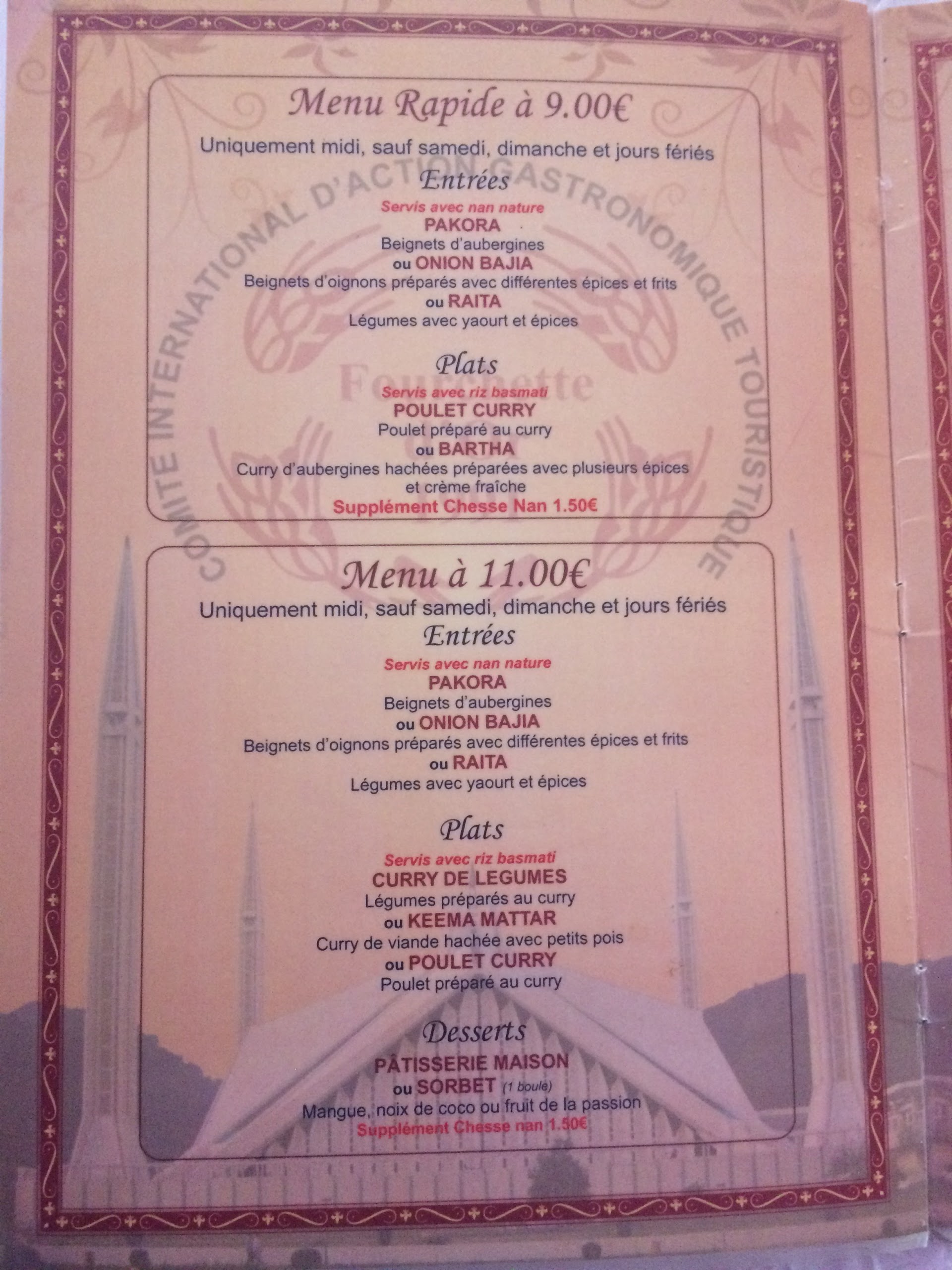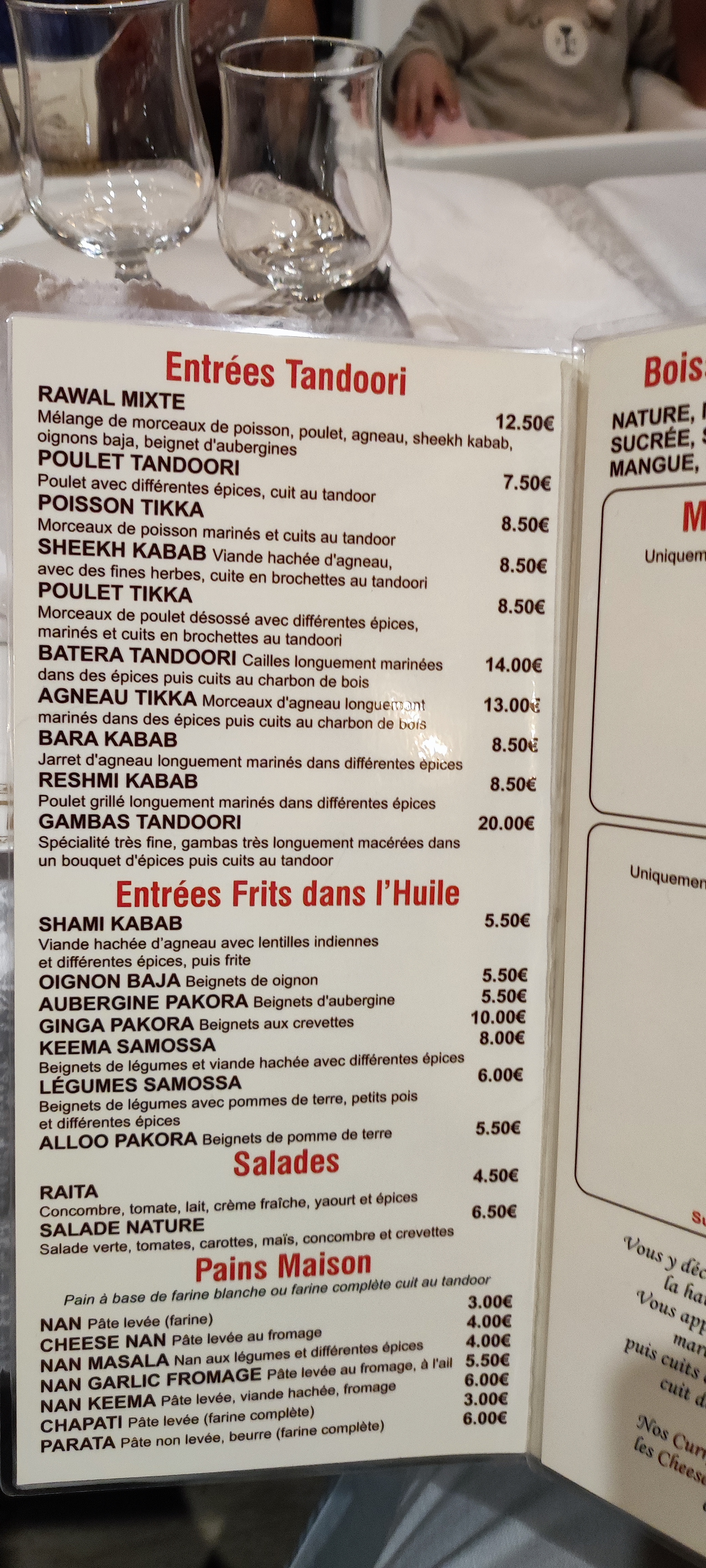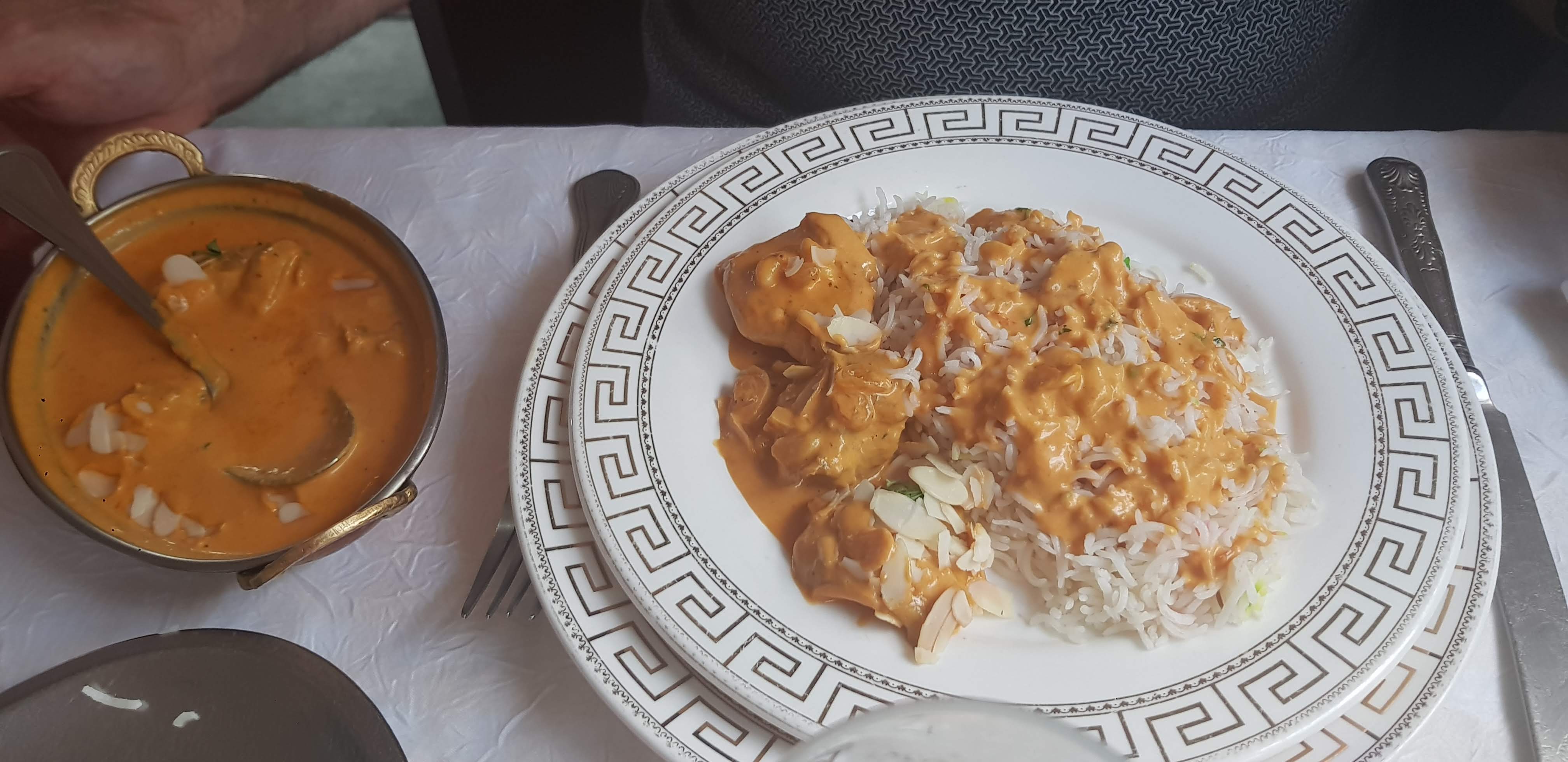 Très bon restaurant, service très bien, nous venons de manger 4 portions d'oignons rings en entrée et 4 poulet curry dans le menu midi à 9€ c'est très honnête ! 👍🏻Excellent rapport qualité/prix. +1,50€ un bon cheese naan 👌🏻un Lassi Mangue excellent, je recommande ! Merci ! La prochaine fois on prend à emporter إن شاء الله