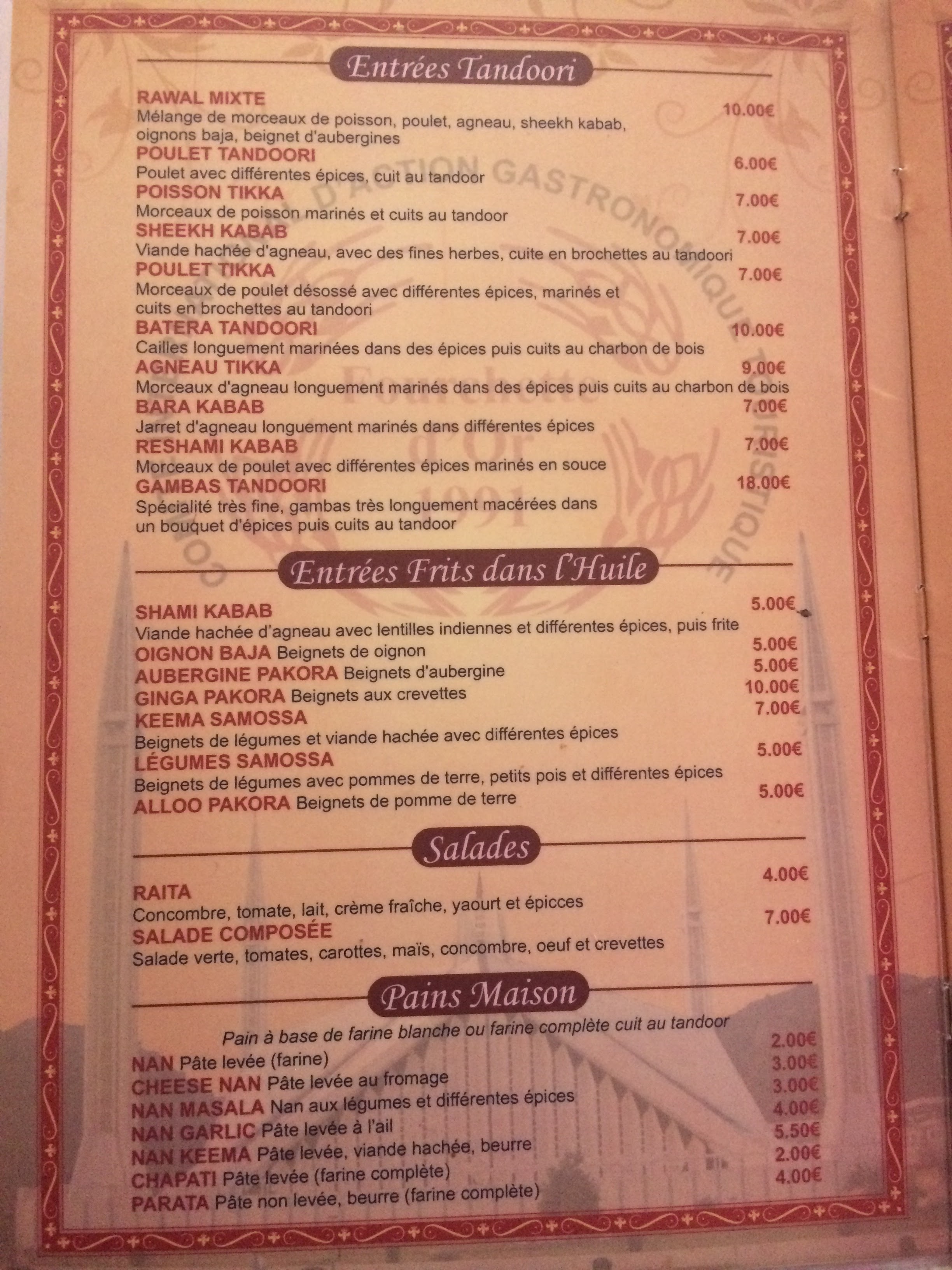 bonjour tout est super, sauf le prix des samoussas à 8 euros 50,mettre à 6 euros 50 ,maxi 7 euros et ce sera 20/20,en tout cas ,Merci!