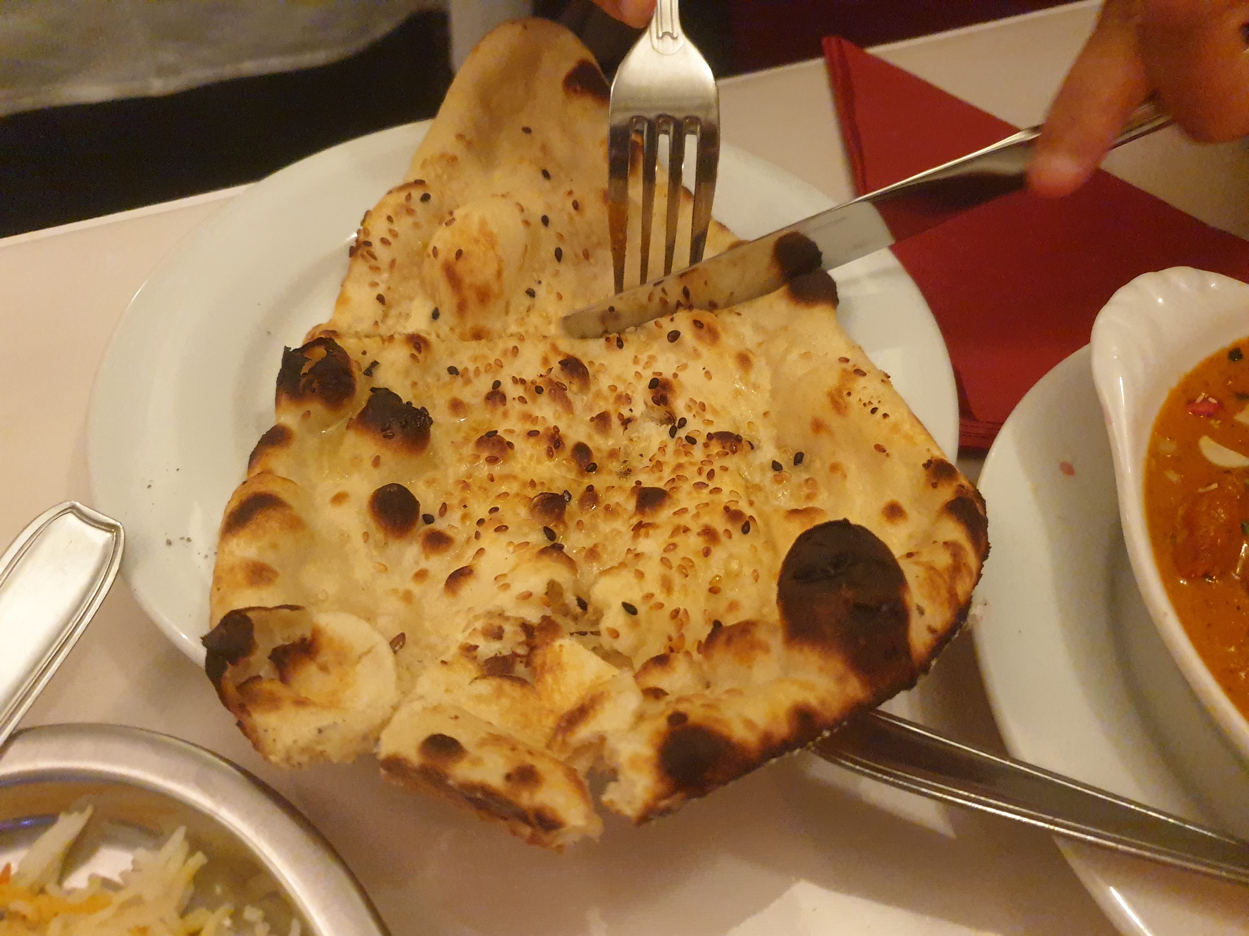 On ne s'attendait pas à trouver le meilleur indien dans une petite ville d'Alsace. La nourriture est un rêve, le pain nan au fromage est un incontournable. Deux chefs indiens authentiques évoquent la délicieuse cuisine avec une rapidité surprenante.