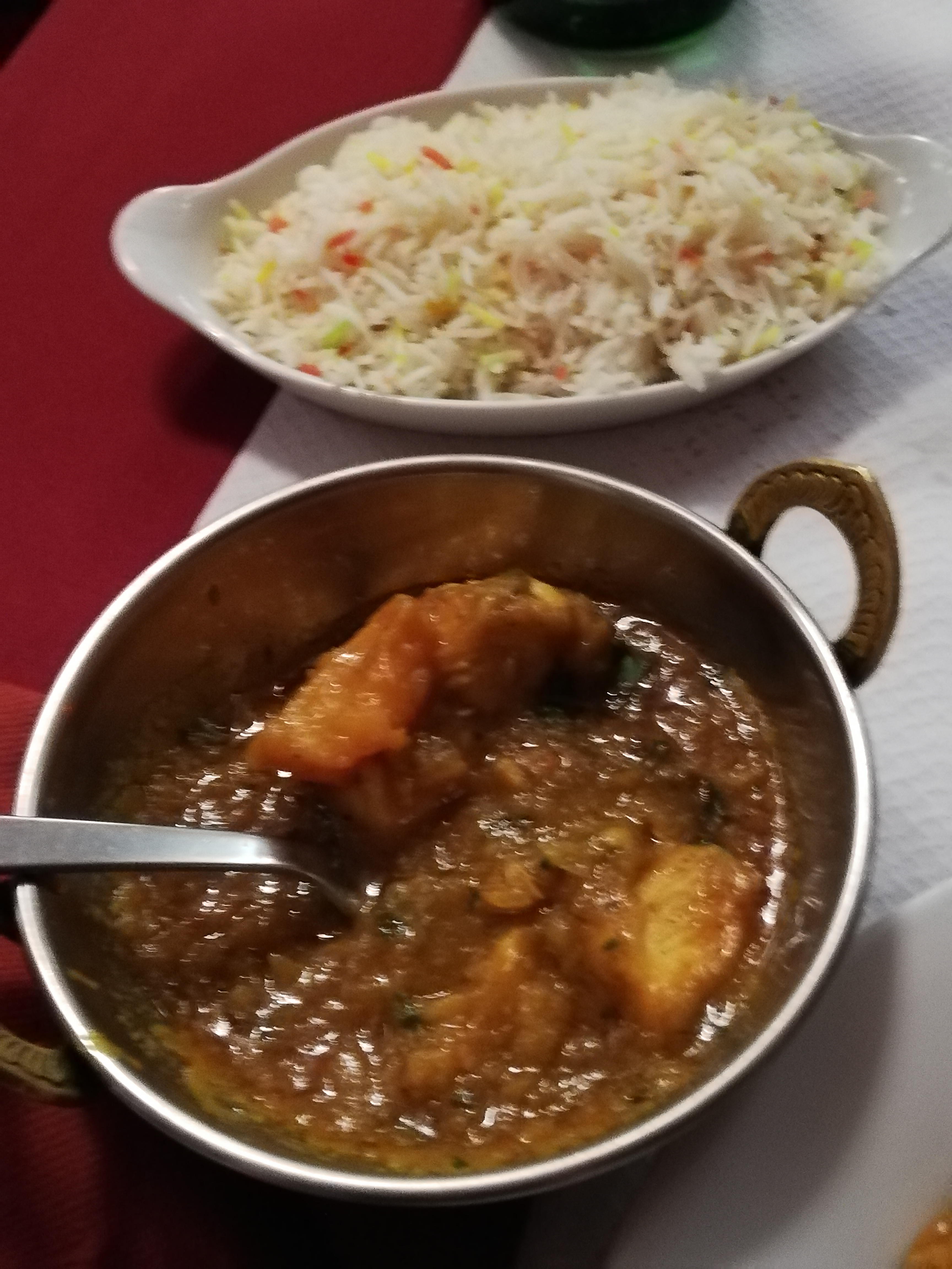 Restaurant exceptionnel....décor Magnifique, décor des milles et une nuit 🙏🙏🙏🙏 une équipe d une gentillesse énorme...et pour finir une cuisine exceptionnelle...je me suis fait exploser le ventre ,tellement c était bon et très copieux...restaurant a faire absolument...personnellement je vais goûter toute la carte ...encore merci à toute votre équipe pour nous avoir fait voyager en Inde avec toutes ces saveurs, épices, couleurs...tout nouveau pour moi 🙏🙏🙏🙏