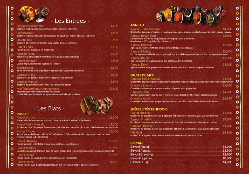 Pas mal le Taj Super découverte ! On s’est bien régalé c’est vraiment bien servi et surtout c’est les prix sont abordables. On ne se sent pas arnaqué 😜 le personnel est discret tout en restant souriant et aux petits soins. Les plats sont vraiment goûteux pleins de saveur. et avec beaucoup de goût ! Je valide à 💯 !