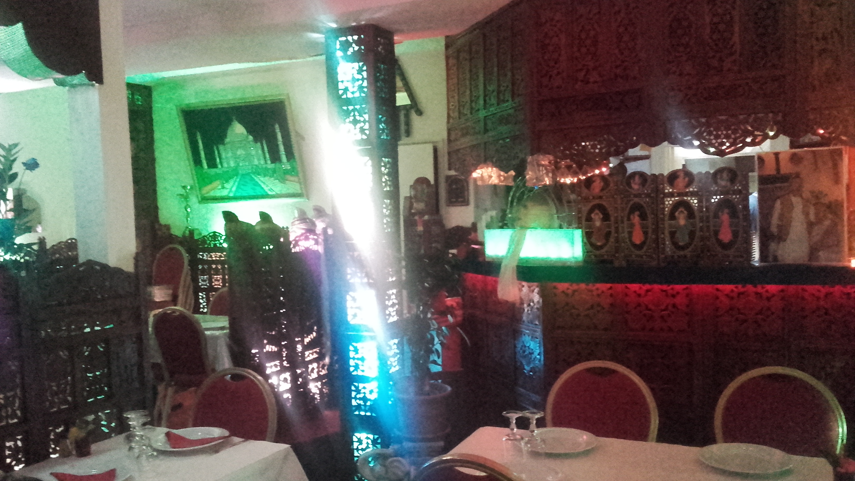 Bon restaurant qui permet de manger des plats qui sortent de l'ordinaire. La déco est sympa mais les lumières multicolores donnent un effet un peu kitch. Le rapidité du service est raisonnable, non n'avons pas attendu longtemps. Les prix sont correctes à l'exception des desserts qui font chers pour la quantité reçue (6€ quand même). Concernant la cuisine, elle est délicieuse. Nous avons prix du poulet tikka, des samosas, du poulet tikka masala ainsi que les crevettes. Je pense malheureusement que les crevettes sont surgelés de part leur texture en bouche et c'est bien dommage. Point important qui m'a déçu : Dans nos cocktails Taj Mahal, nous avons trouvés plusieurs poils qui étaient collés sur les bords de nos verres trempés dans le sirop. Cela m'a presque coupé l'appétit, c'est bien dommage. Par ailleurs, ce cocktail ne vaut pas le coup, il est bien trop cher et n'a absolument rien d'exceptionnel.