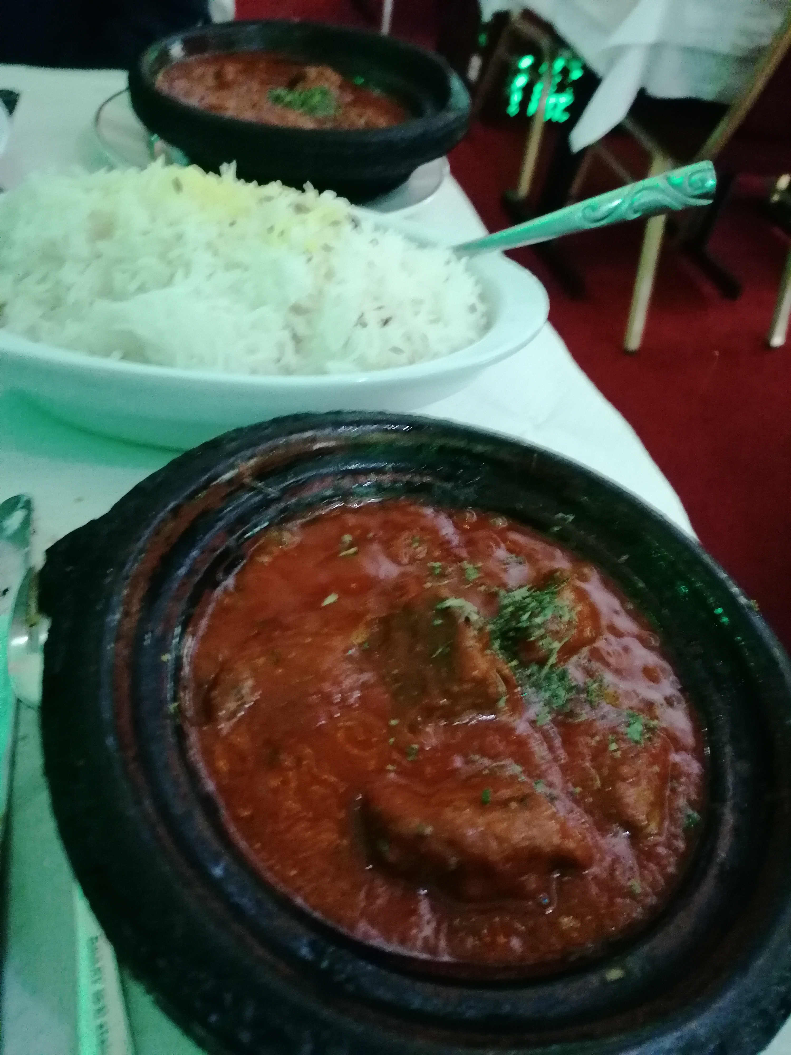 Déçue... trop d'attente. Nous sommes venues vendredi 12 avril en debut de soiree. Rien n'est mis en place par le restaurant pour occuper les clients durant cette attente. Le service est très long ! Les serveurs ont l'air pas motivés, pas souriant....Nous avons pris en plat le riz tikka massala... ne parlons pas de cette pauvre quantité de riz qui suffit même pas pour 2 personnes.. et 3 morceaux de poulet . Bref la sauce était très salée. J'en ai fait part au chef qui n'a même pas su faire un geste. Je n'y retournerai plus.