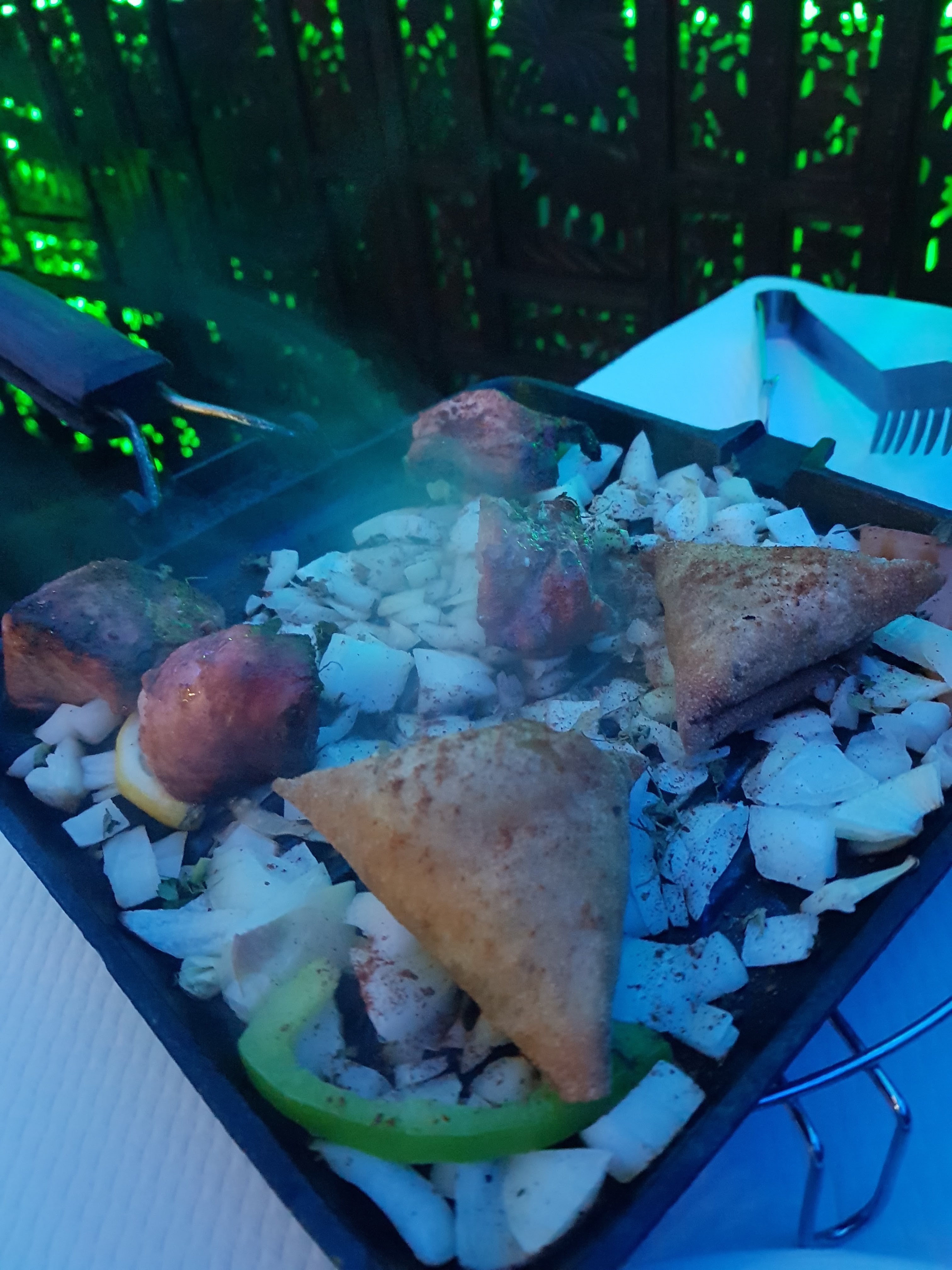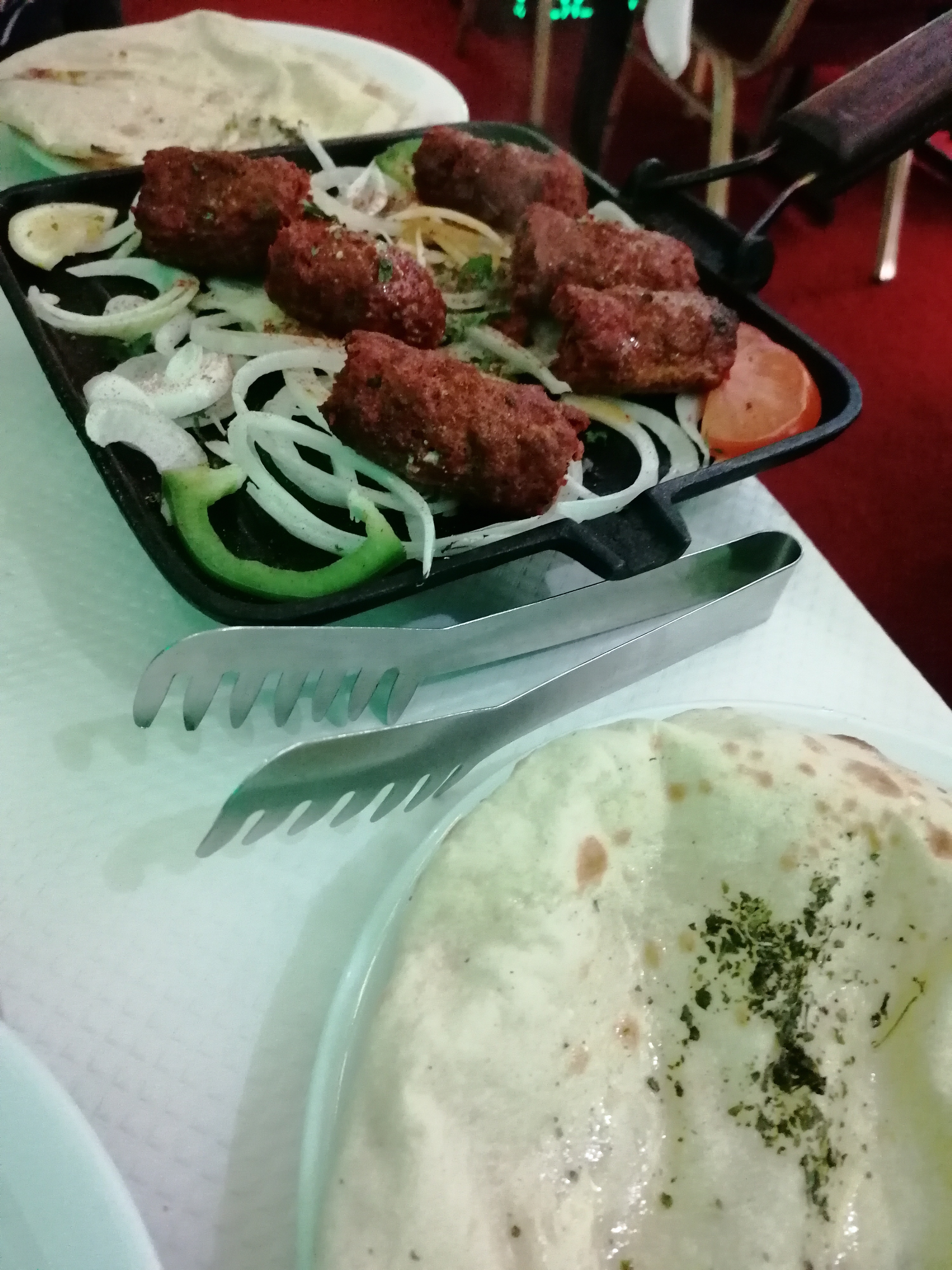 Bonsoir je voulais vous parler du restaurant niveau ambiance c impeccable niveau service aussi mais niveau cuisine j’ai commandé une entrée elle s’appelait sheek kebab j’ai reçu 3 mini merguez et le plat j’ai pris du bœuf j’ai reçu de la loubia et dessert j’ai pris une spécialité j’ai reçu 2 boules de glace j’ai pas compris et aussi niveau prix y nous ont dis que le thé et les boissons étaient gratuites au final ils ont rajouter à l’addition en tout cas désolé les frere mais venez pas là