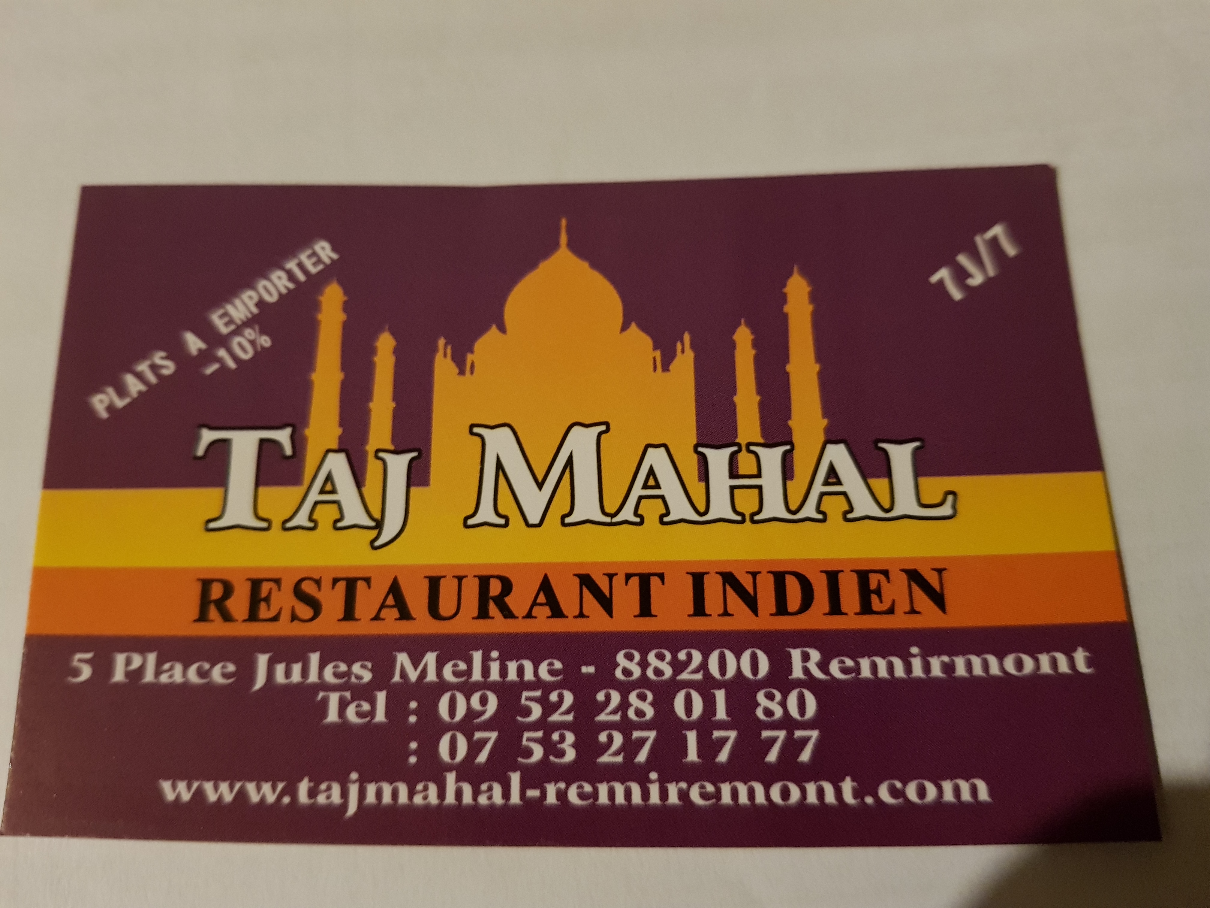 Voici toutes les informations sur le Restaurant indien Le Taj Mahal qui ce trouve au 5 Pl. Jules Méline, 88200 Remiremont (88). Sur cette fiche vous trouverez les photos, l'adresse, les horaires d'ouverture, le numero de téléphone et les avis clients.Vous pouvez églement rédiger un avis si vous le souhaitez en bas de page.