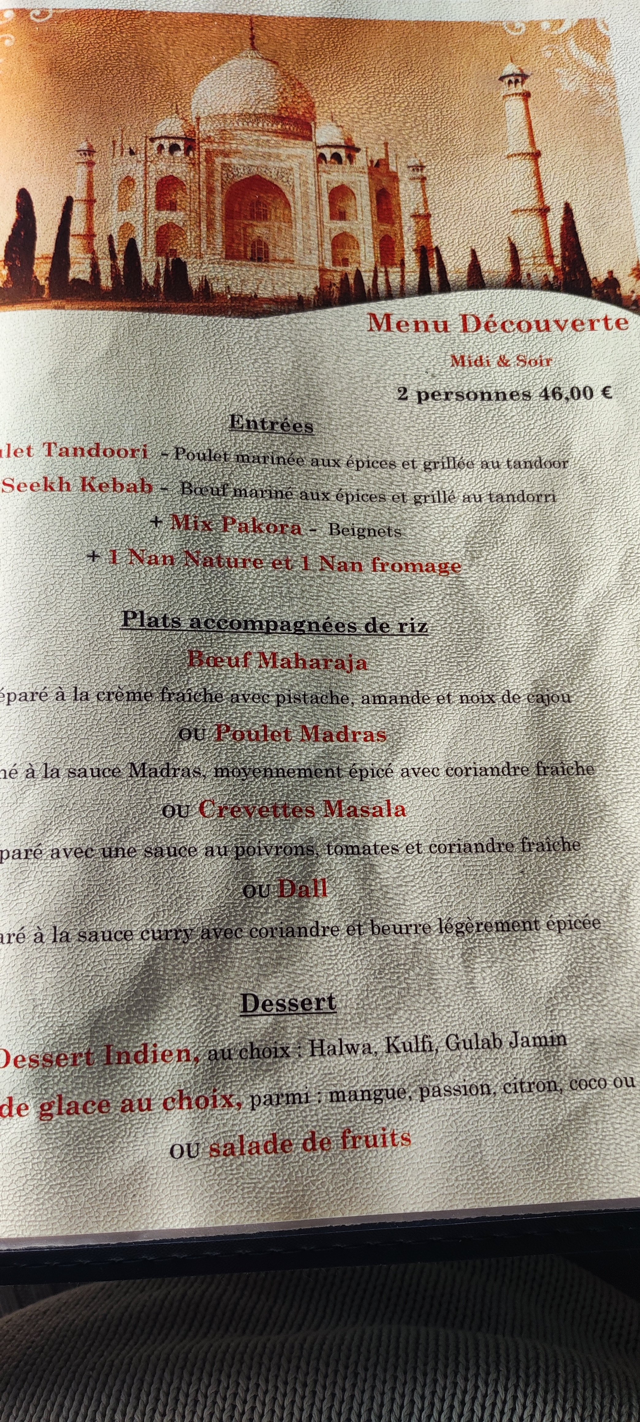 Super restaurant indien. Accueil chaleureux, plats excellents, je recommande !