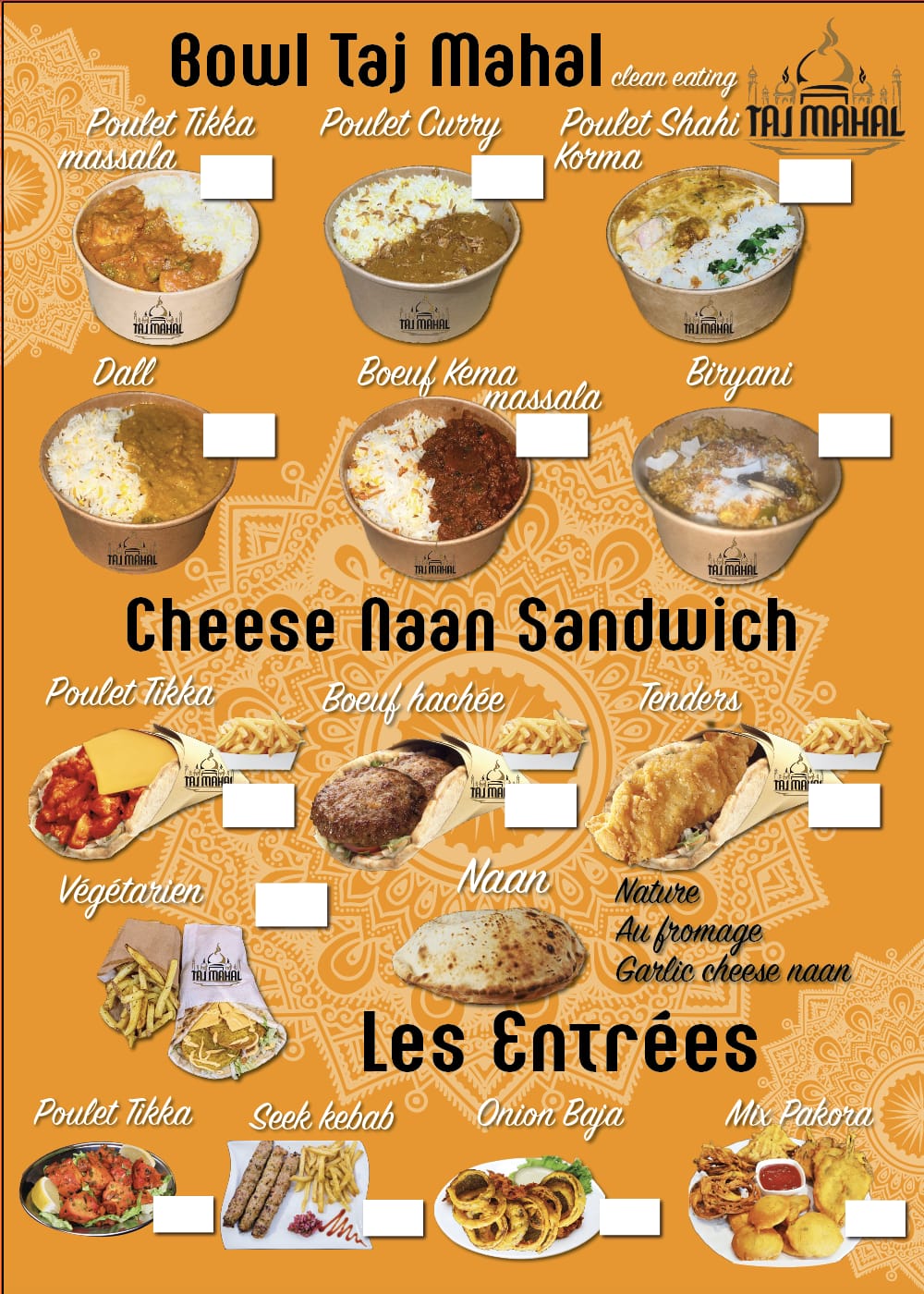 Cette petite pépite indienne a bien marqué notre première visite à Clermont , on voulait nous installer dans le resto indien qui est en face mais il yavais plus de place, finalement ct un mal pour un bien psk on s’est régalé au Taj Mahal . on retouve bien les saveurs indiennes, ct trop trop bon , les portions très généreuses, on a pris un curry et tikka massala avec des cheez nan ct magnifique, même ma copine a changé d’avis sur la cuisine indienne car avant elle n’aimait pas trop. En plus Le personnel est trop chaleureux et souriant, et l’endroit est très propre en plus du rapport qualité prix bravo je recommande vivement, je mange souvent indien dans des restaurants mais ce petit coin simple est désormais mon préféré … 😍