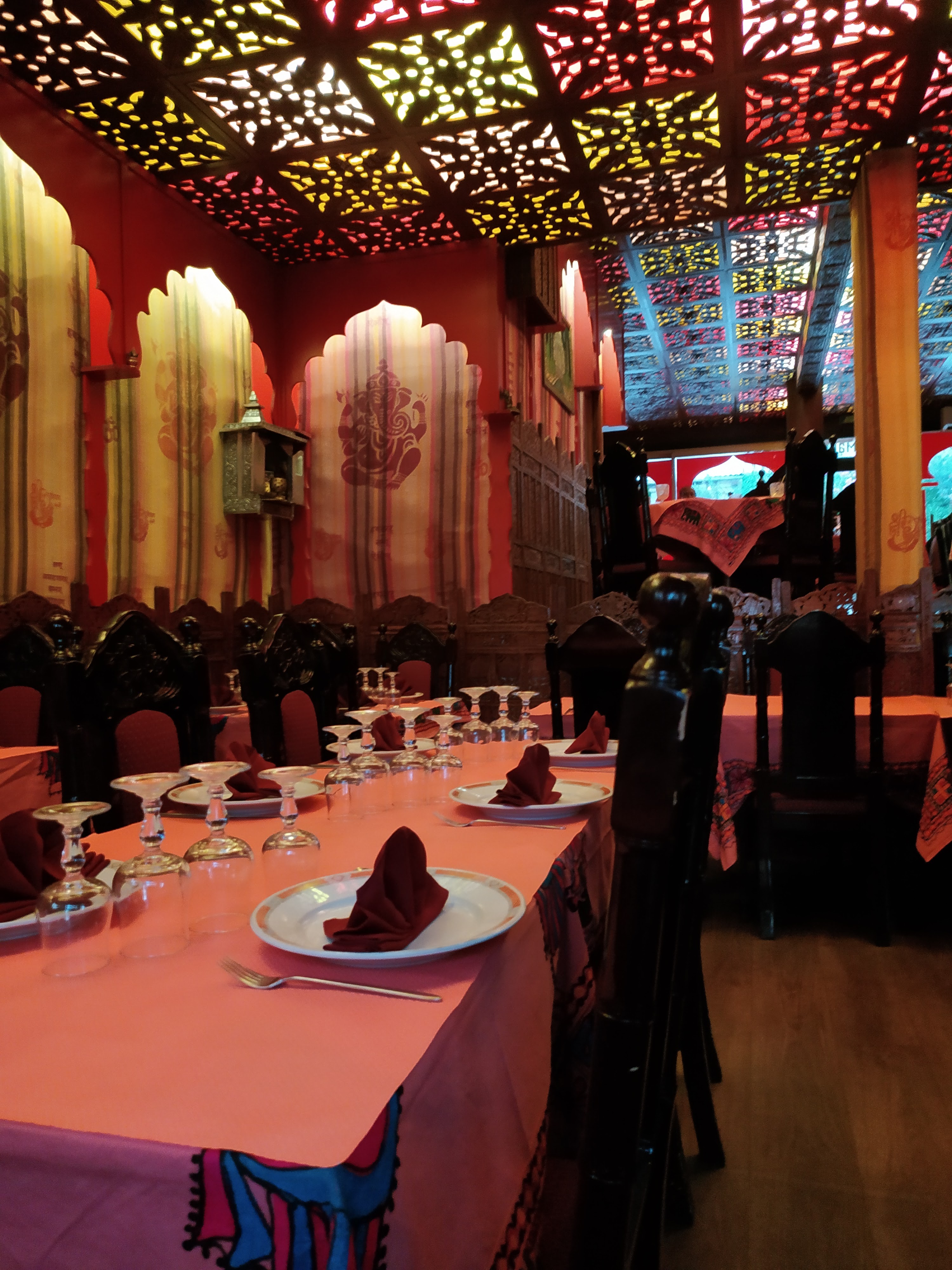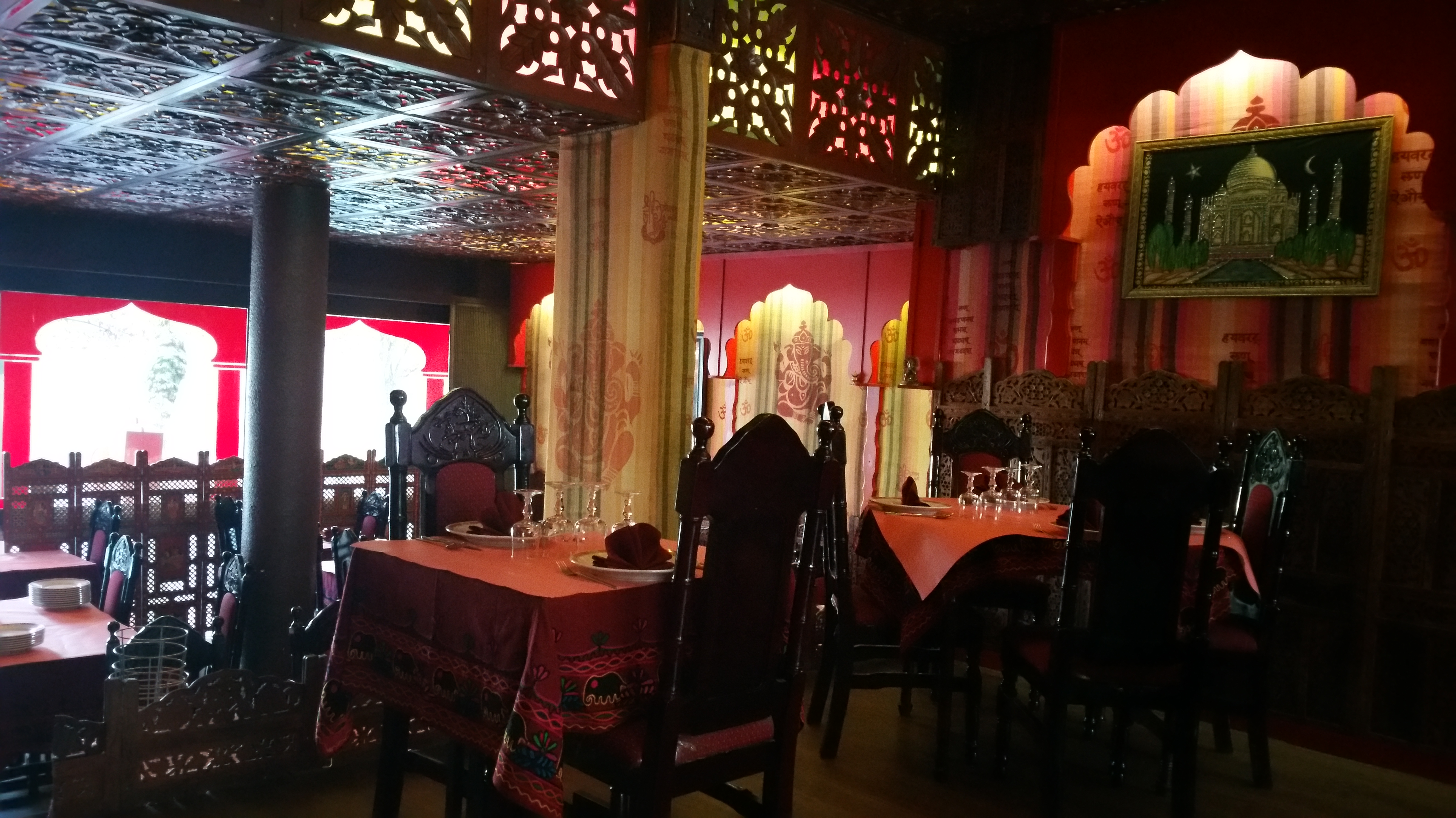 Endroit dépaysant, on est directement plongé dans une atmosphère indienne .... Couleurs, lumières, décor .... Et pour tout vous dire, on y mange aussi très bien !!