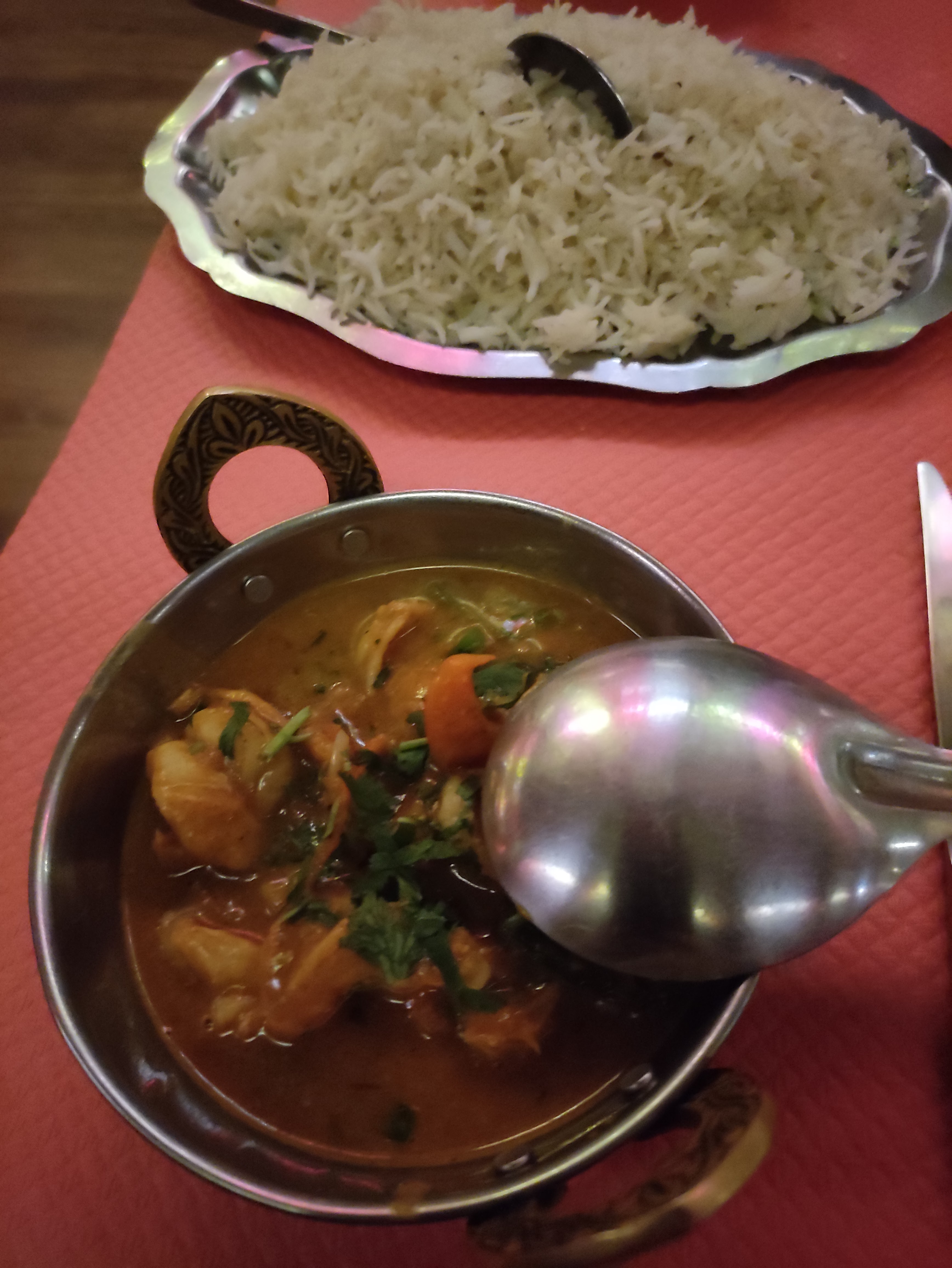 Quelle belle decouverte, la deco comme en inde et l'accueuil du patron est convivial, beaucoup d'humour, blagueur, on se sens bien. La cuisine indienne est épicée mais délicieuse, nous avons meme le droit a quelques info sur les symboles de l'inde.. echanges agréable. Merci beaucoup pour votre accueil !! Merci pour votre bonne humeur dont nous avons besoin en ce moment.