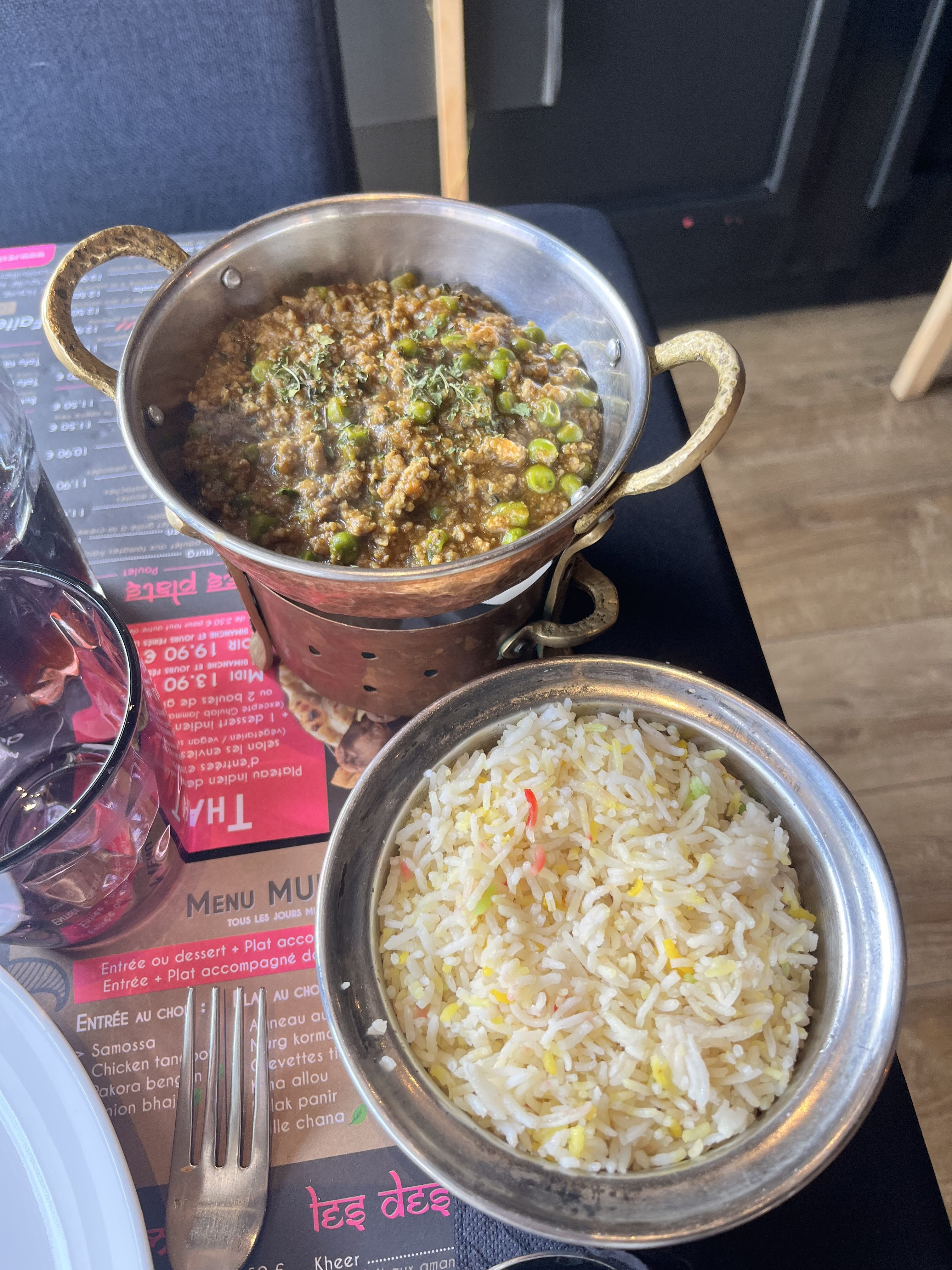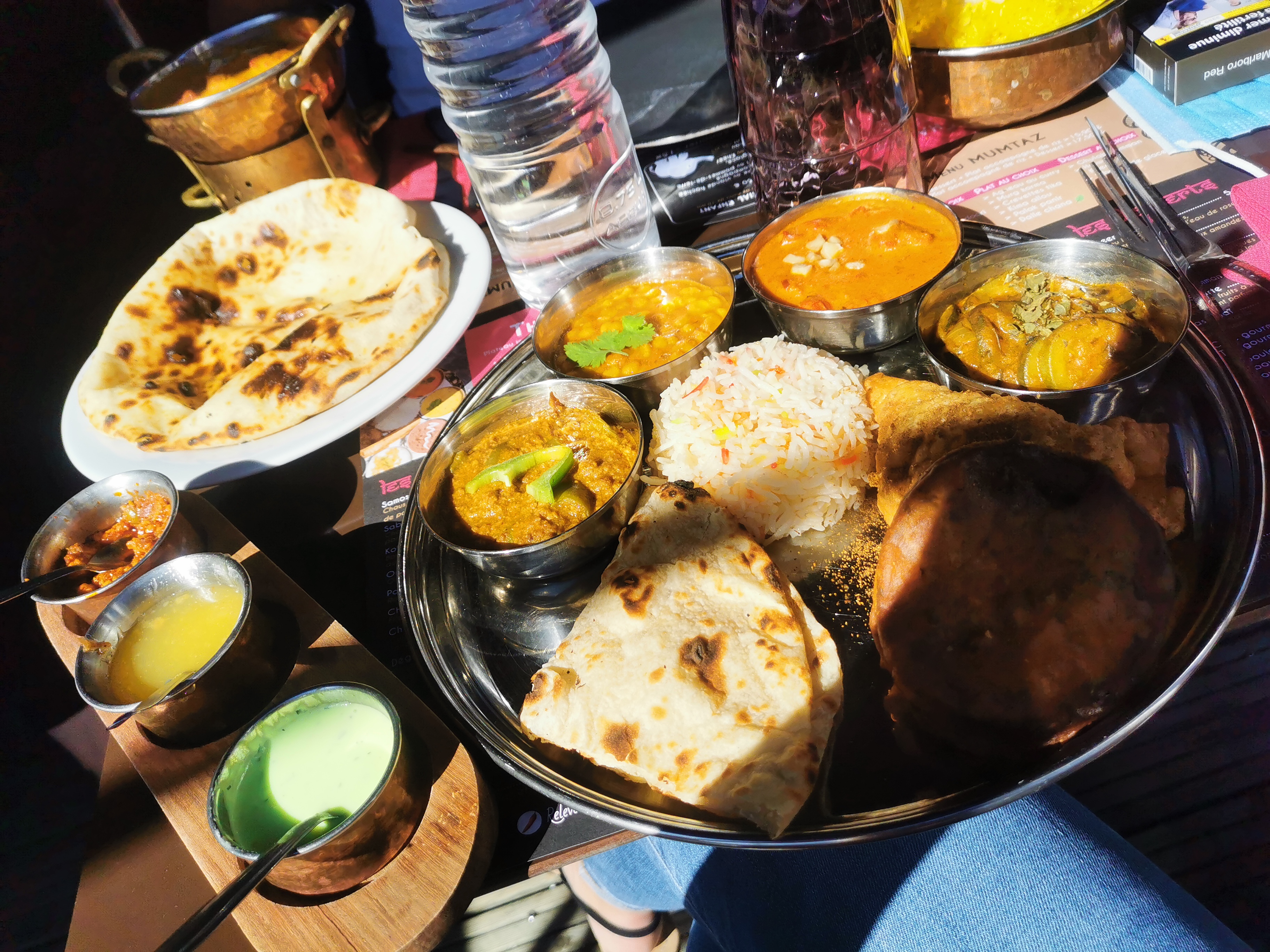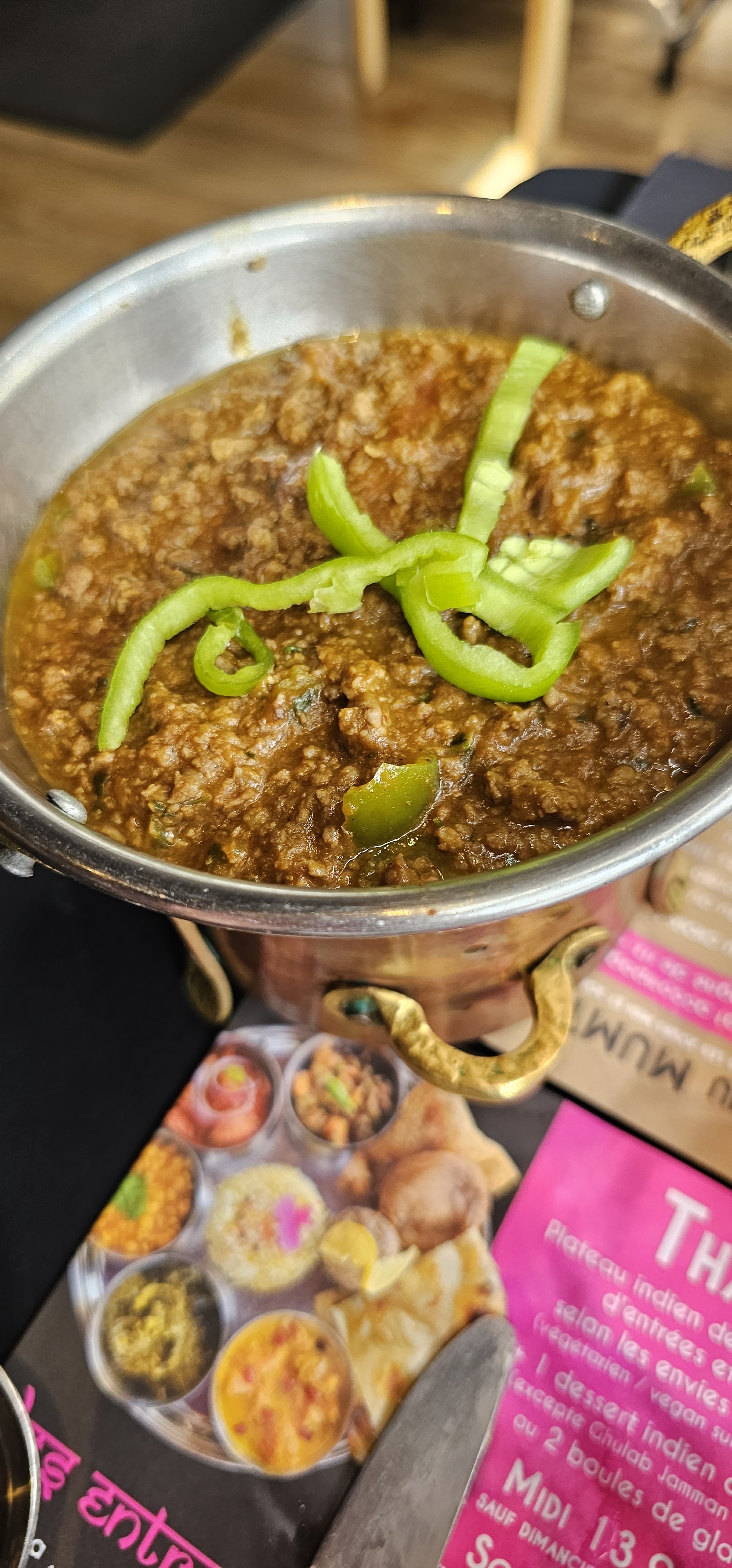 Ayant pris le plateau Thali, je recommande l'expérience mais certains détails sont dommage. D'abord, il y a une bonne quantité, on ne peut pas le nier. Cependant, ils refroidissent plutôt rapidement au vu des petites portions de chaque plats, donc peut être demandé si il est possible de réchauffé les plats. Dans mon plateau Thali, j'ai pu y retrouvé en entrée un samossa au légumes, plutôt ok avec de la sauce, et deux pakora bengen, que j'ai trouvé excellent ! En plat, il y avait du murg tika massala, du kima matar, une dalle chana et du palak panir. Dans l'ensemble, c'etait plutôt bon, pas incroyable non plus, et ma plus grande déception à été le cheese naan, à peine la moitié était rempli d'une fine couche de fromage, et ultra gras. Dans l'ensemble, je recommande histoire d'essayé, mais peut être plutôt ce dirigé vers un plat traditionnel qui aura un réchaud pour le gardé à bonne température !