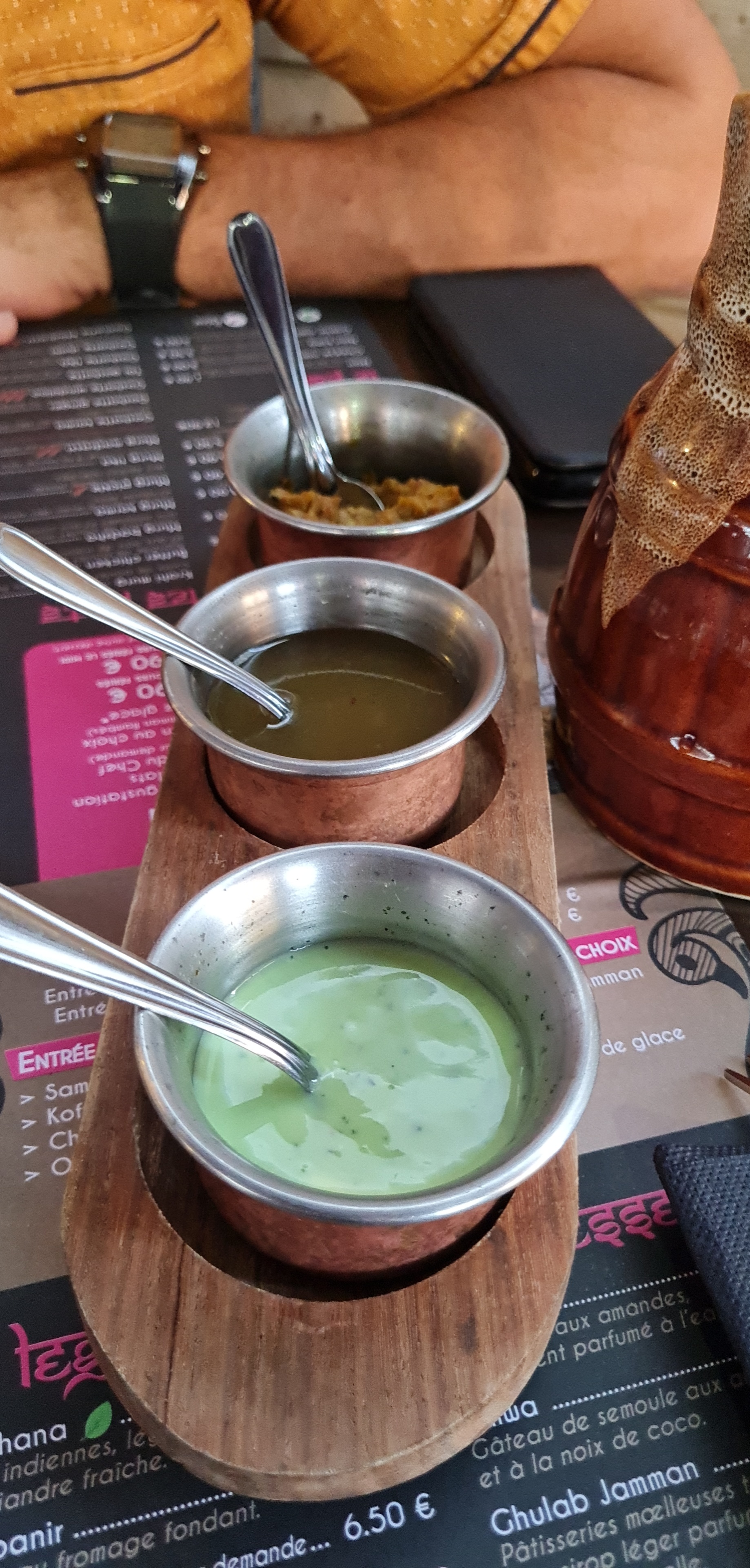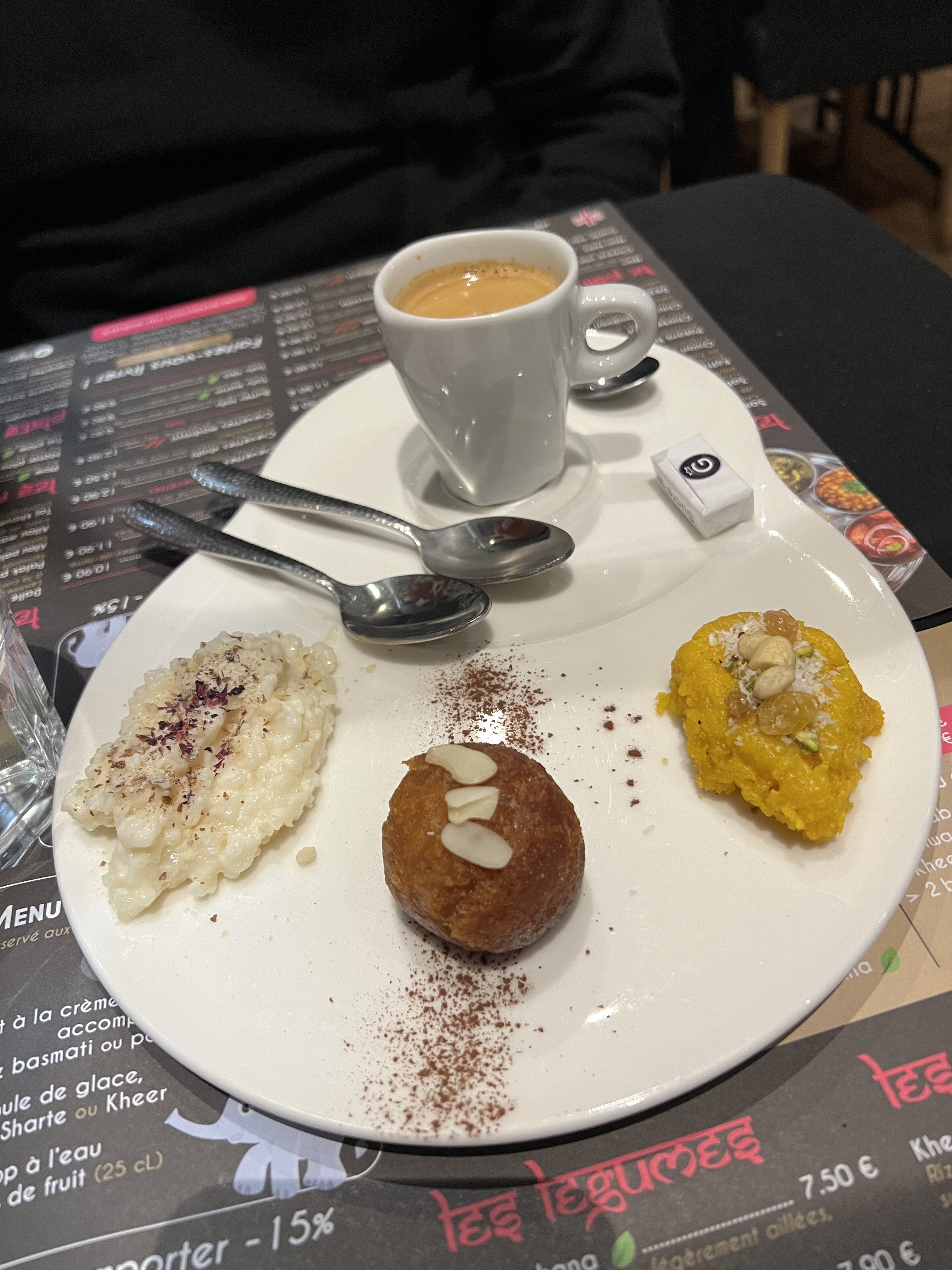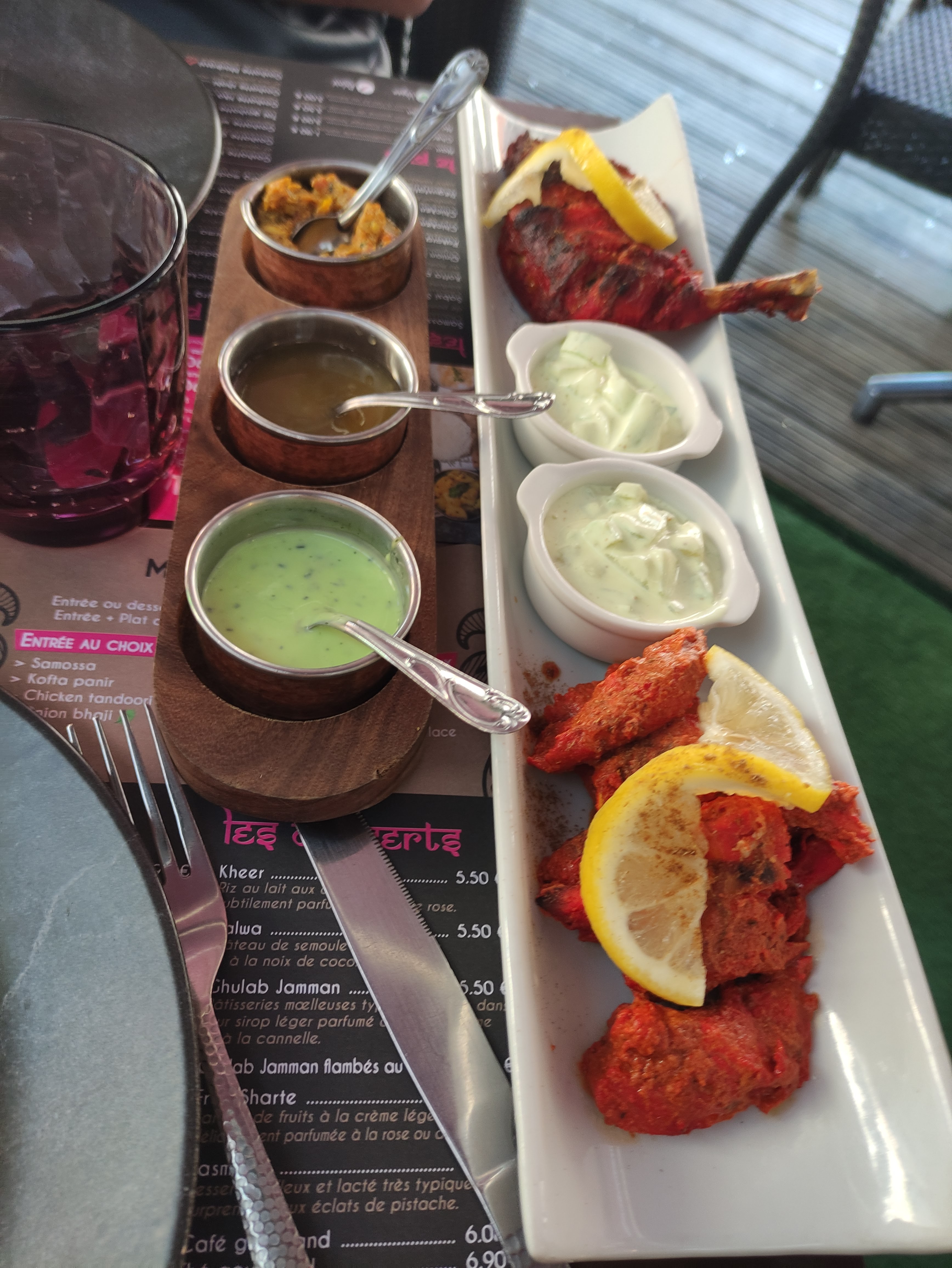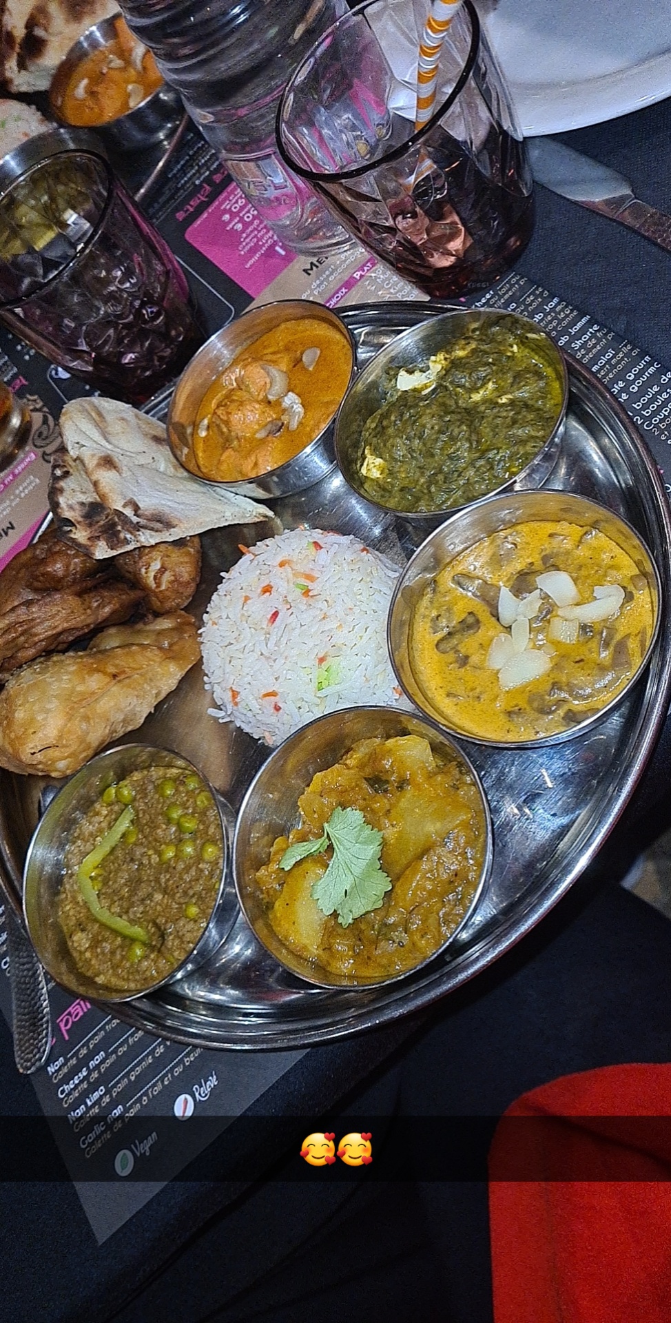 Premier restau indien pour moi, je voulais découvrir et j'ai bien été servi avec la formule Thali (si je me souviens bien) un plateau avec 3 entrées, 5 plats, et un dessert... de quoi nous ravir ! Personnel très accueillant ! JE RECOMMANDE 🤤